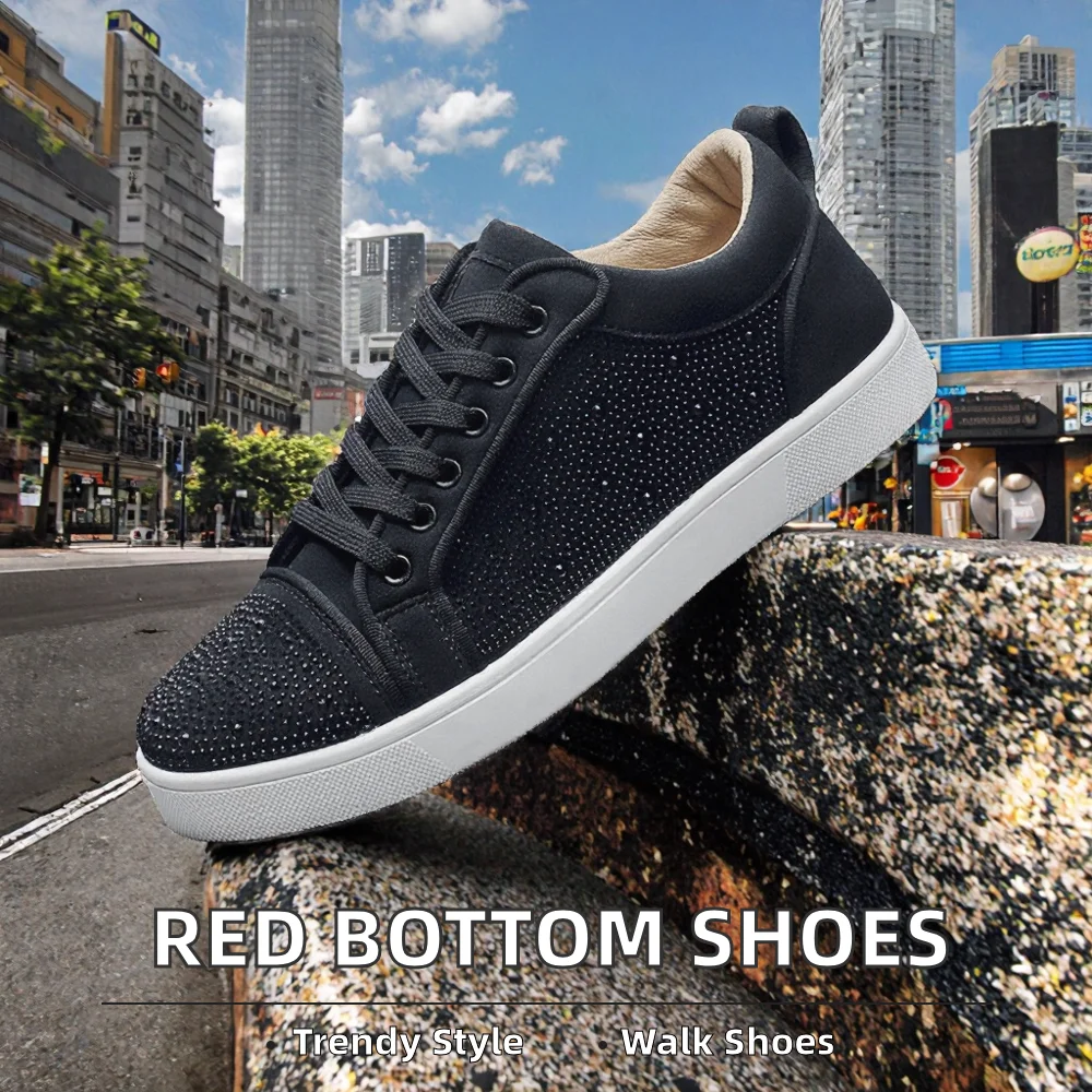 Wholesale Custom Genuine Leather Red Bottom Designer Shoes Luxury Flat Casual Shoes Lace-Up Closure PVC Closed for Autumn Winter