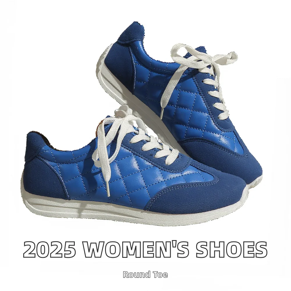 Women's Autumn Casual Sports Sneakers Head Lace-Up Walking Shoes 2026 New Style Small Fragrance Checkered Pattern Color-Block
