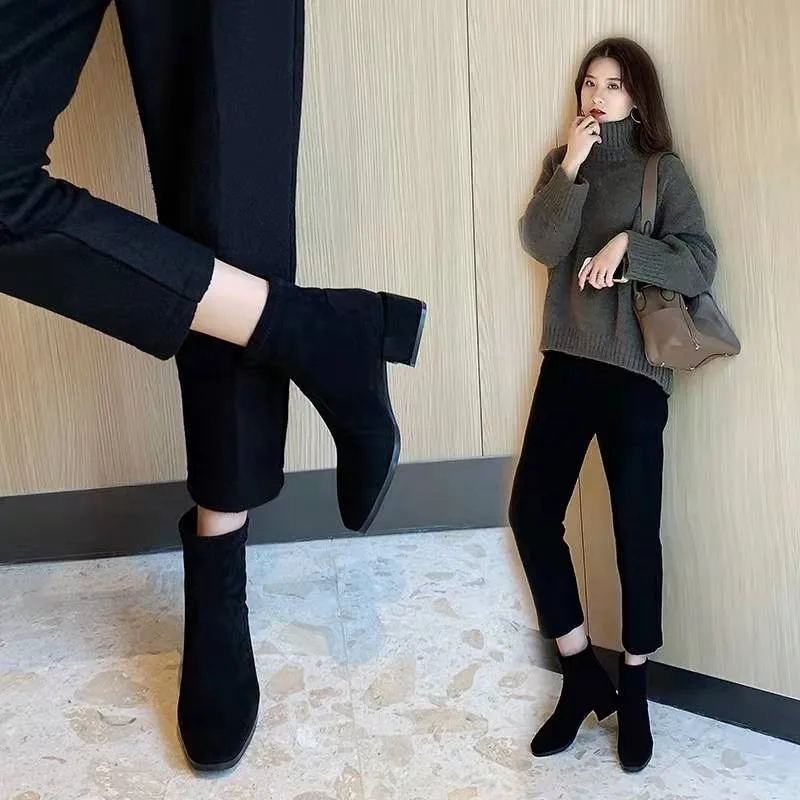 Fashion Trend High Heel Winter Boots (6-8cm) with Back Zipper Round Toe & Warm Design