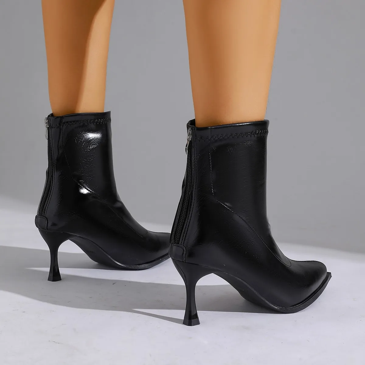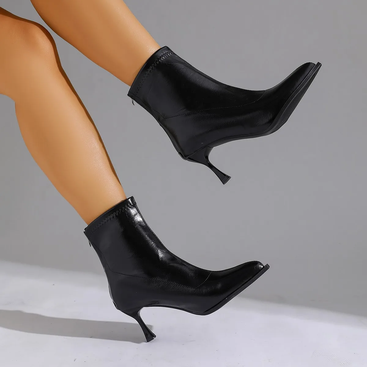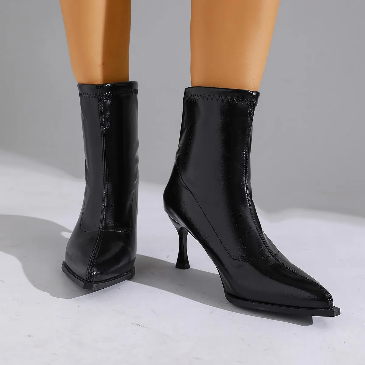 Short-tubed thin-heeled fashion boots with a pointed toe and a medium heel (3-5cm) for women, warm and stylish for.