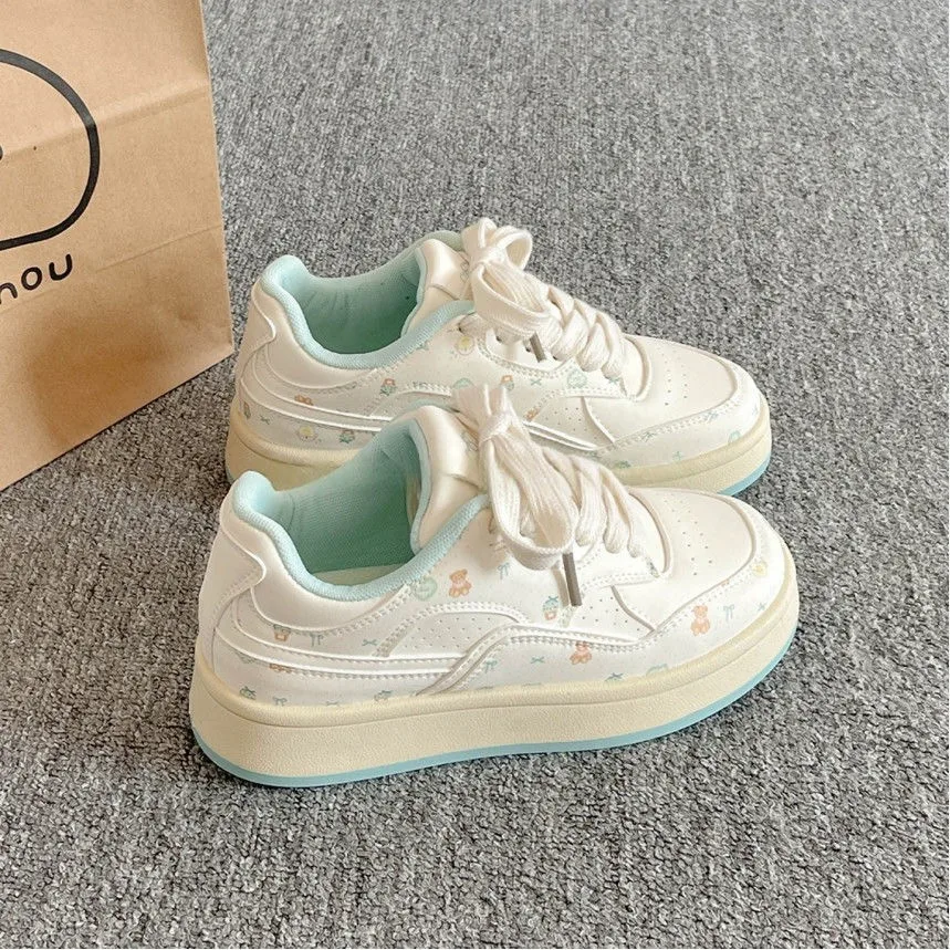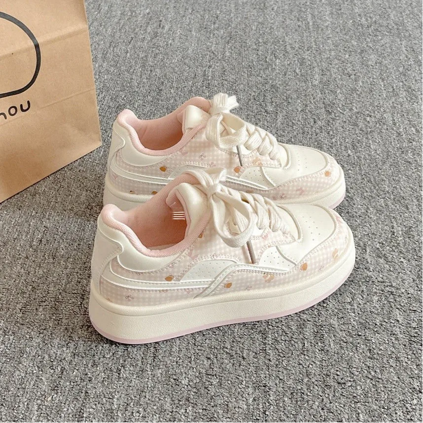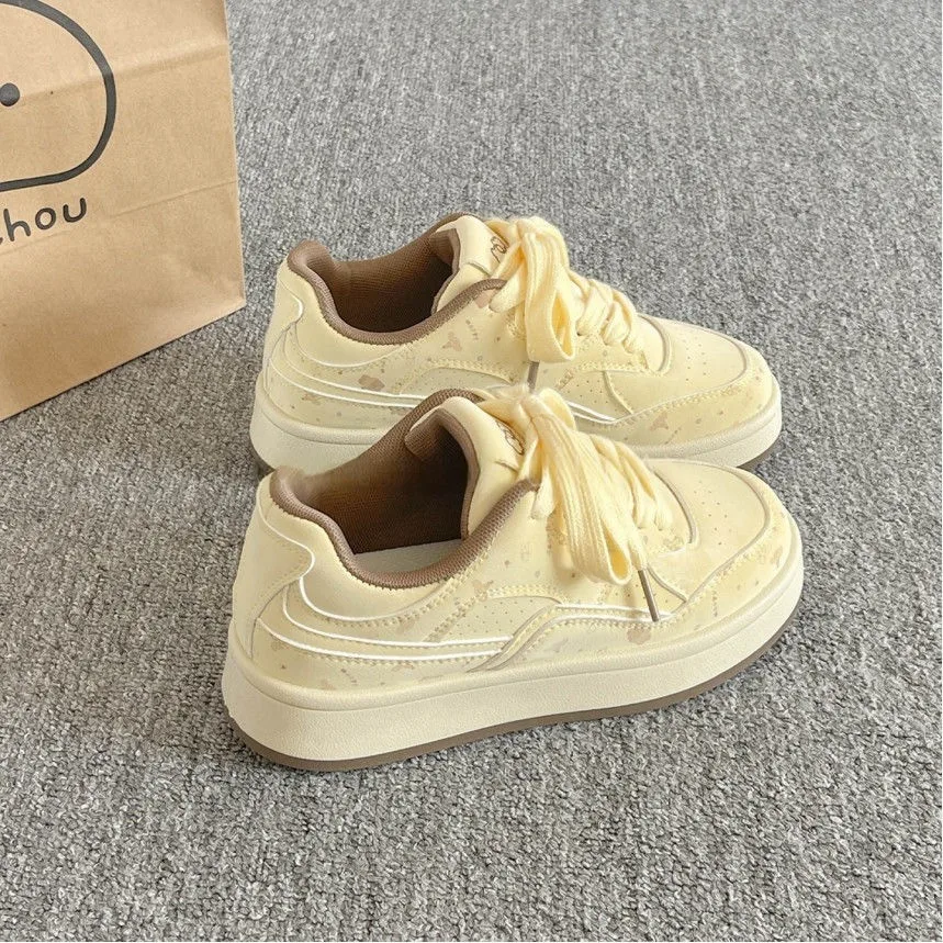 Cranberry Casual Skateboarding Shoes Bread Design Thick Bottom Platform Slip-Resistant Lace-Up Closure Comfort Anti-Odor