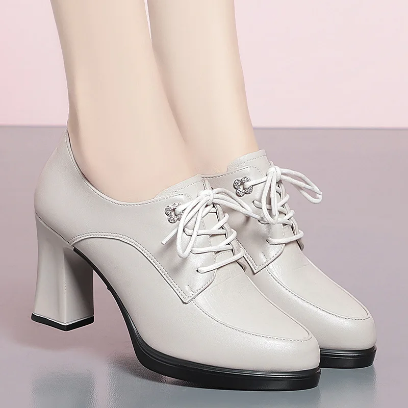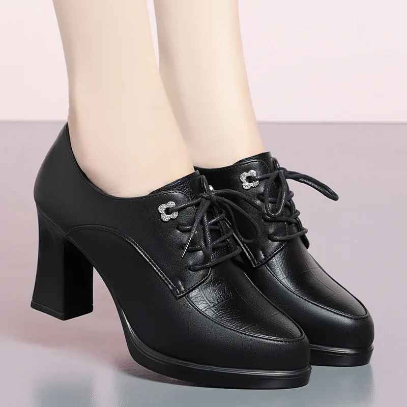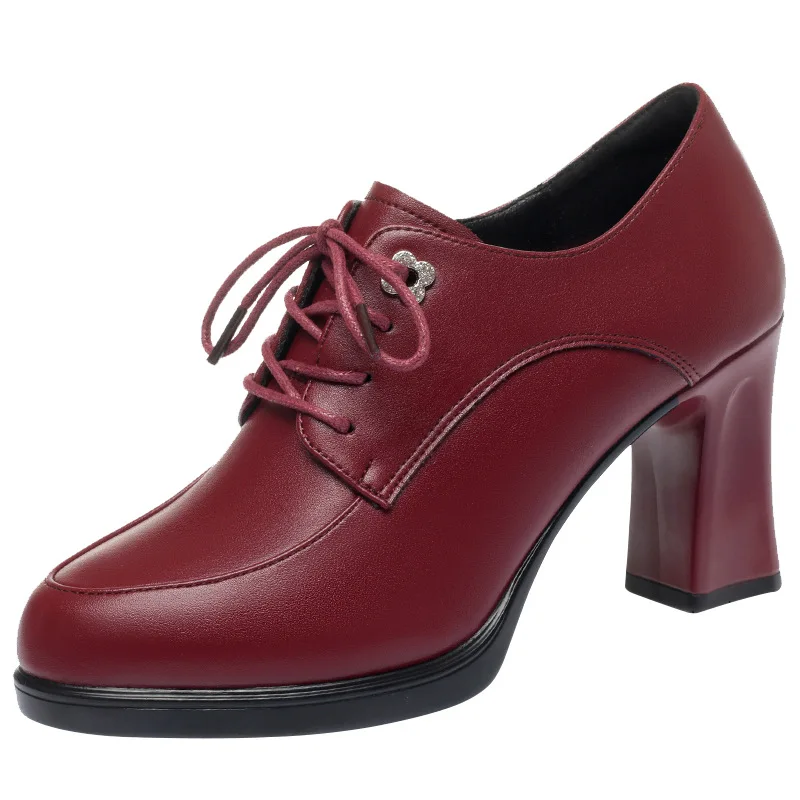 2026 New Women's Spring Autumn Lace-Up High-Heeled Shoes Middle-Aged PU Upper Mixed Colors Thick Super High Height Increasing