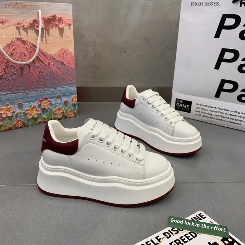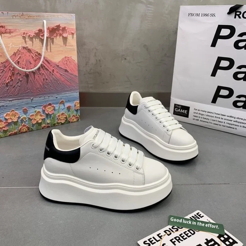 Women's Fashionable Sporty White Slip-On Shoes Durable Lightweight Height Increasing for All Four Seasons TikTok Explosive PVC
