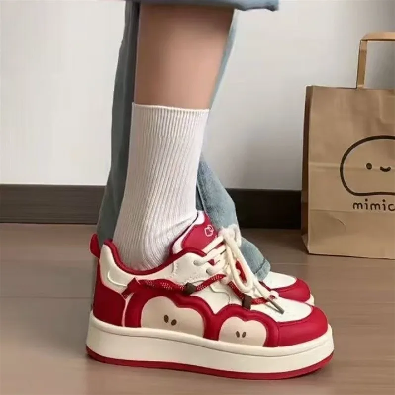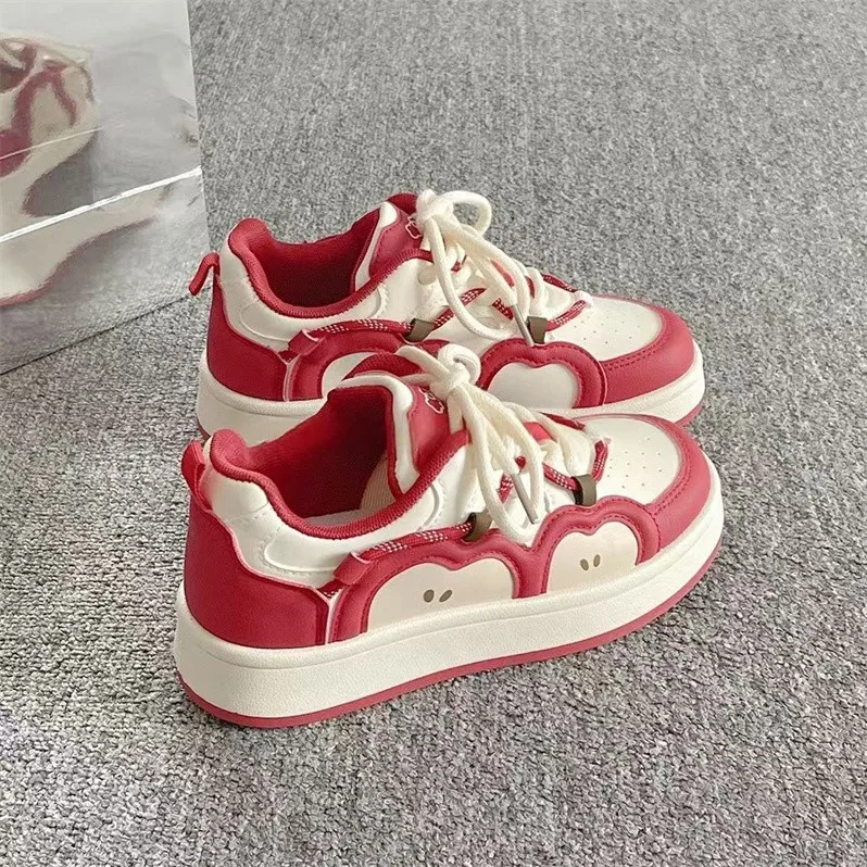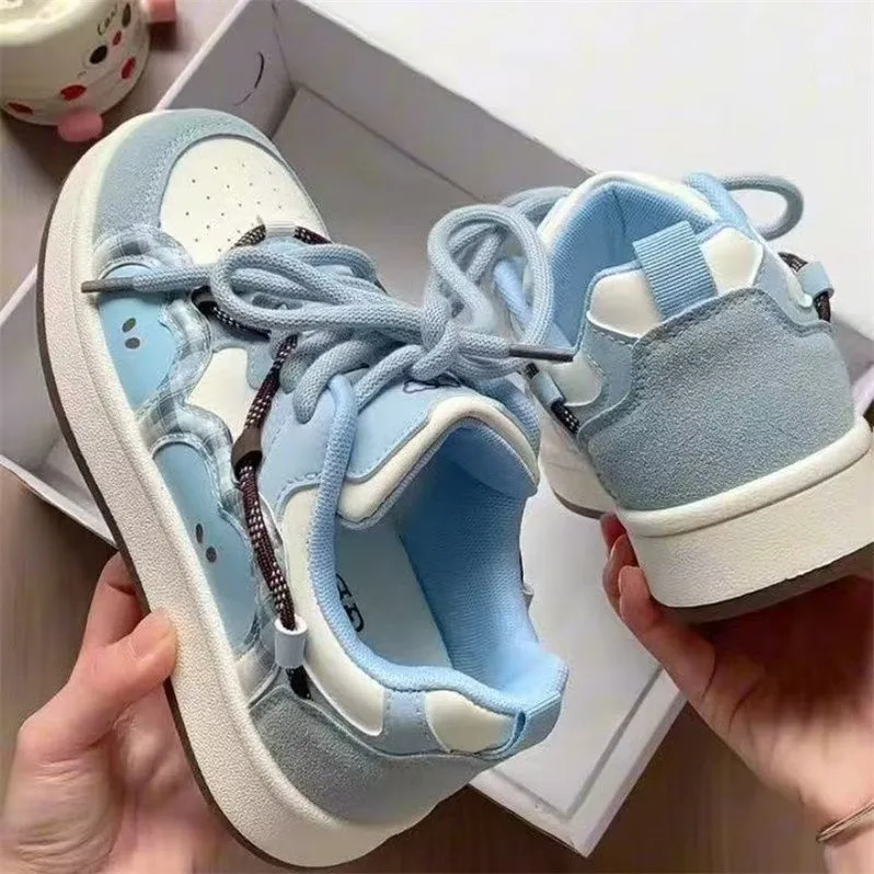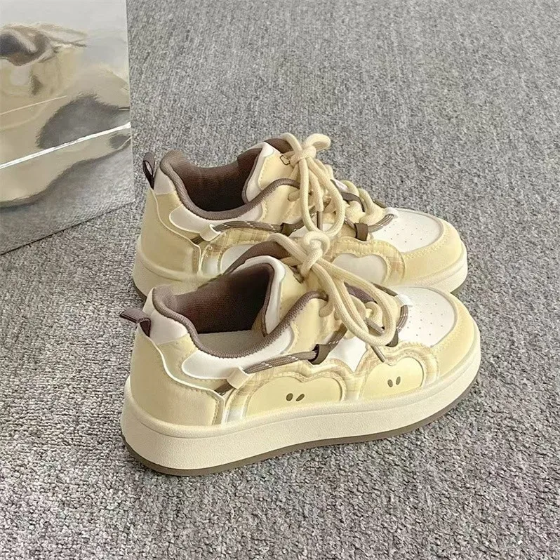 Women's Comfortable Chunky Low Cut Shoes with Lace-Up Platform and Thick Soled Board Hard-Wearing Design