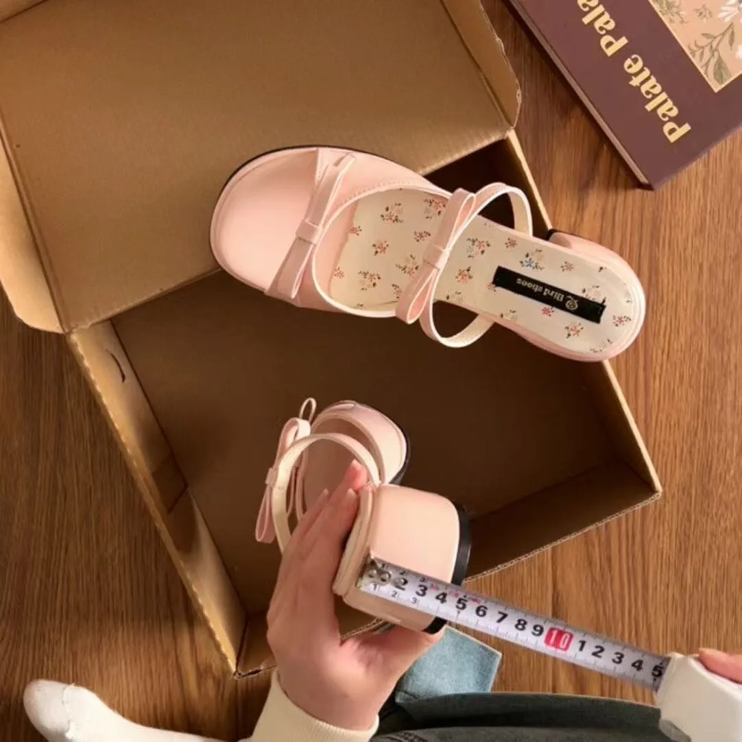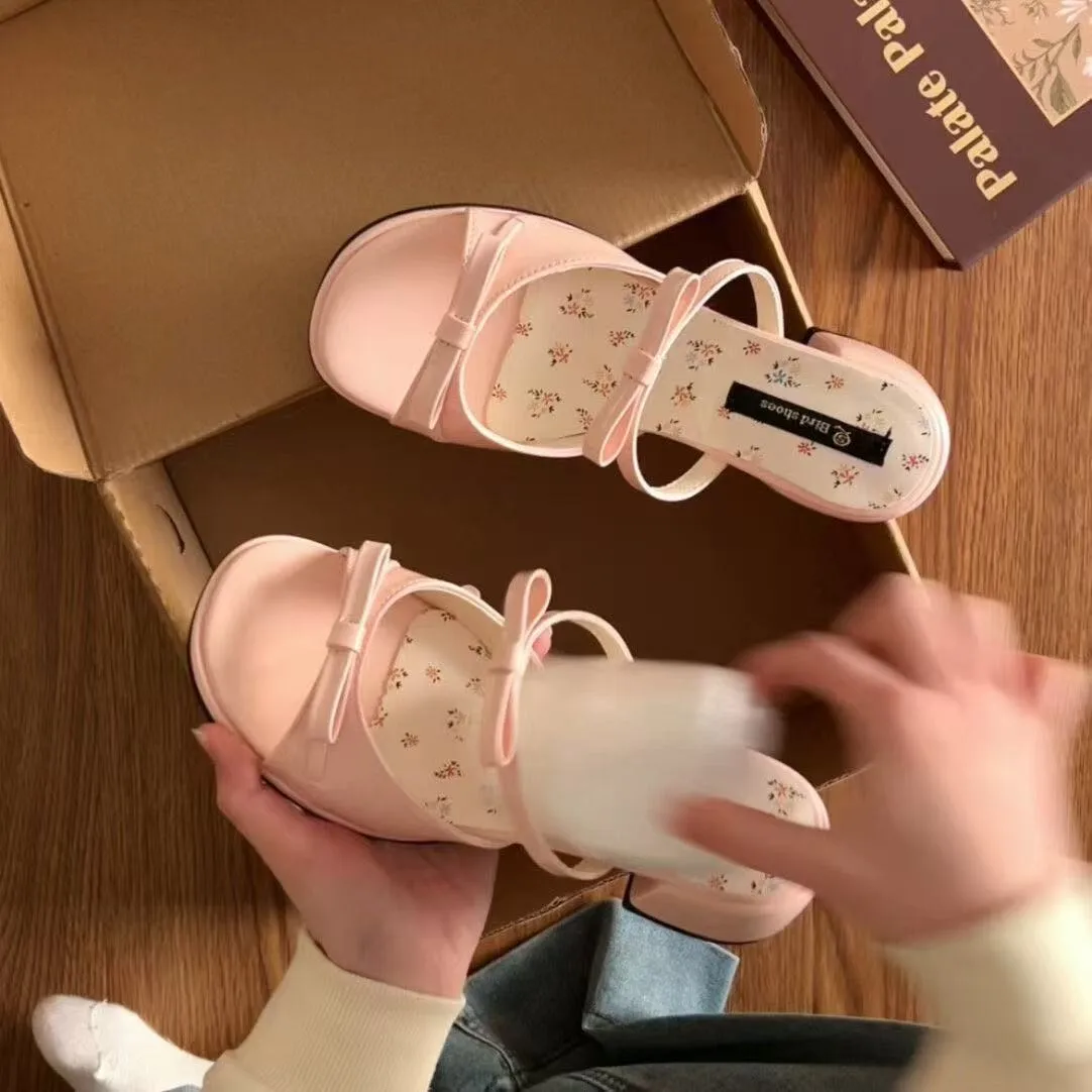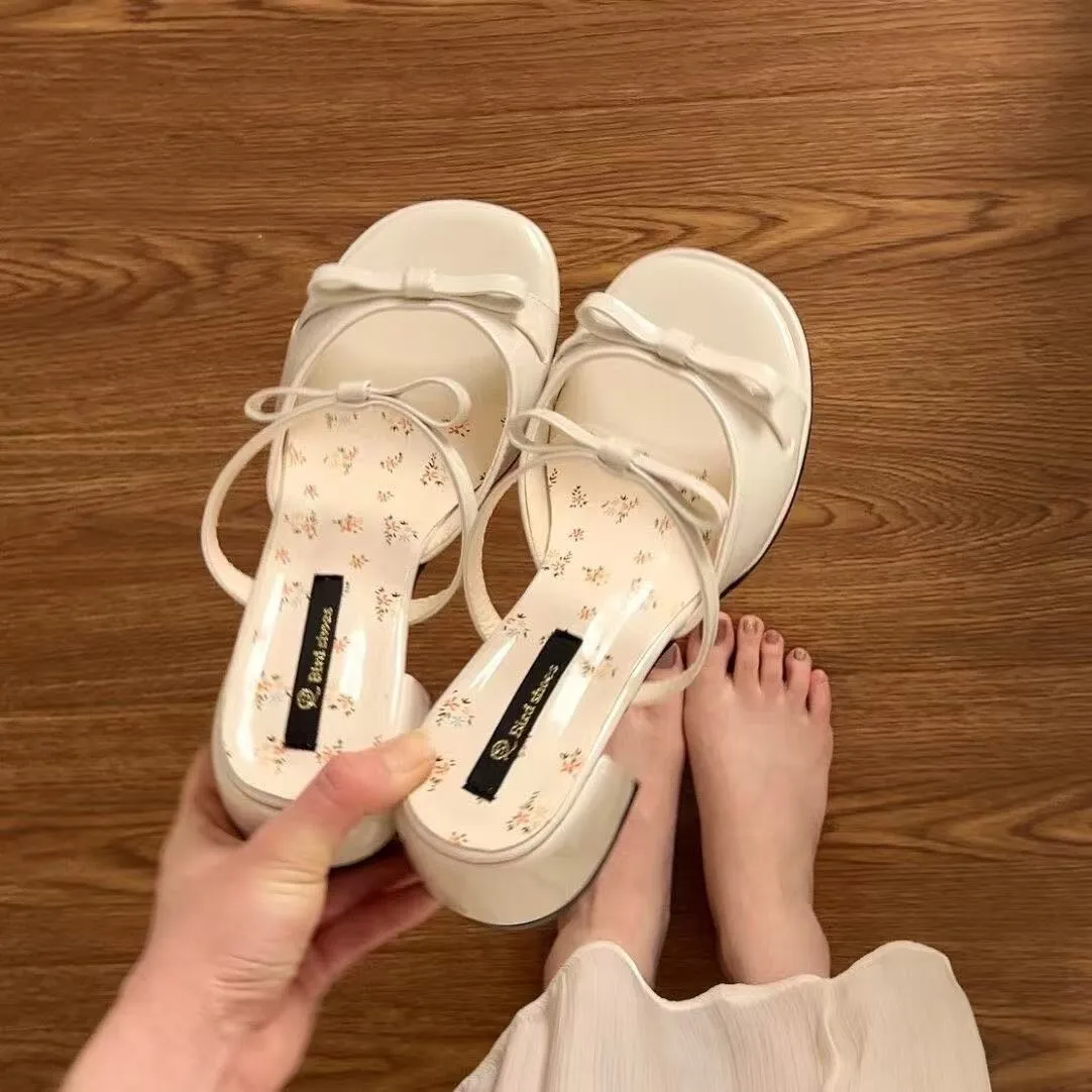 2026 New Summer Bowknot High Heel Sandals for Women Fashion Open Toe Beach Slippers Slip-On High Top Closure Outdoor Usage