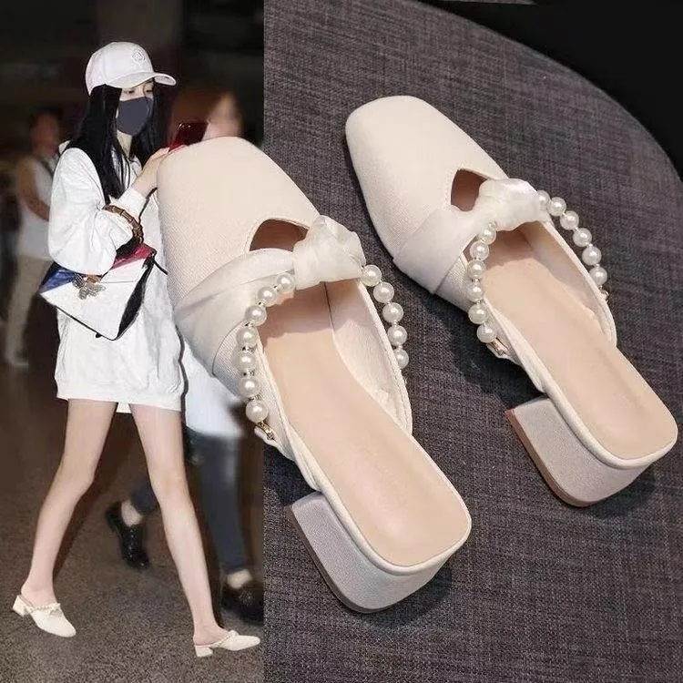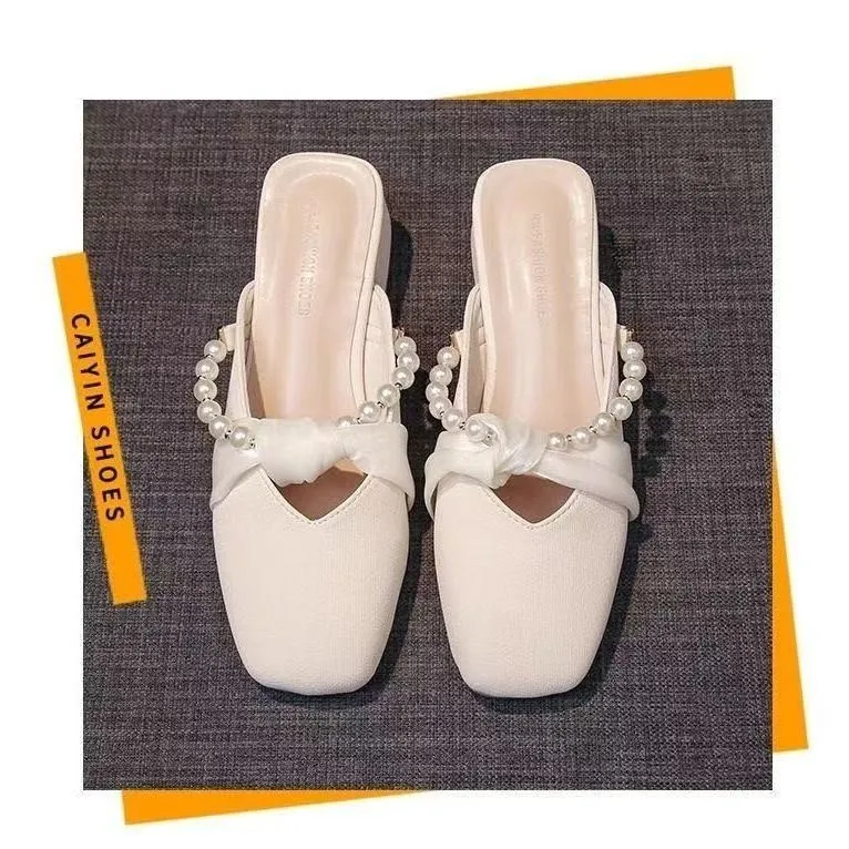 Women's Trendy Half-Heel Flip-Flops Round-Toe Thick-Soled Slip-On Closure Light Weight Outerwear for Spring Autumn Seasons
