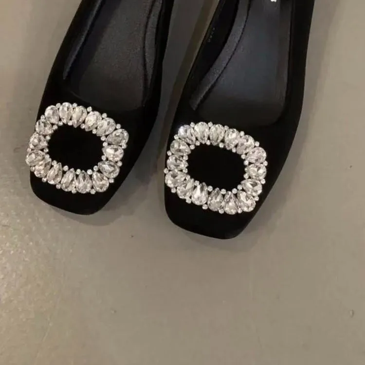Elegant Women's Party Banquet Shoes Clips with Rhinestone Buckle Made of Durable Rubber