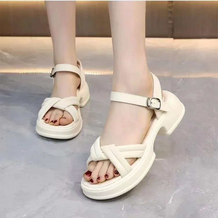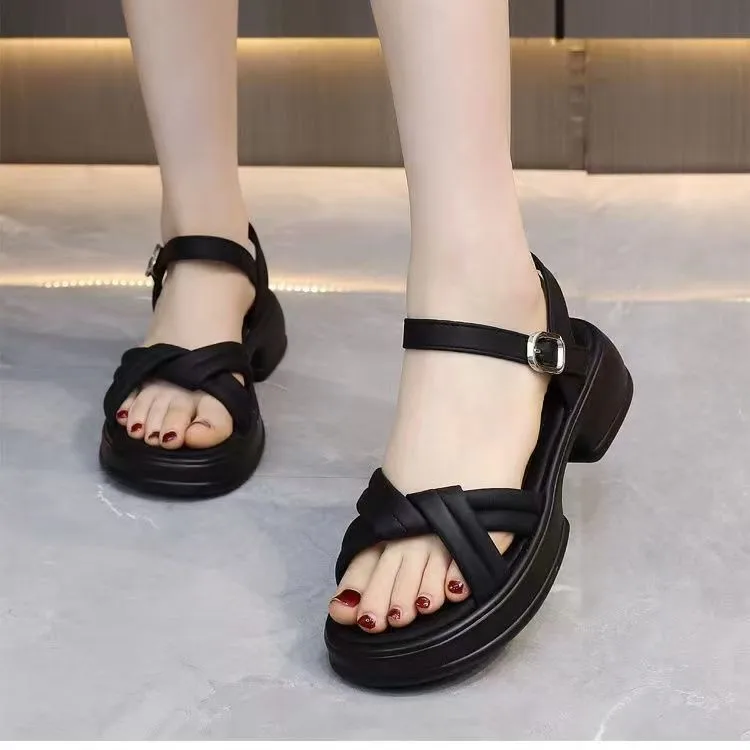 QLFashion-Word 2026 Summer New Platform Roman Monk Strap Sandals for Women Cushioned Lace-Up Closure Korean Toe Casual Sports