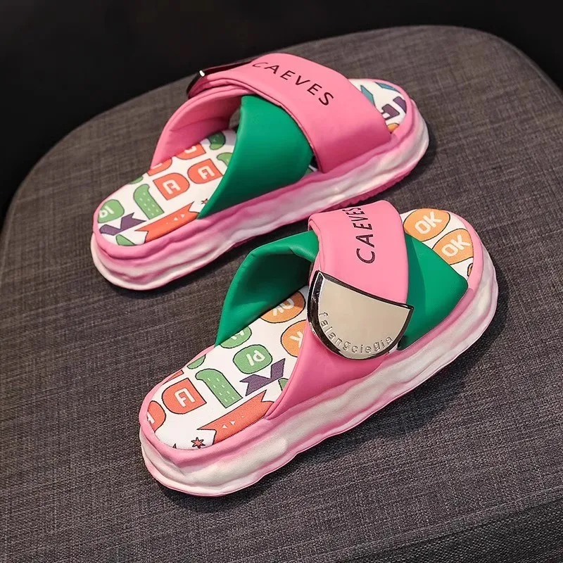 Women's High-End Winter Summer Outdoor Cross-Style New Sandals Color-Blocked High for Anti-Slippery Rubber PU Insole Light