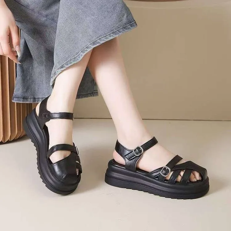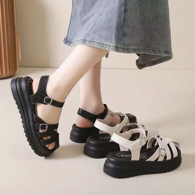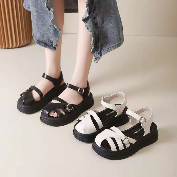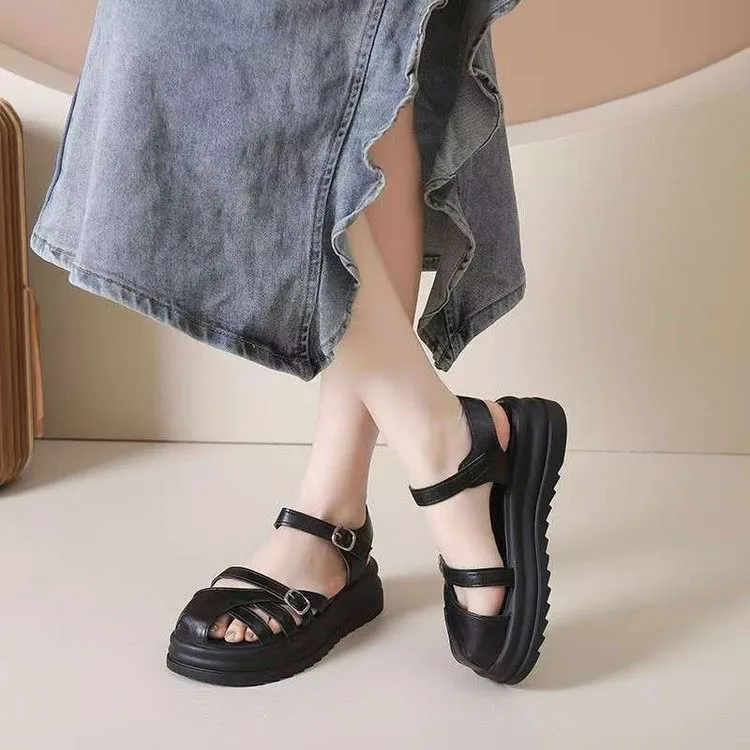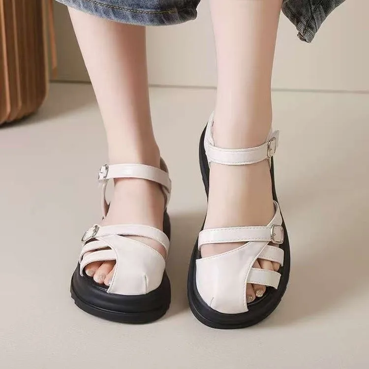New Arrival Summer Open Toe Ankle Strap Flat Sandal Soft Sole Beach Diamond Design Fashionable Trendy Platform Outdoor Use