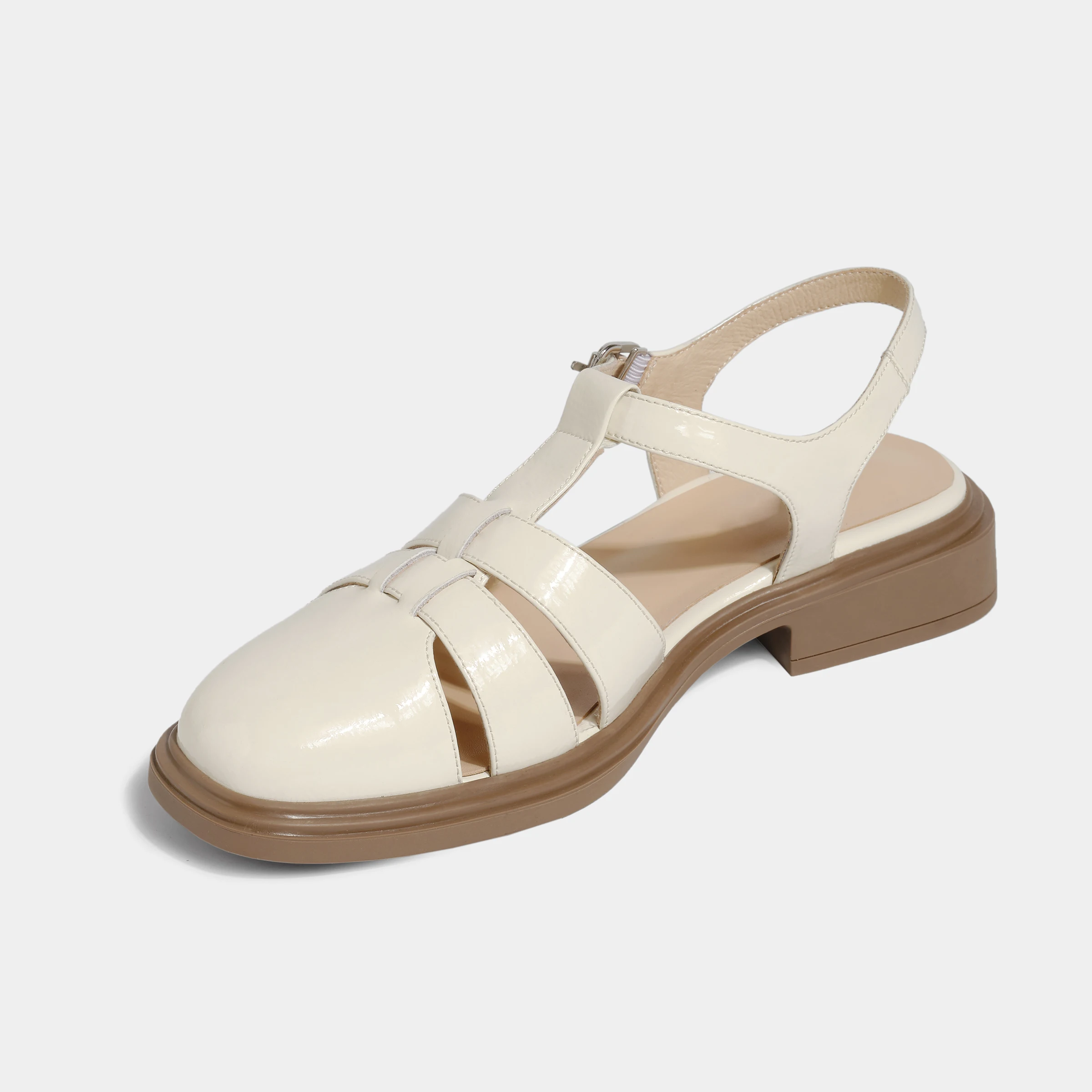 Women's Minimalist Flat Sandals with Covered Toe & Cut-Out Design Adjustable Strap for Comfortable Summer Footwear