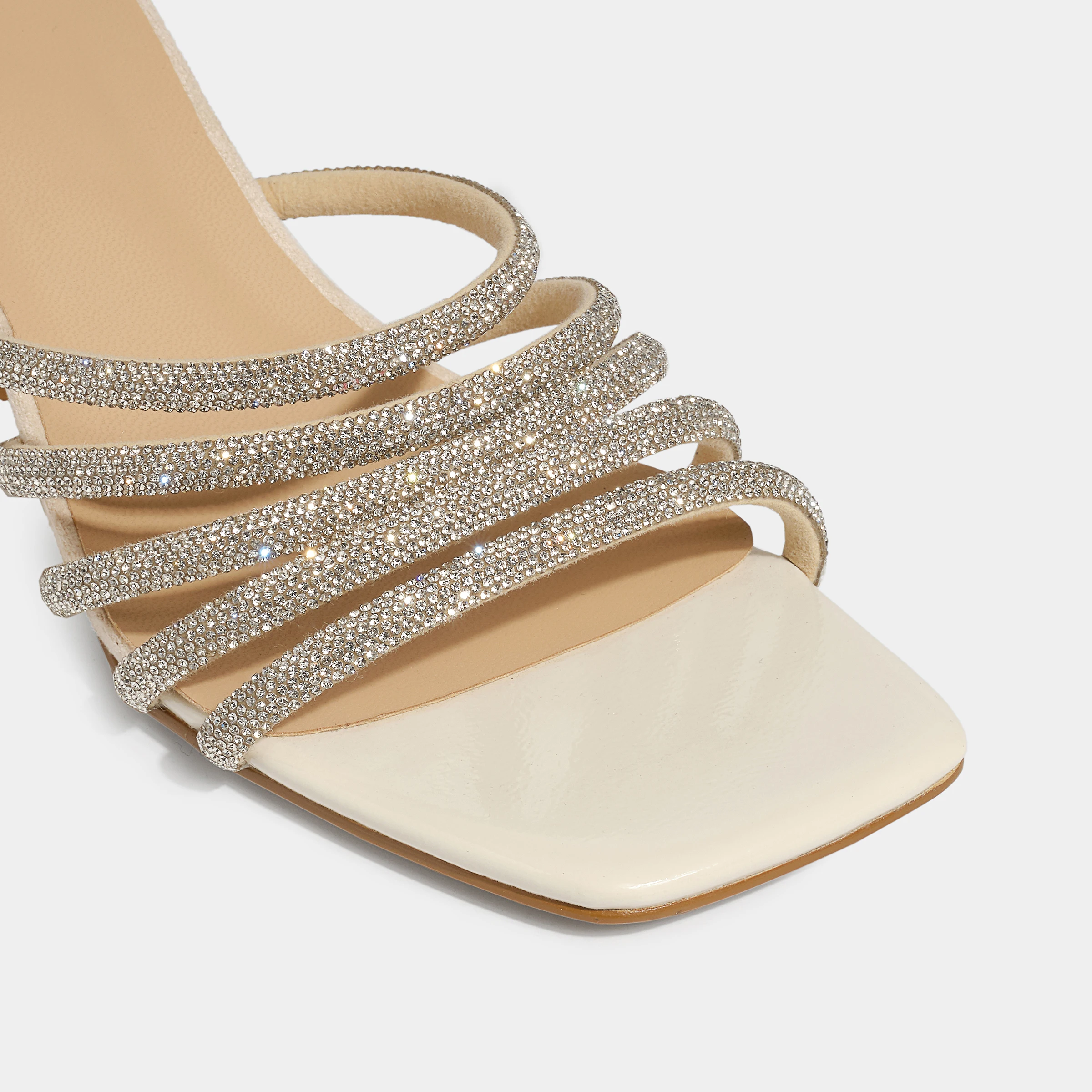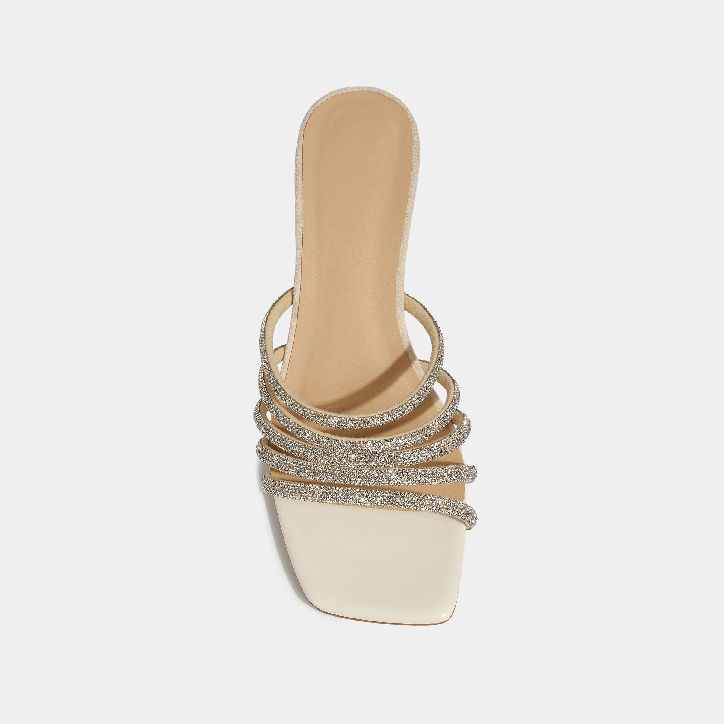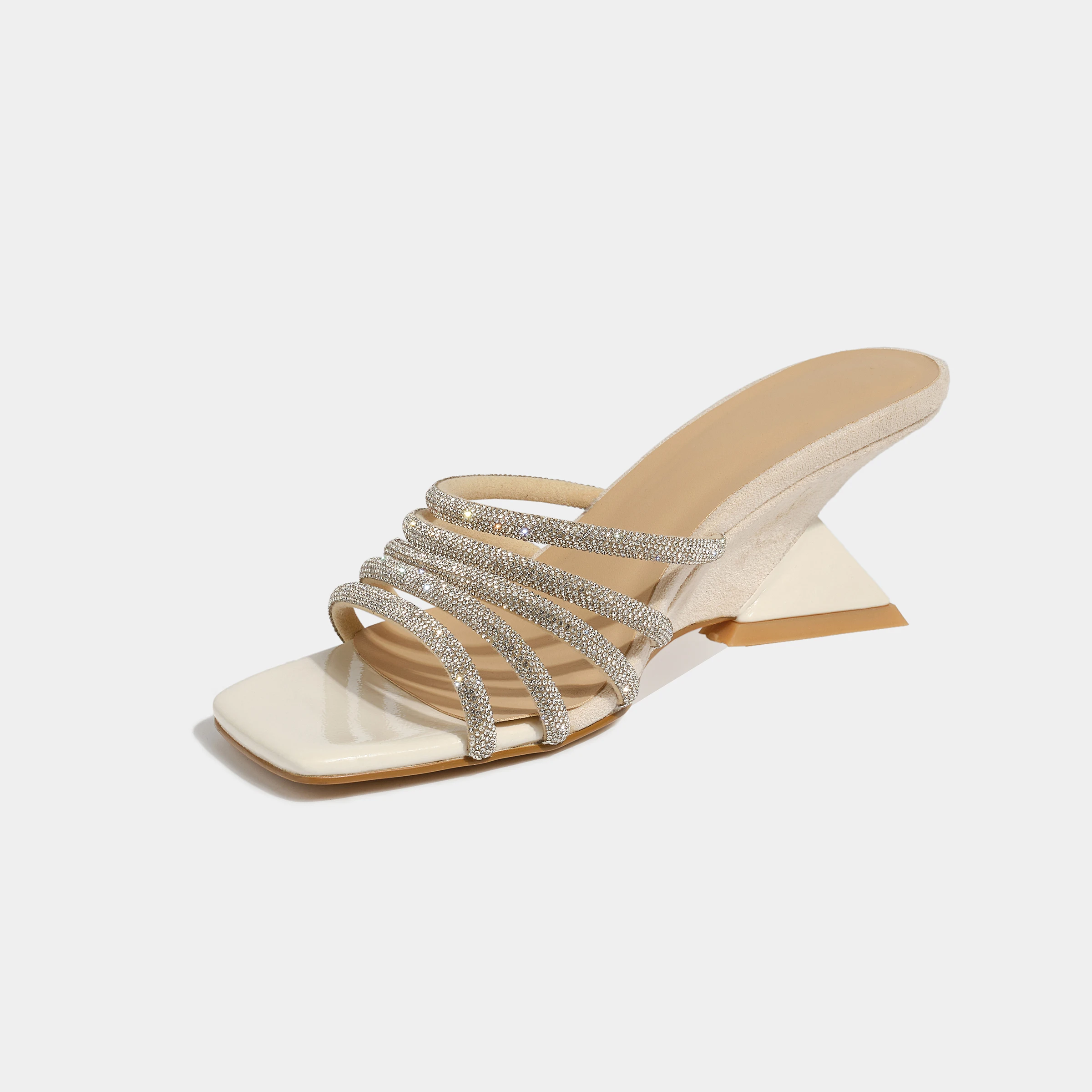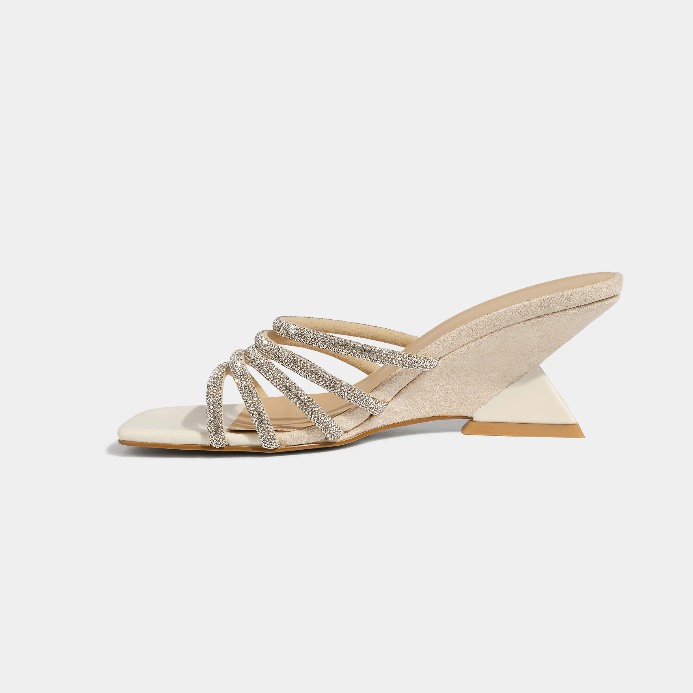 Stylish Strappy Mule Heels Rhinestone Adorned Square Toe Height Increasing Wedge Heeled Sandals for Sexy Summer Evening Look