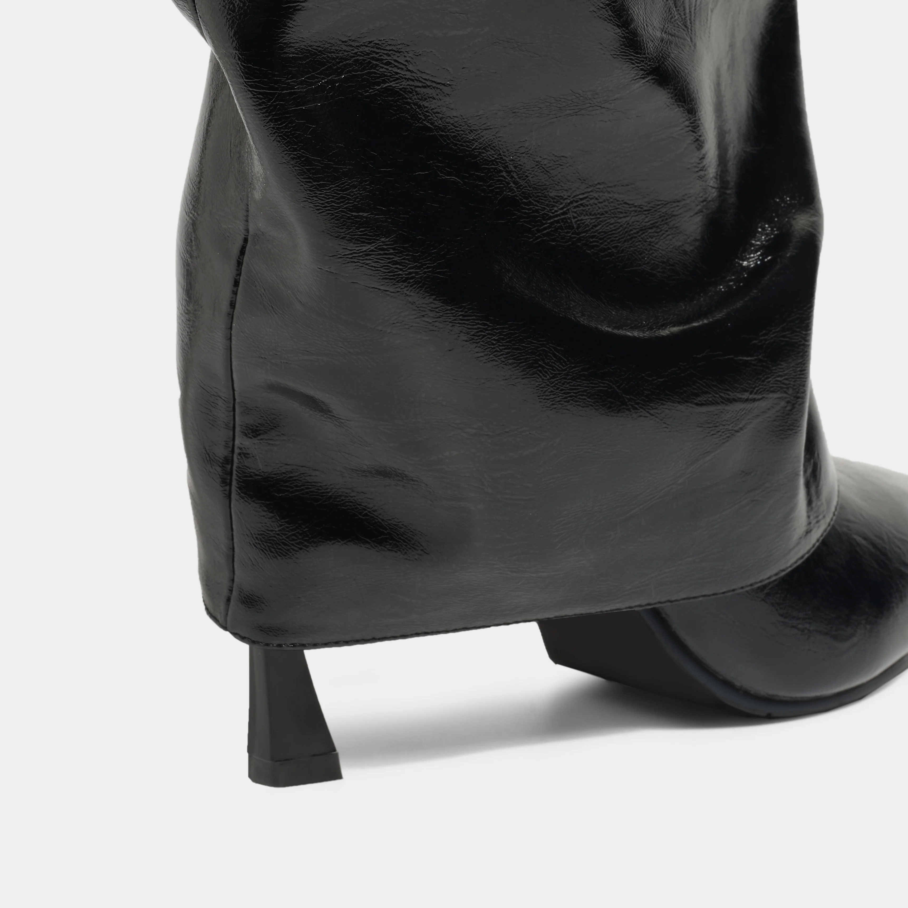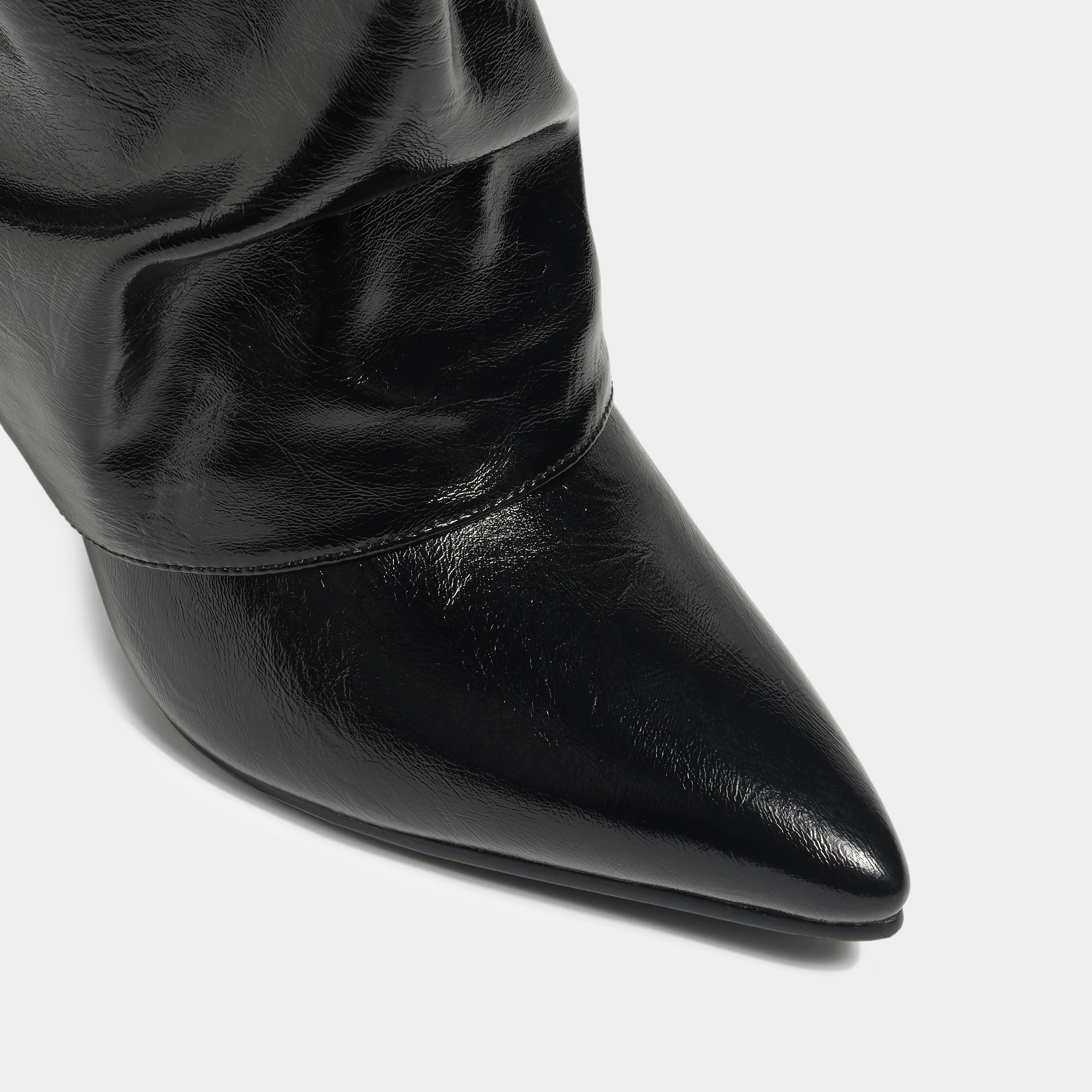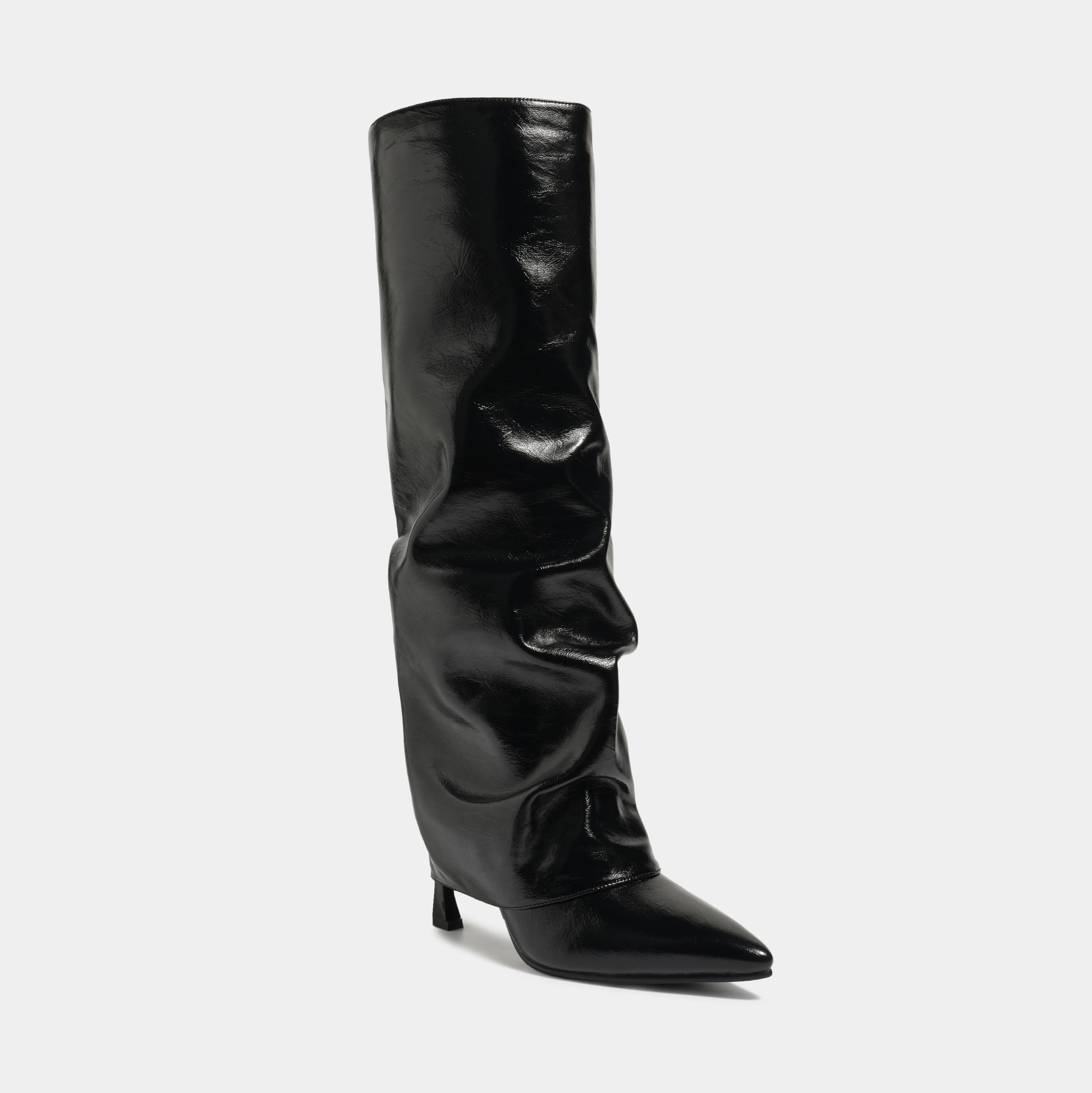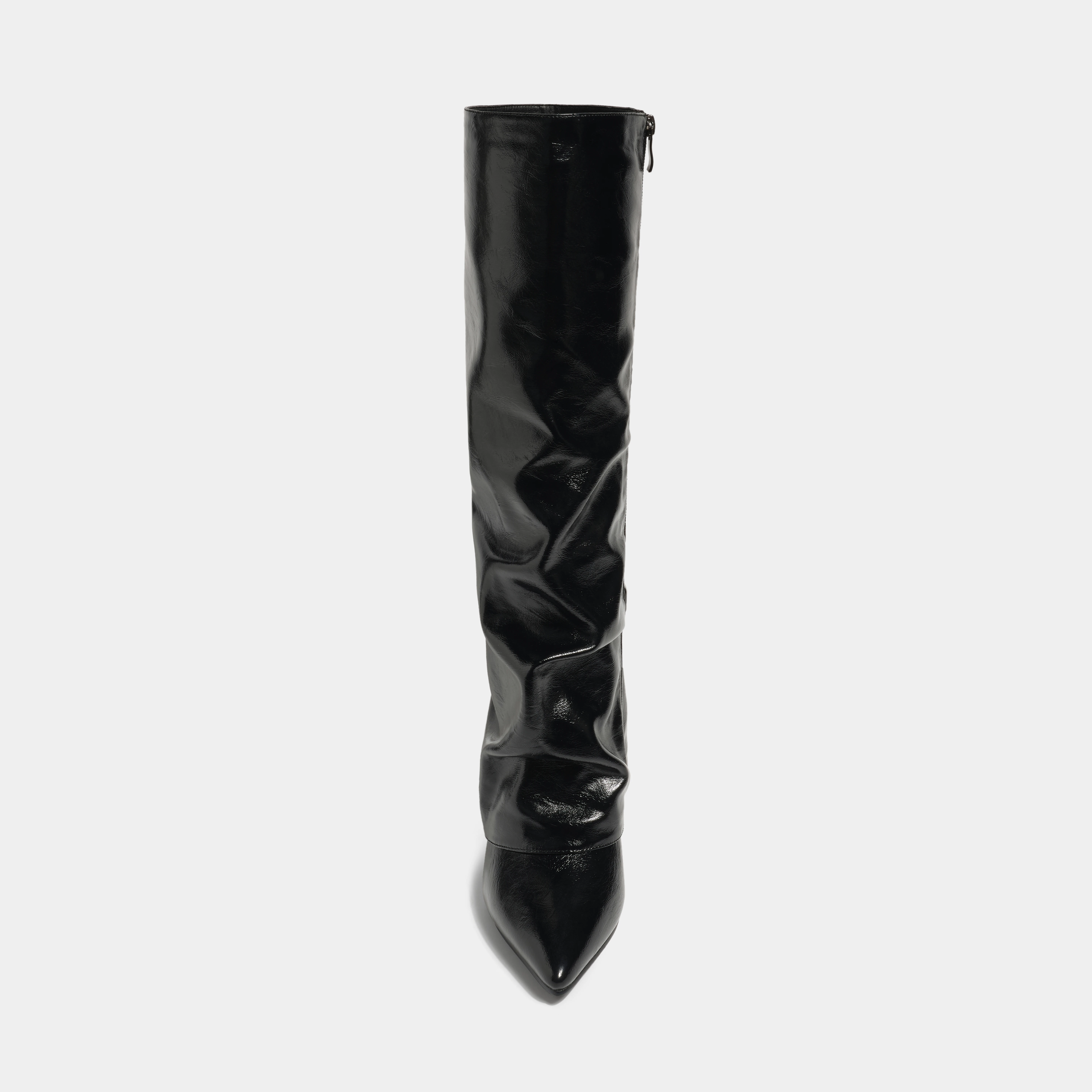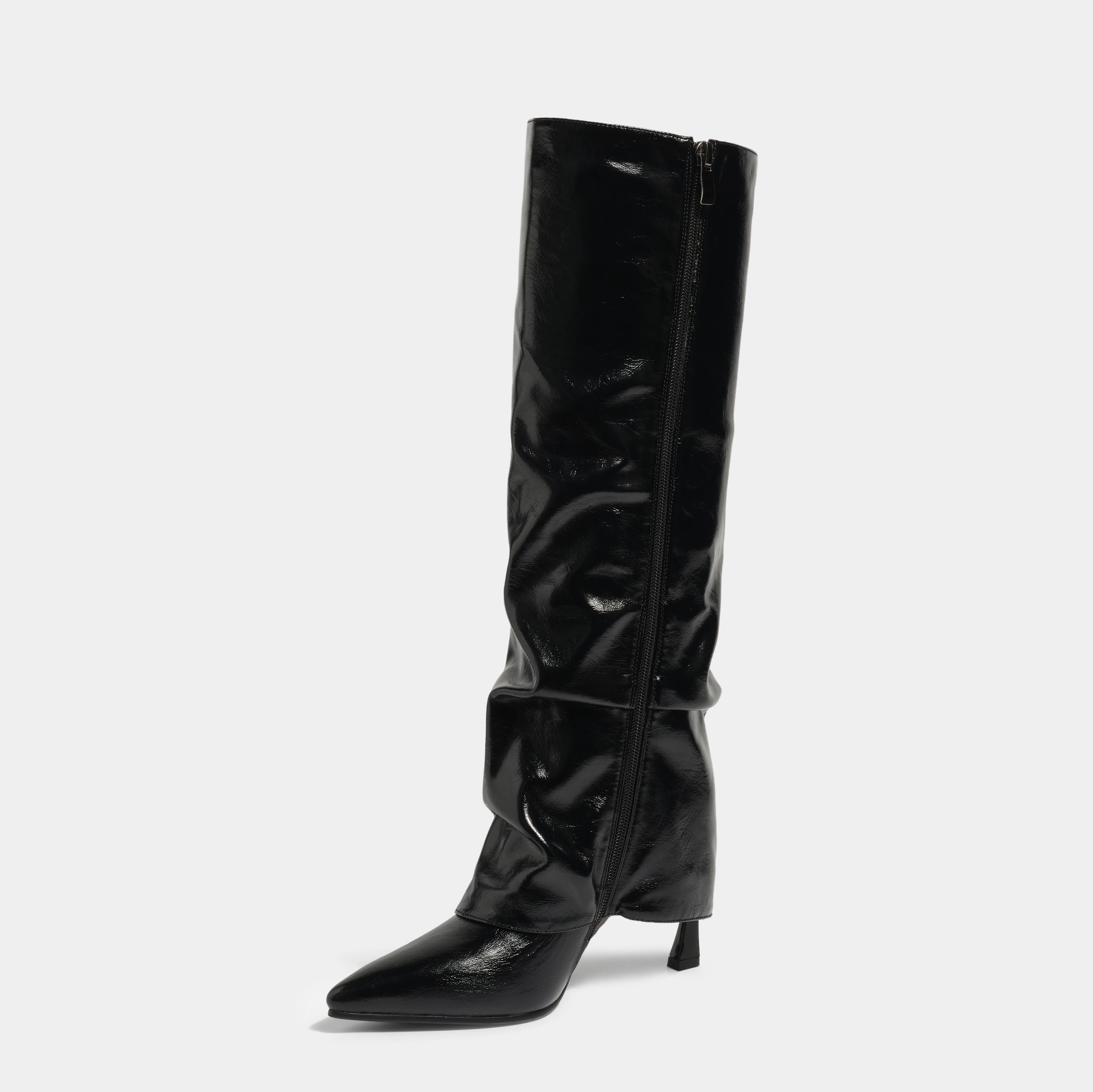 Winter Western Style Knee High Boots Fashion Ruched Patent Leather Pointed Toe Stiletto Heel Zip Closure Height Increasing