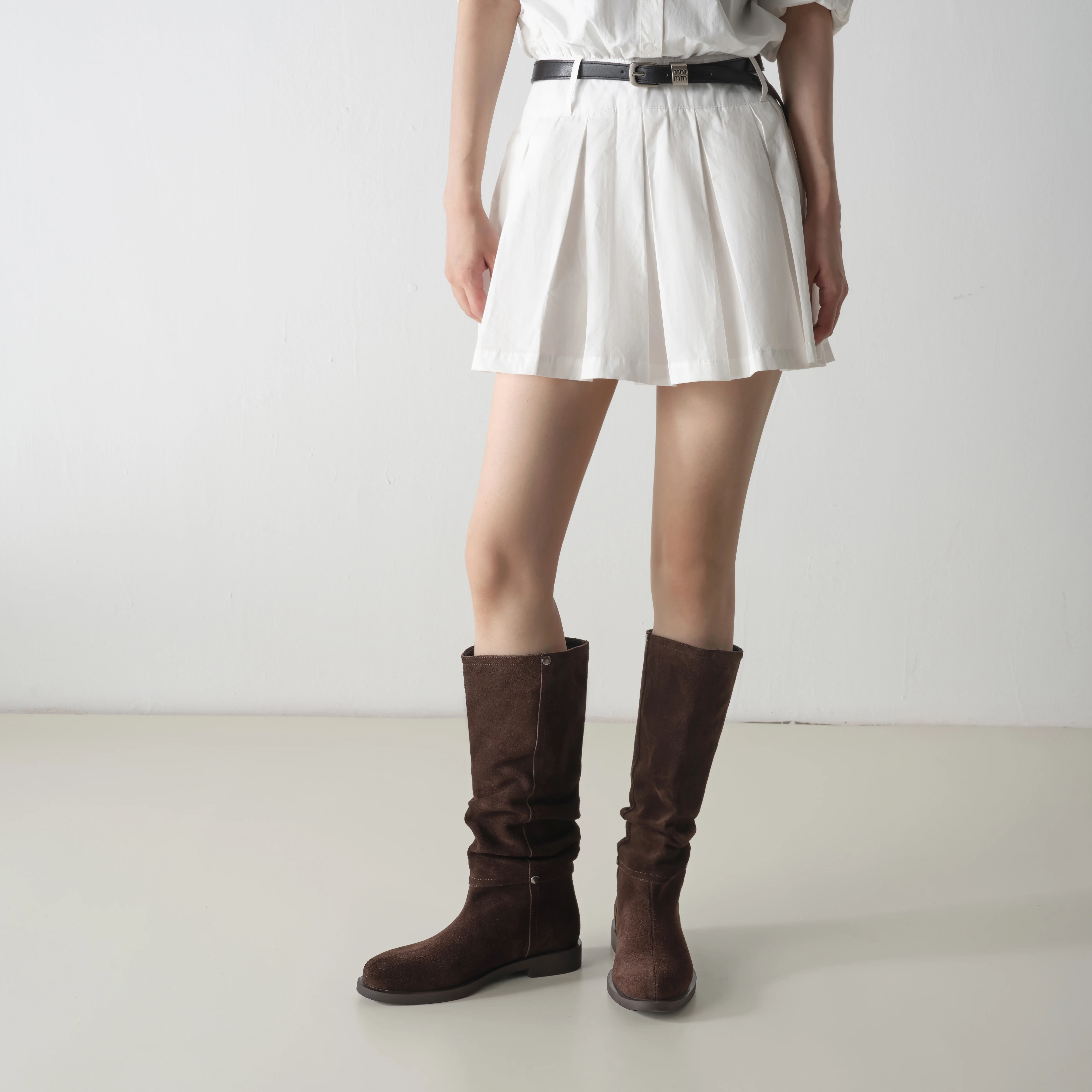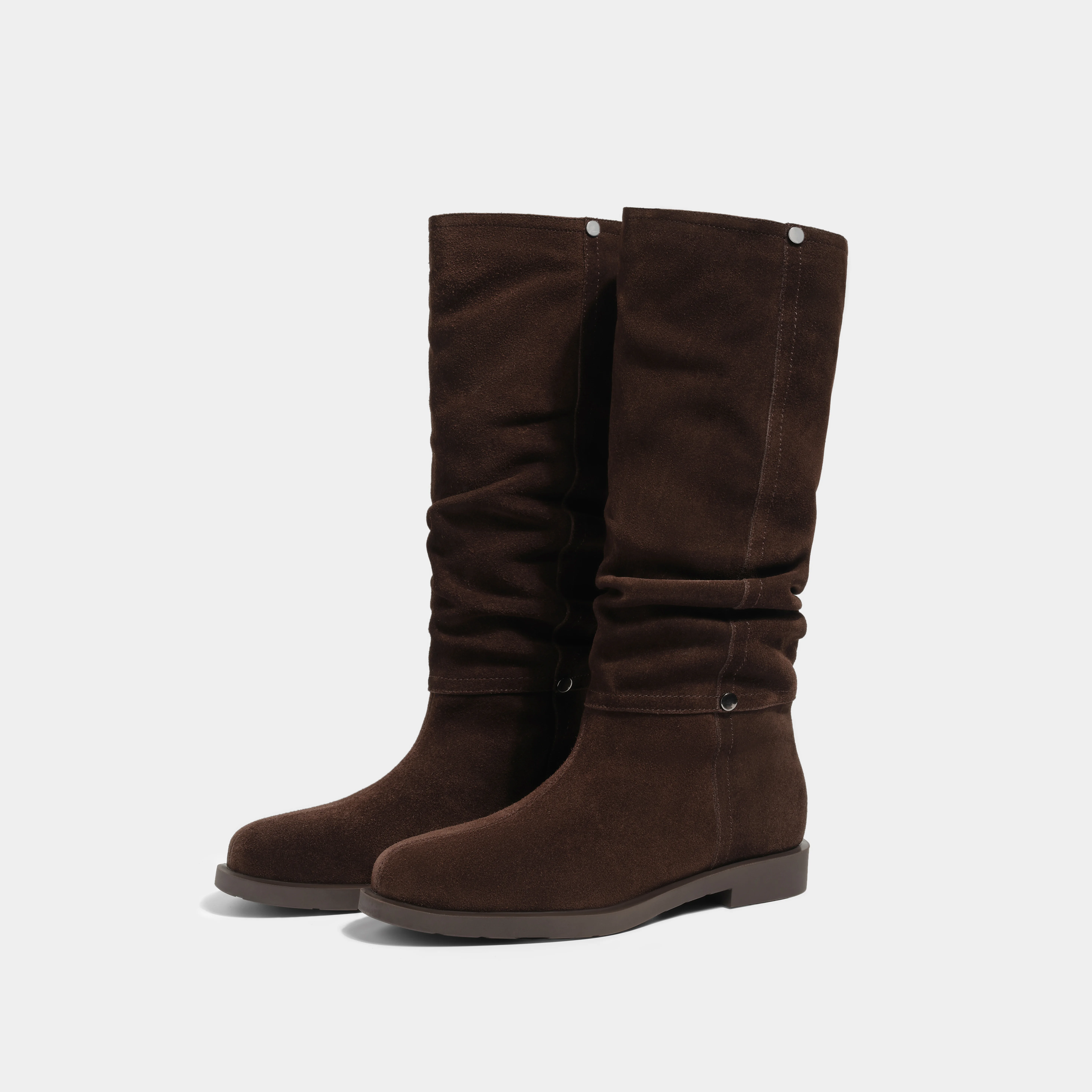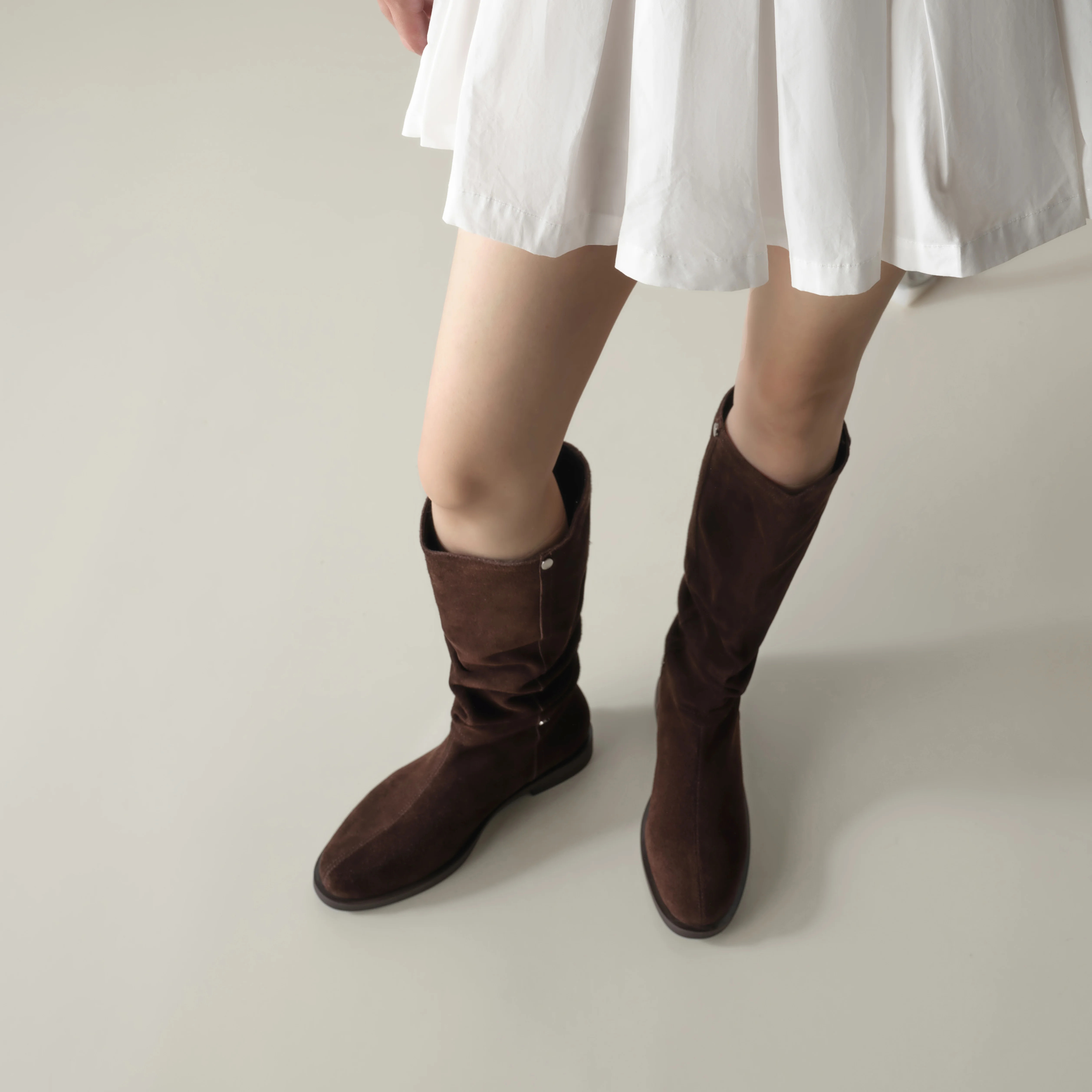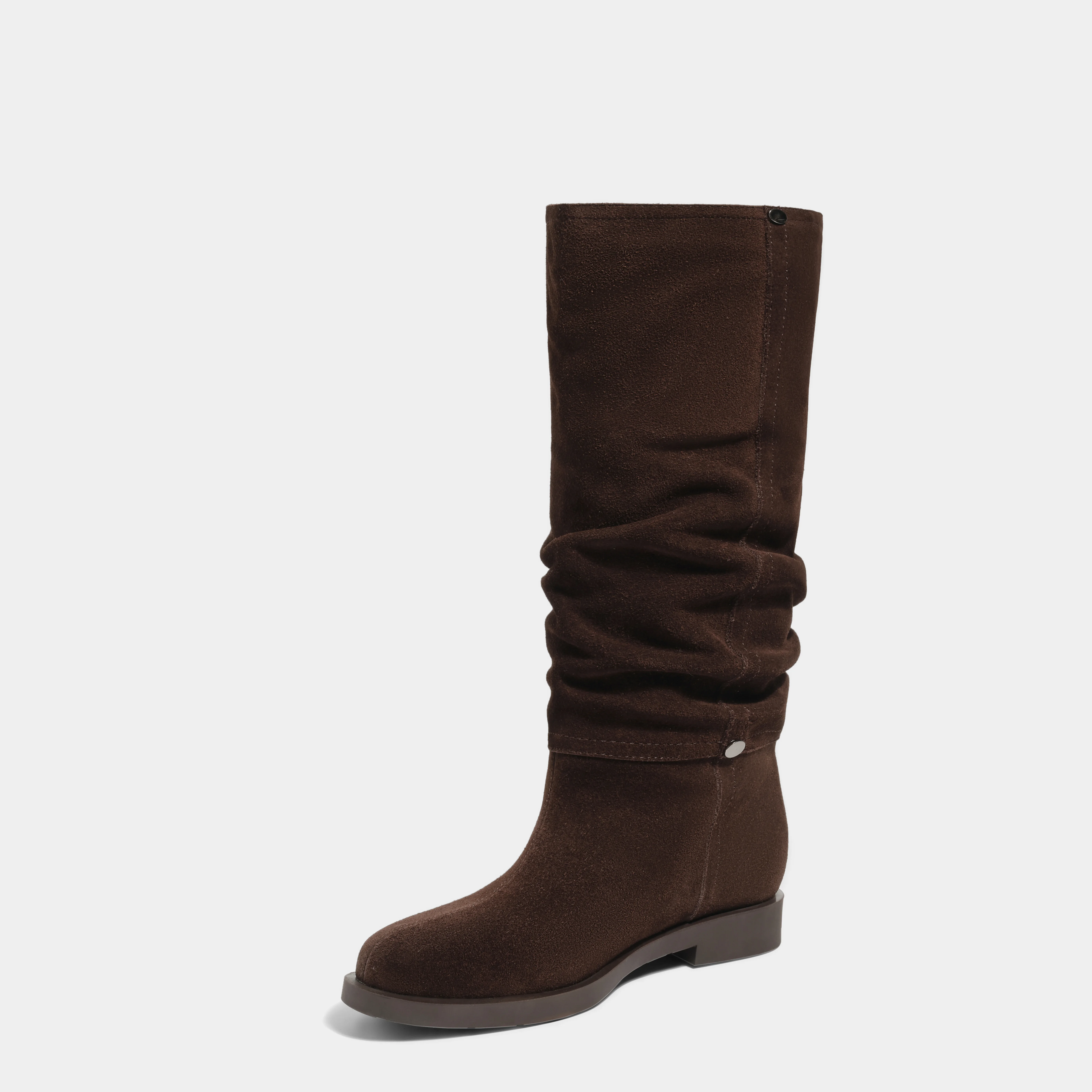 Trendy Casual Dress Shoes for Women Popular Knee-High Slouch Boots with Wide Calfs Ruched Stacked Booties Cowboy Western Style