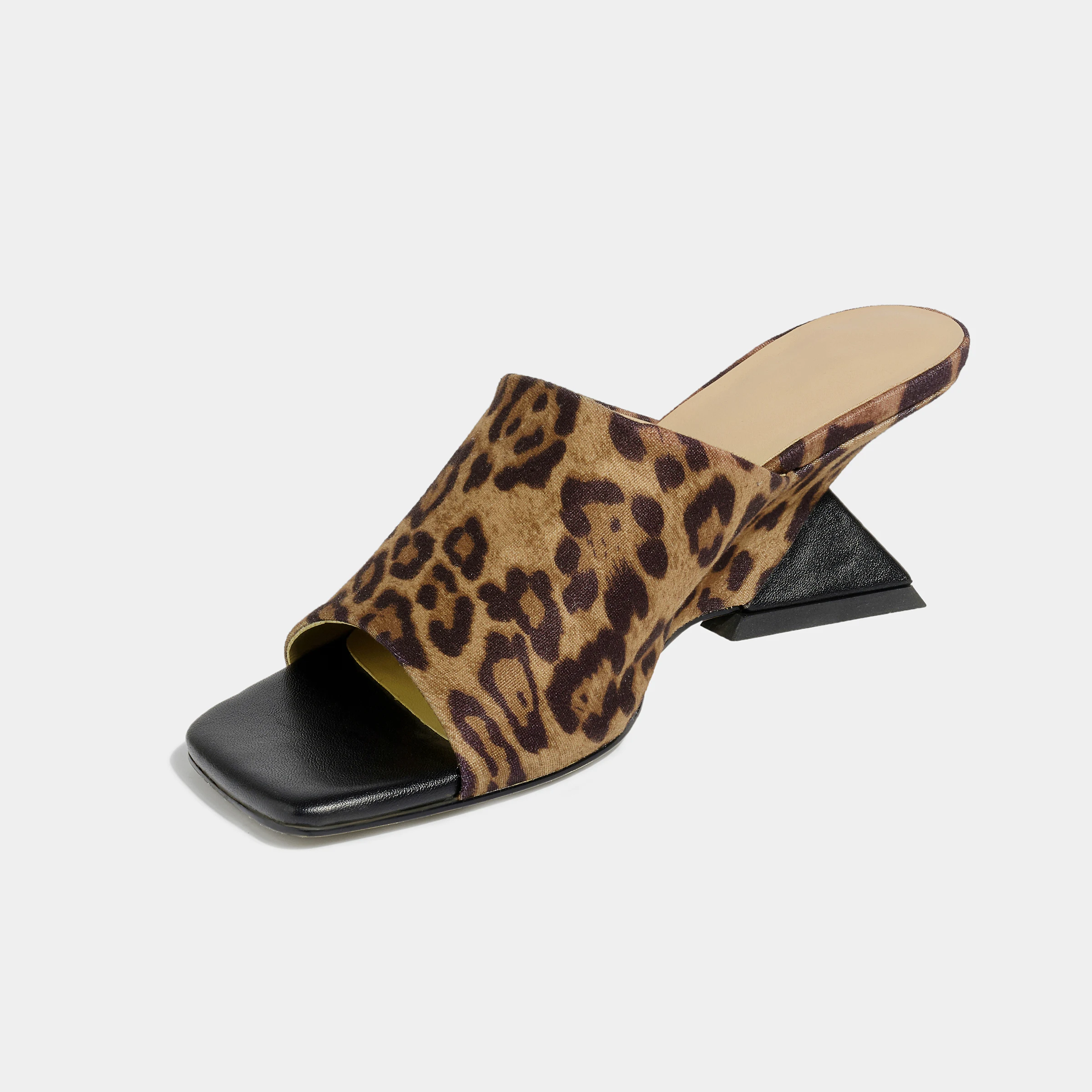 2026 Chic Leopard Print Mules Geometric Heel Wedge Light Weight Sexy Style Hot Sales for Casual Party Heeled Sandals-Summer