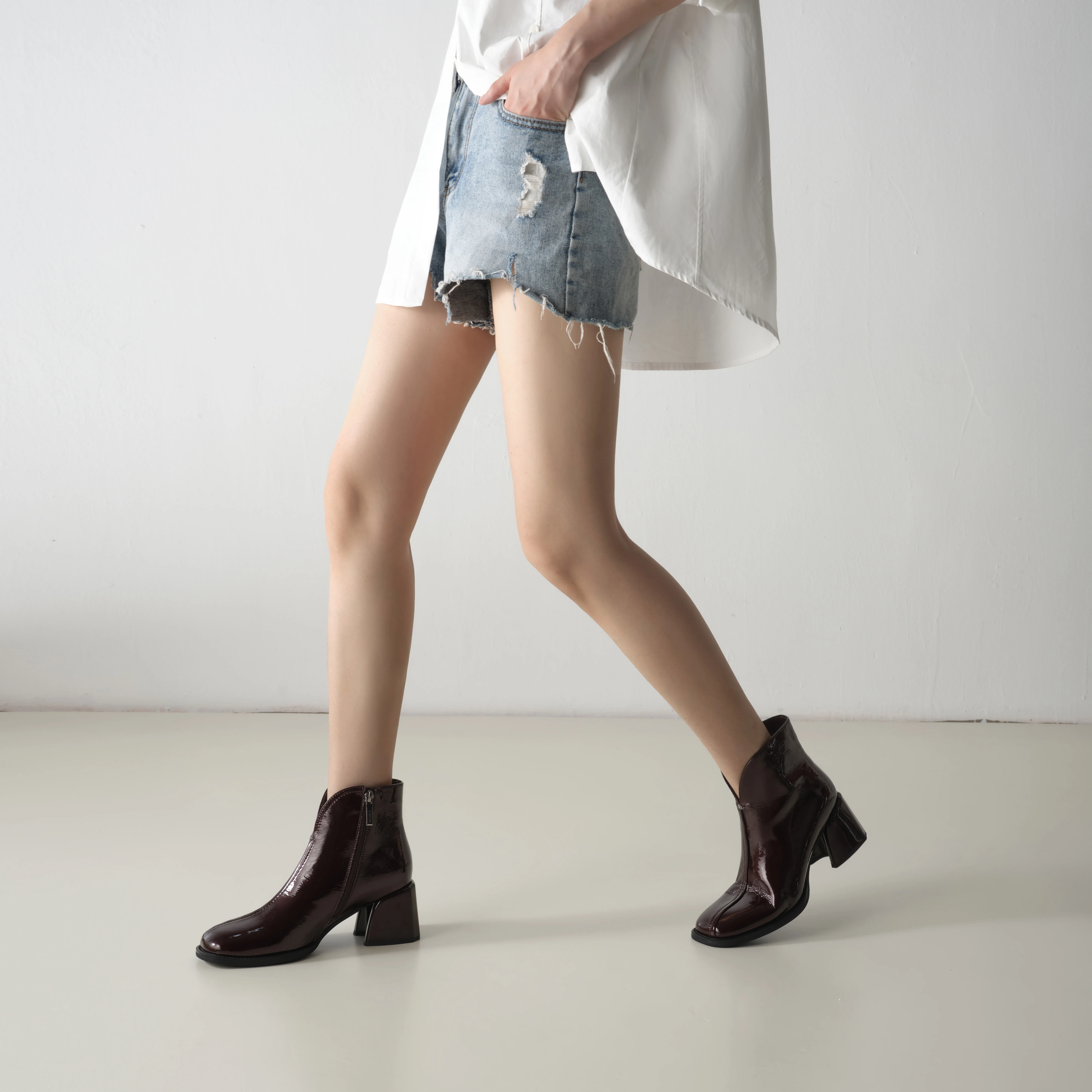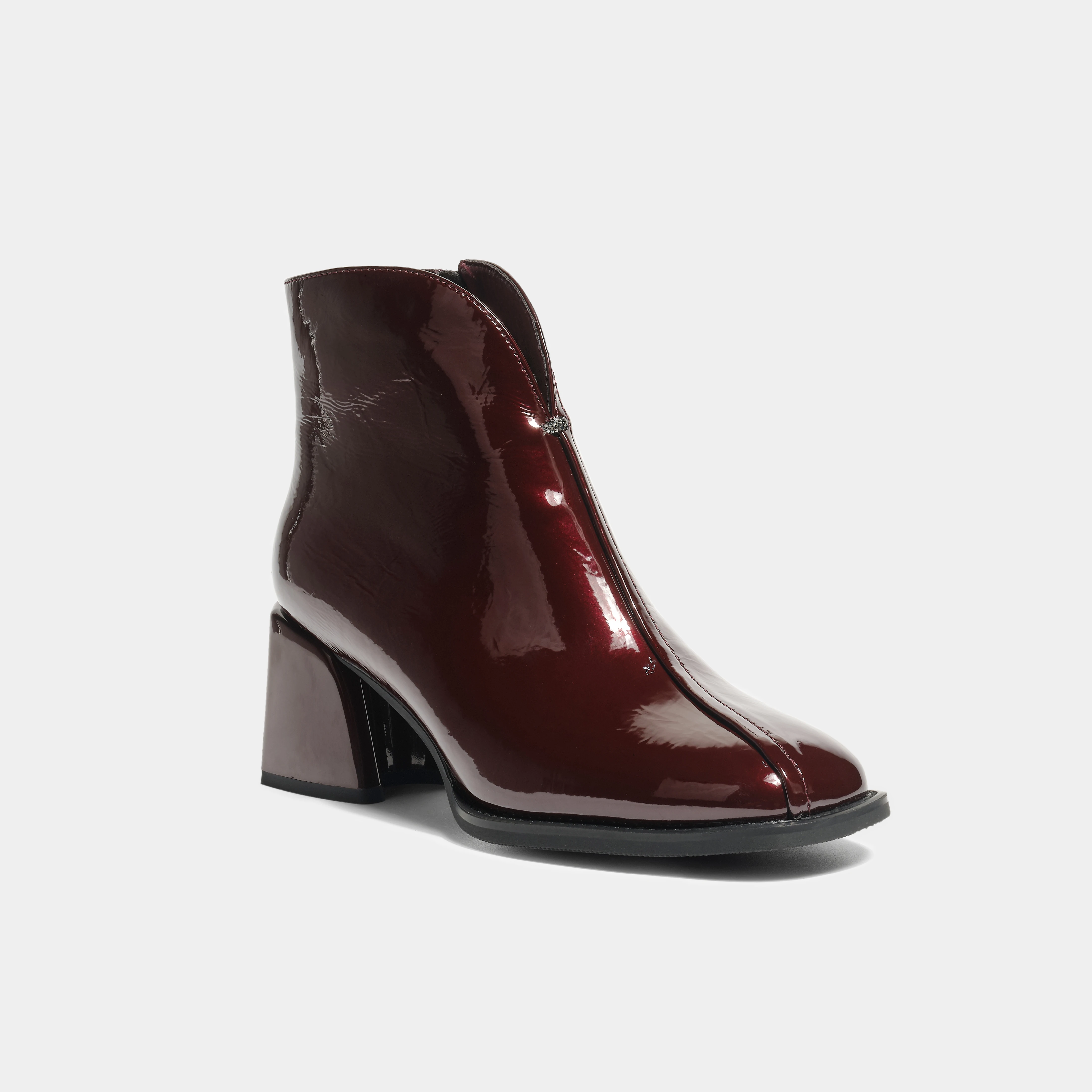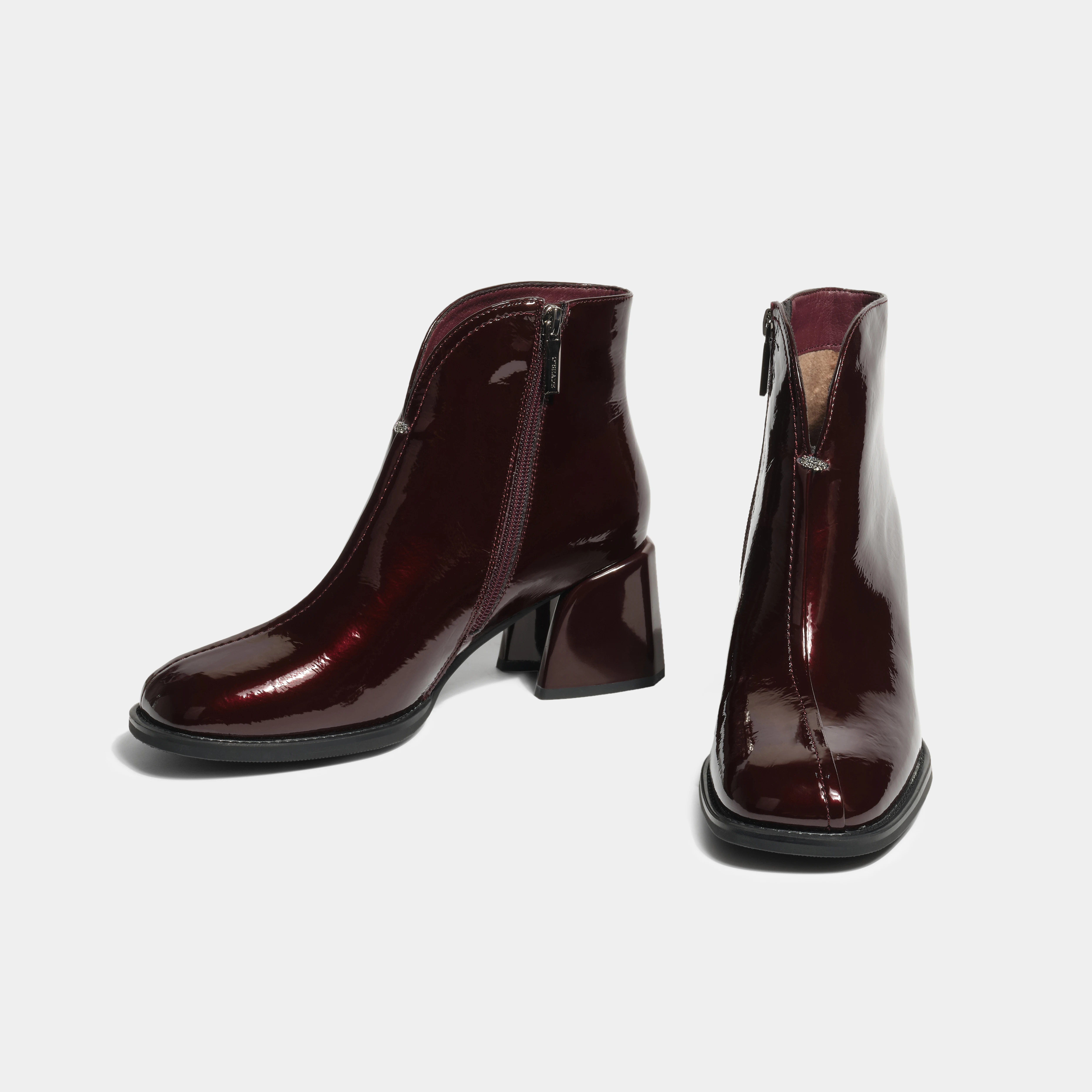 Minimalist Chic Solid Ankle Boots Square Toe Chunky Heel Zip Closure Crystal Accents-Fashionable Breathable Feature for Autumn
