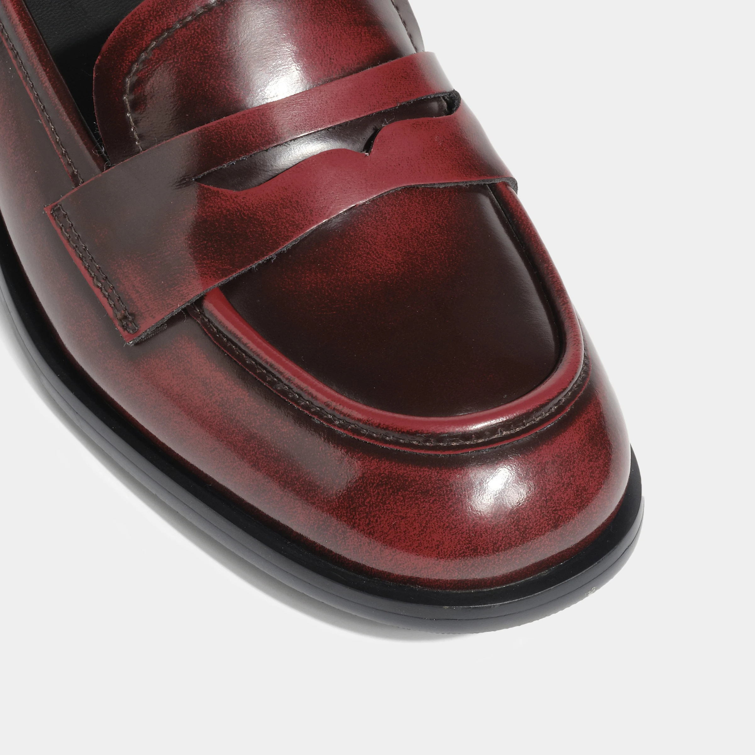 Women's Office Chic Dress Shoes Wine Red High-Shine Leather Loafers Glossy Finish Flat Design Breathable Slip-On