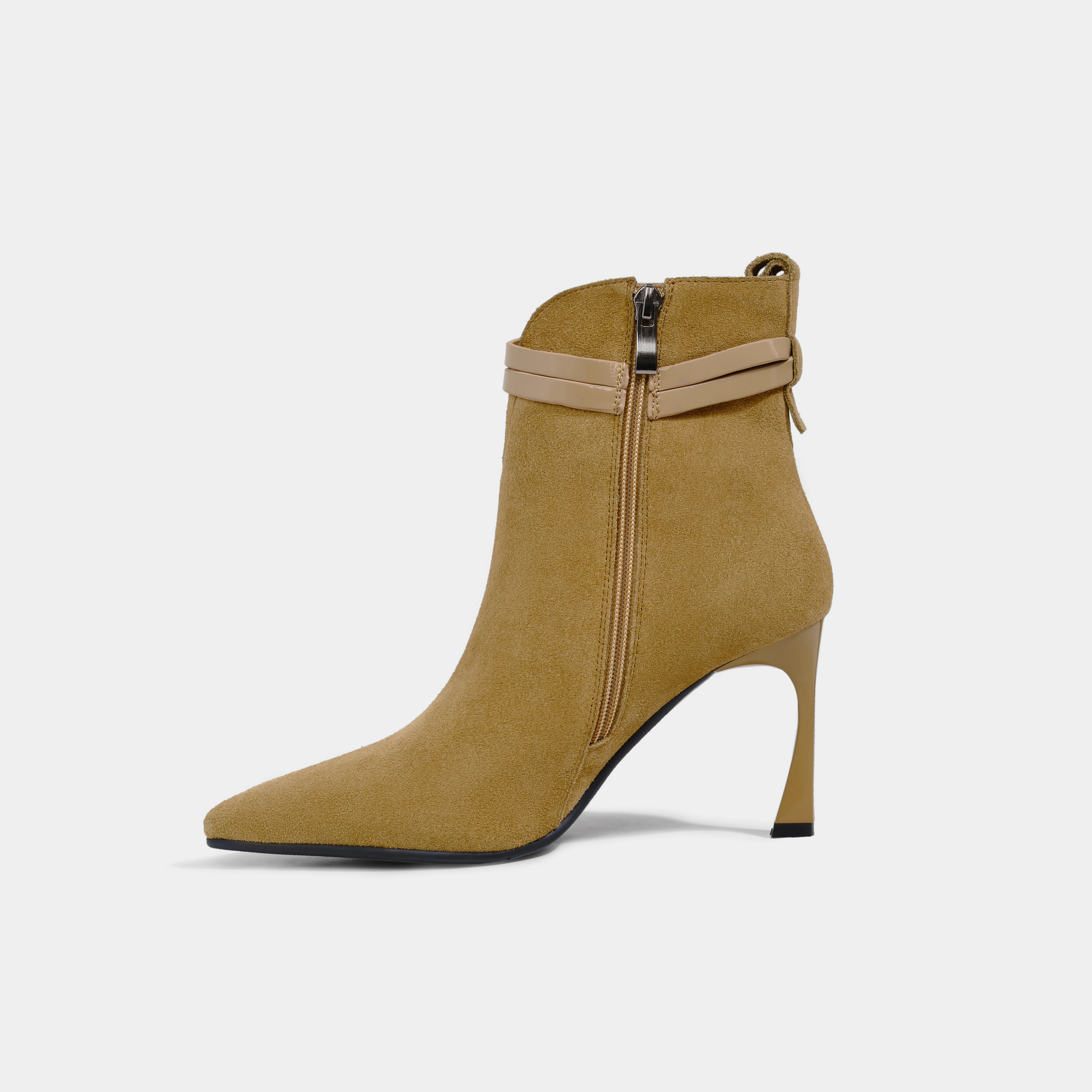 Women's Chic Stiletto Ankle Booties with Designer Belt Buckle Pointed Toe Zip Closure Fashion Boots-Classic Western Formal Style