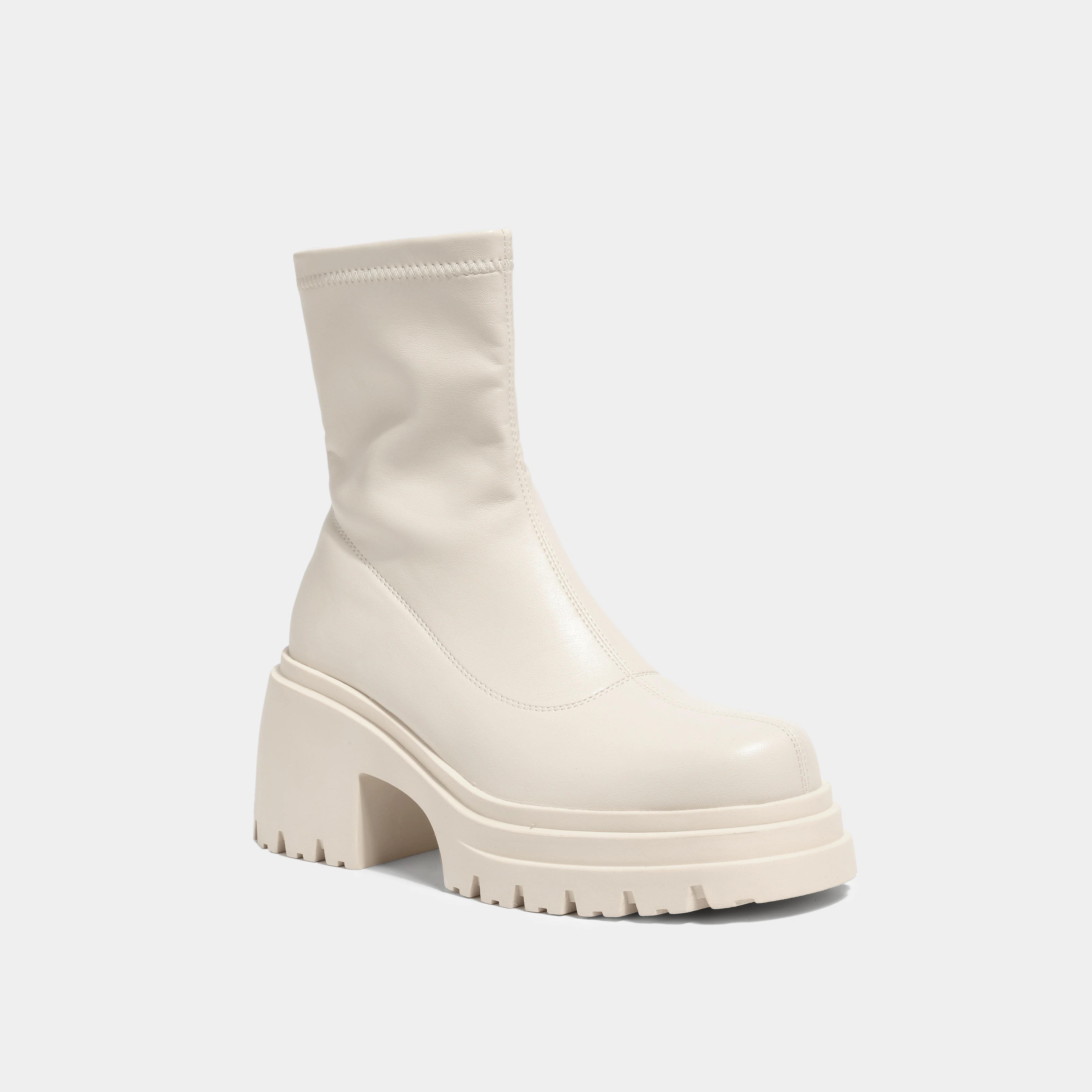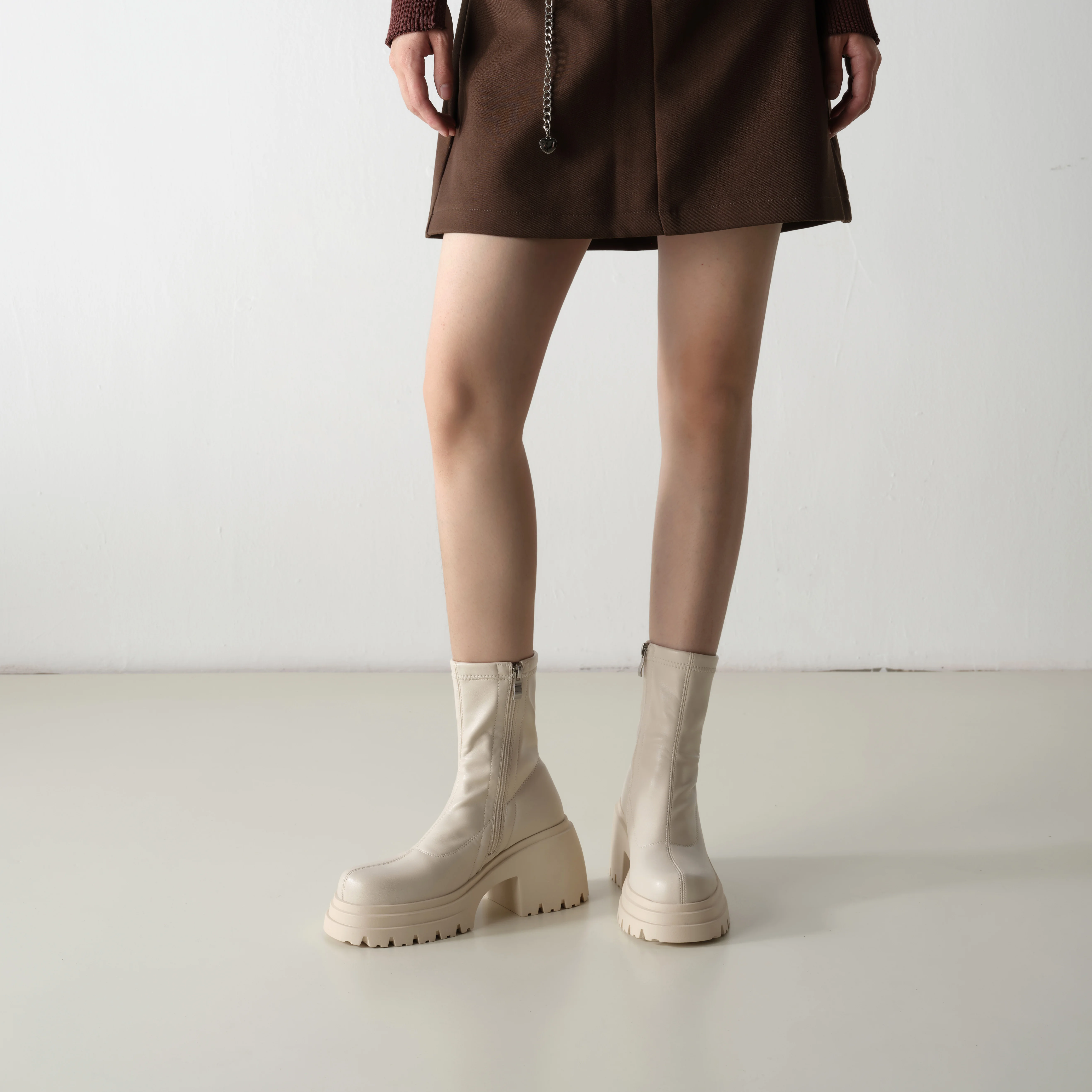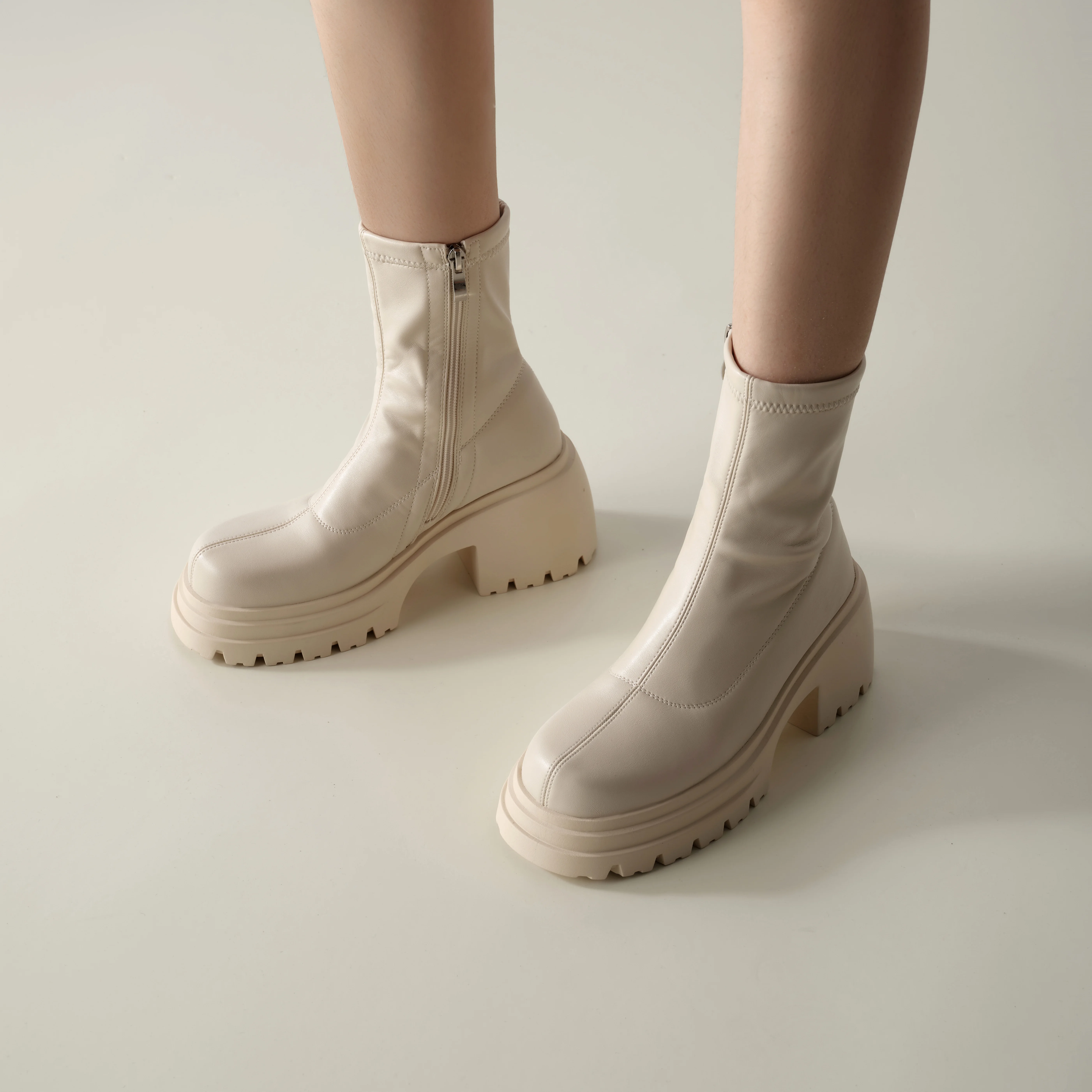 Women's Fashion Korean Ankle Boots Elastic Side Gusset Platform Stretch Design for Height Boosting Comfortable Booties