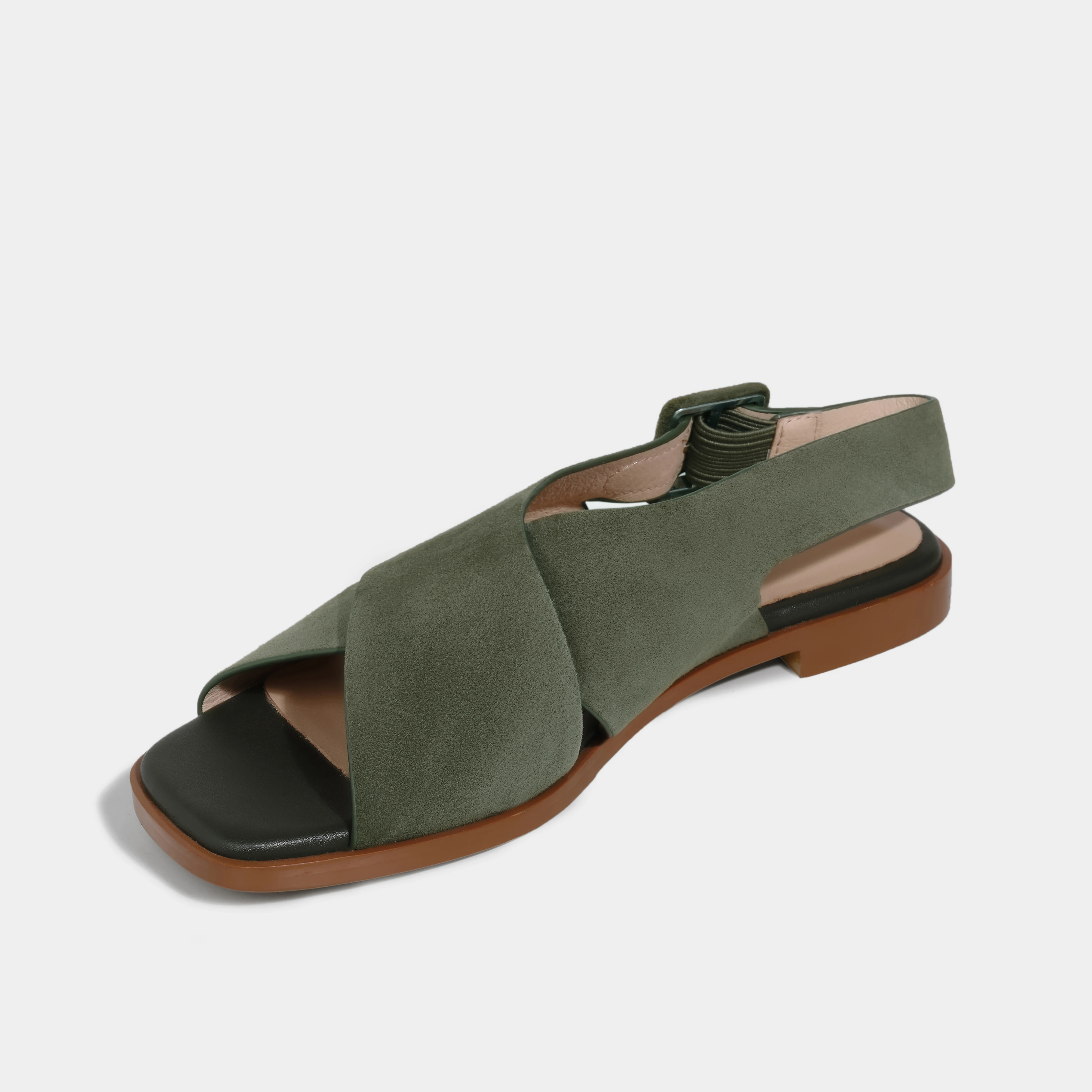Women's Lightweight Summer Boho Flat Sandals Crisscross Suede Straps Buckle Closure Platform Fashionable Trend for Spring Autumn