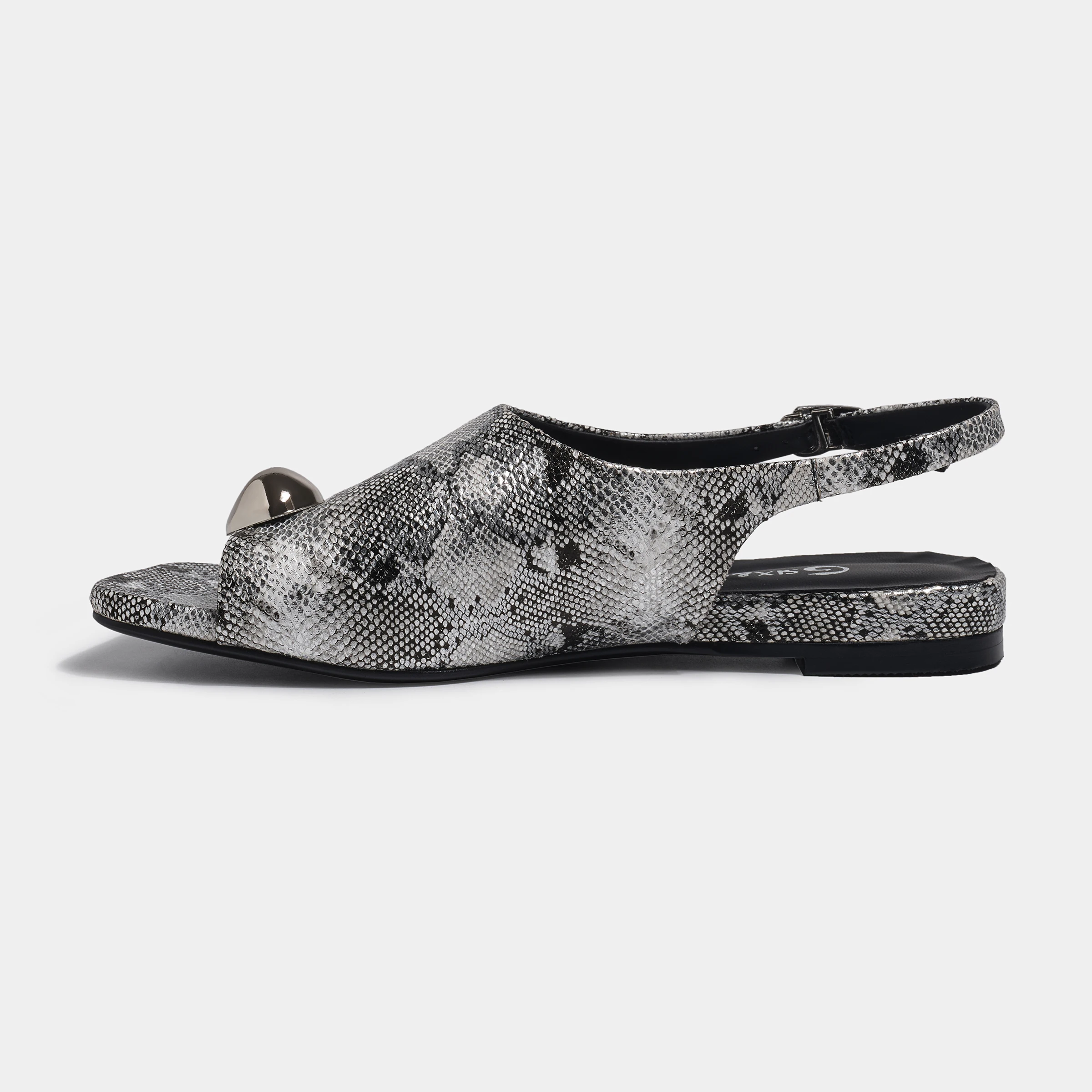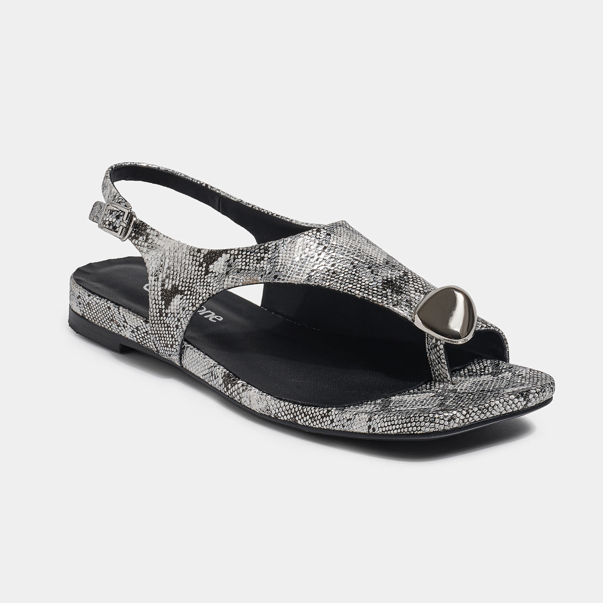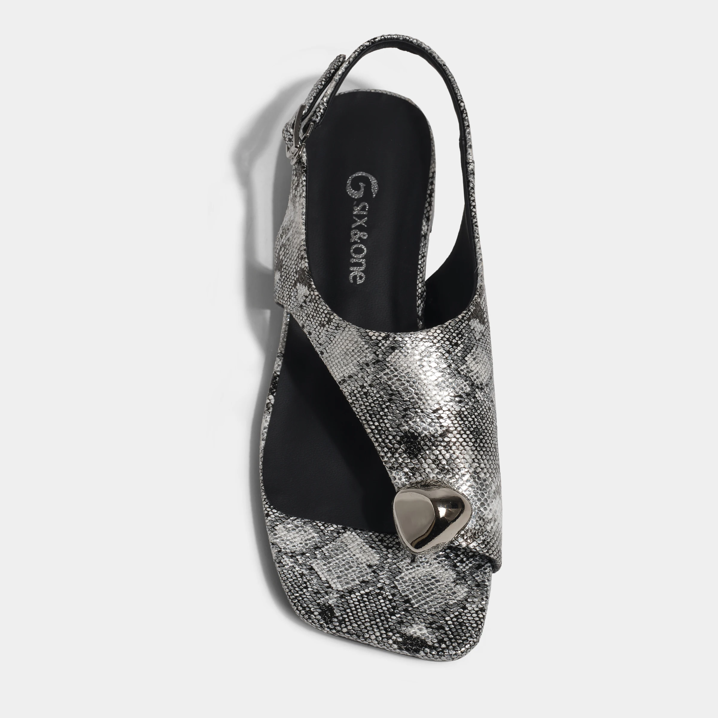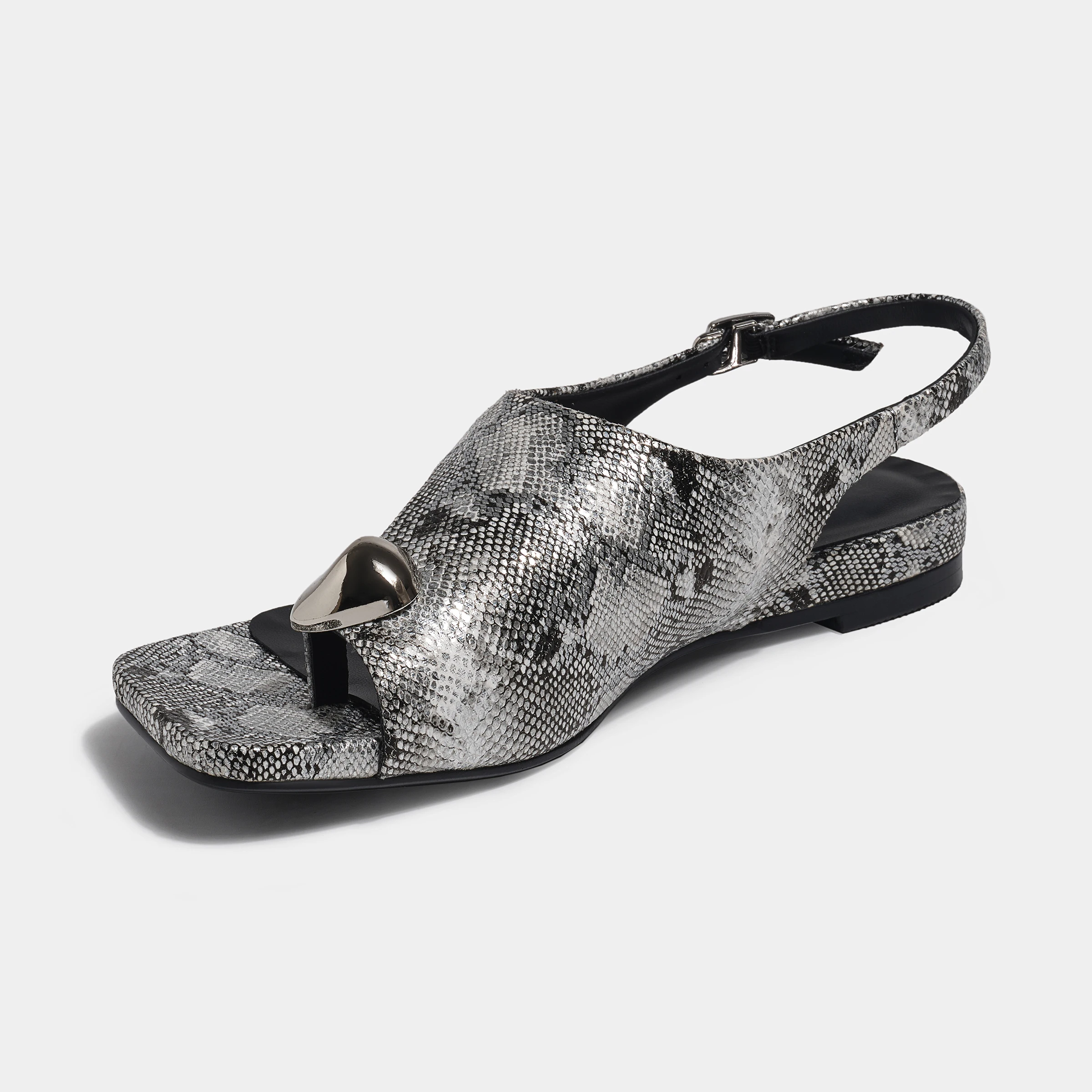 Best-Selling Trendy Silver Snakeskin-Print T-Strap Sandals Heart Accent Slip-On Closure Soft Feature