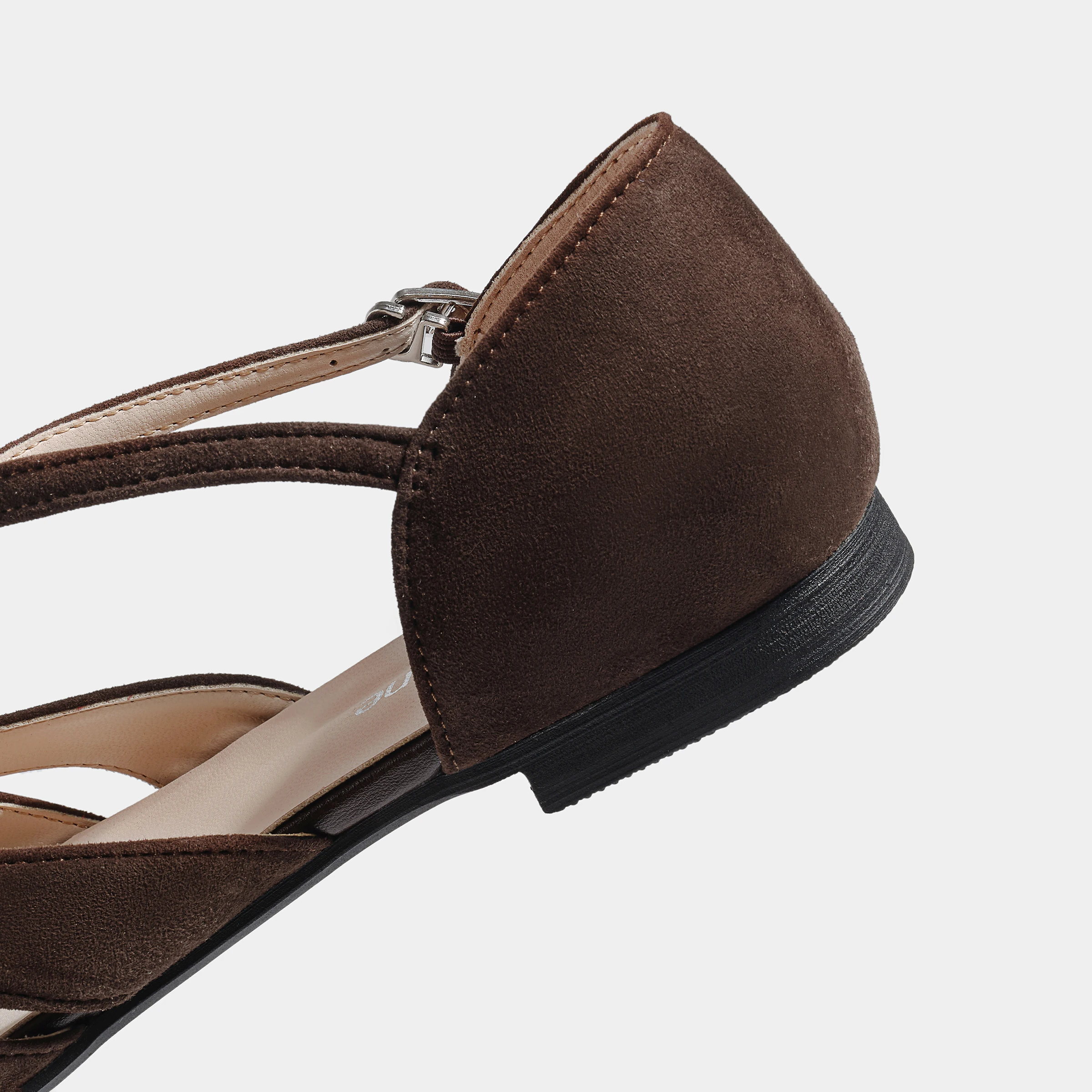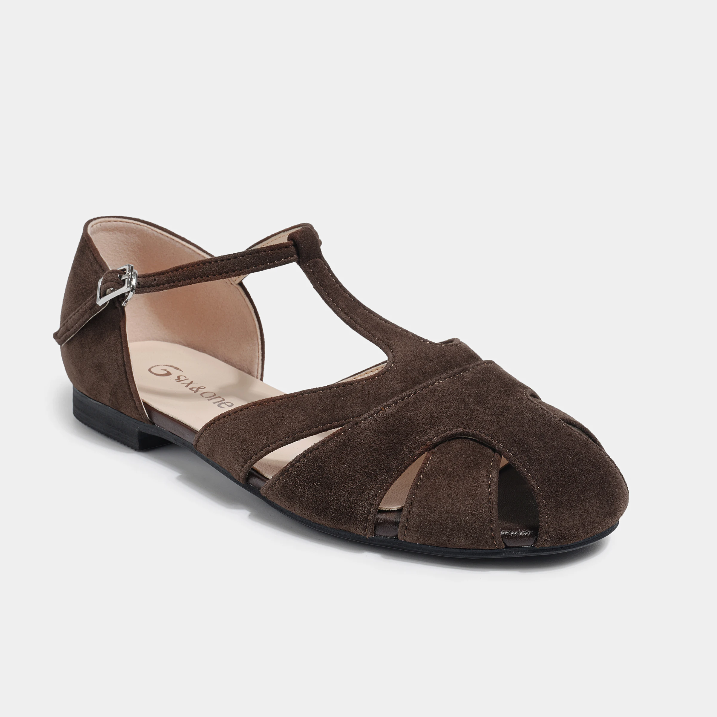 Women's Brown Faux Suede T-Strap Flats with Cut-Out Design Buckle Strap Comfortable for Summer Daily & Casual Wear