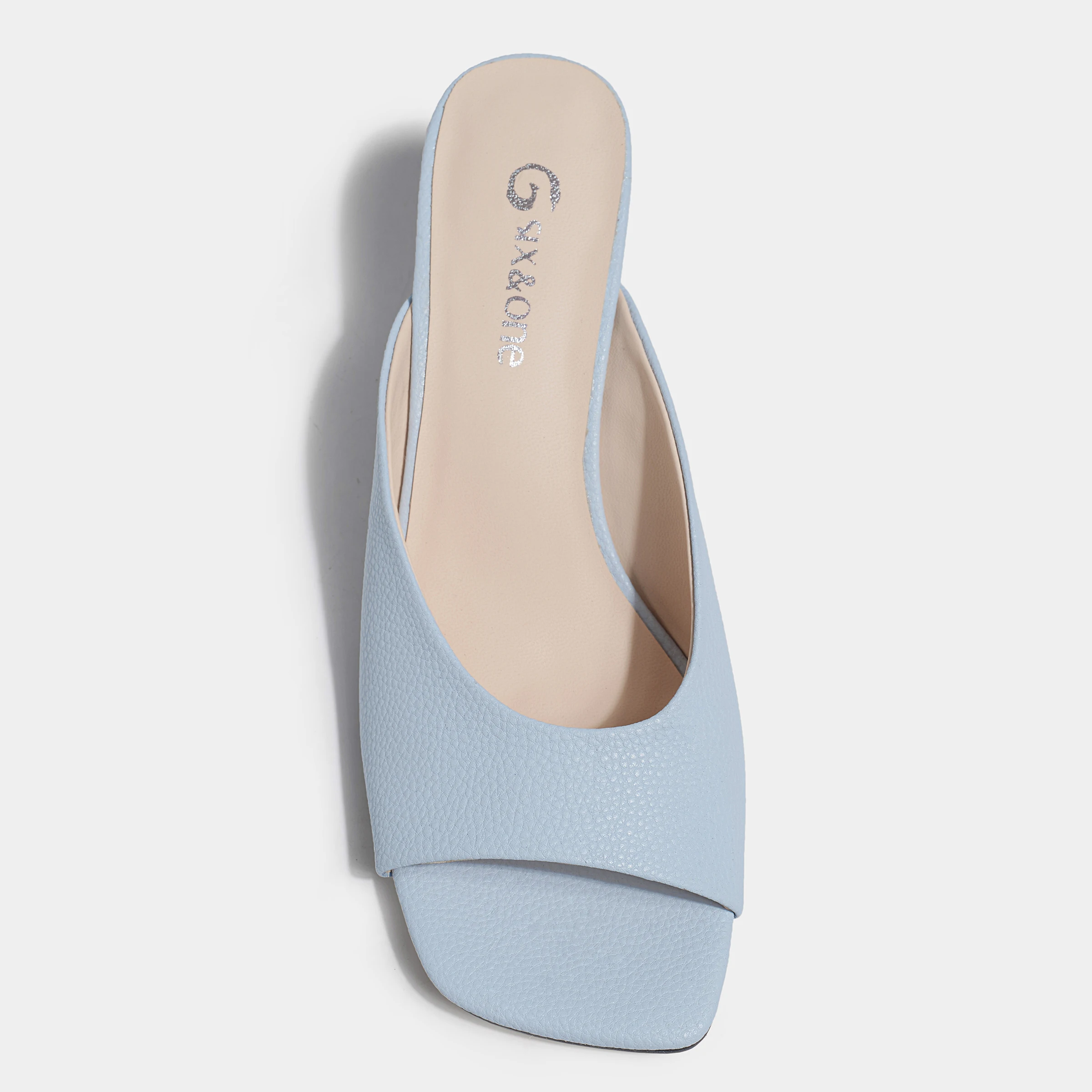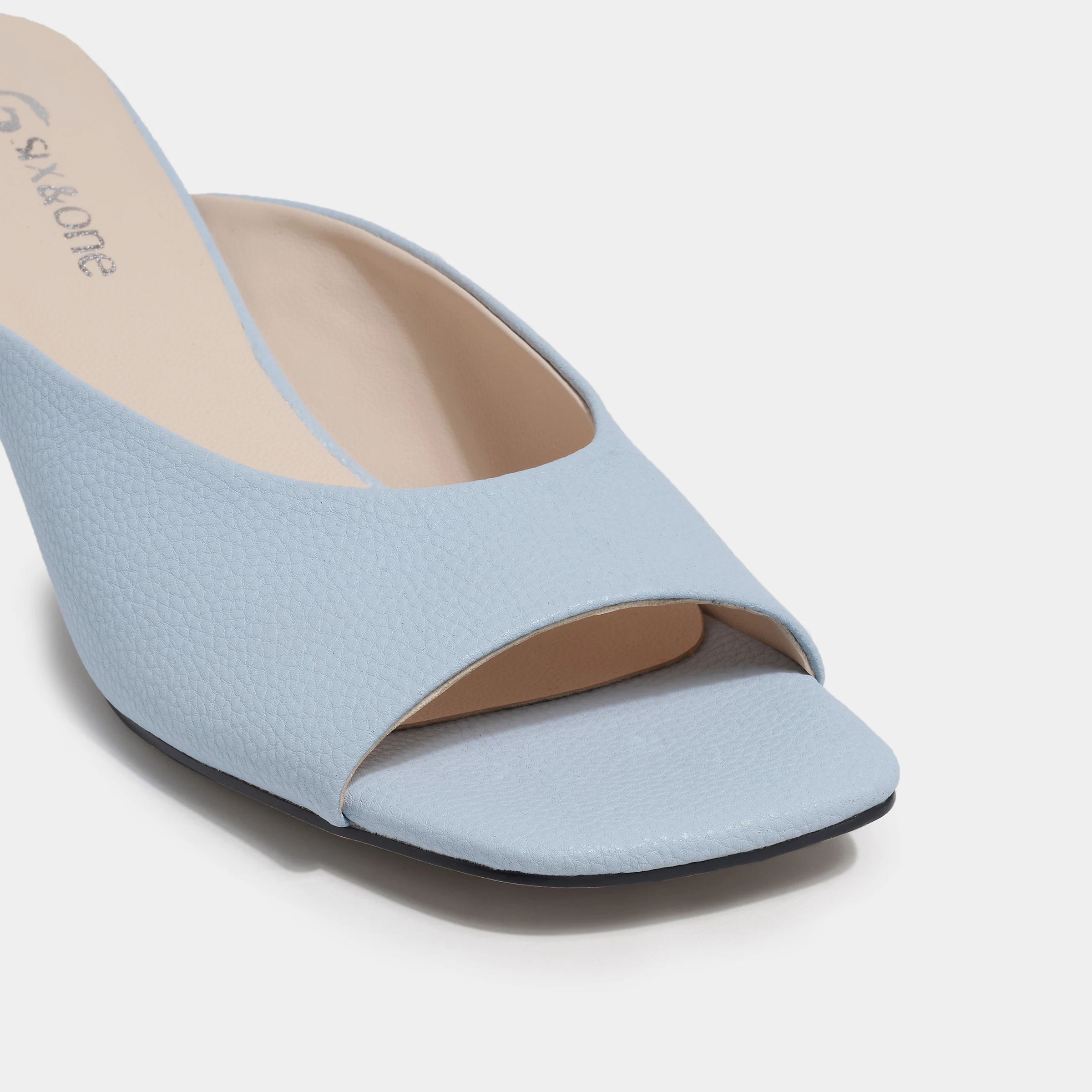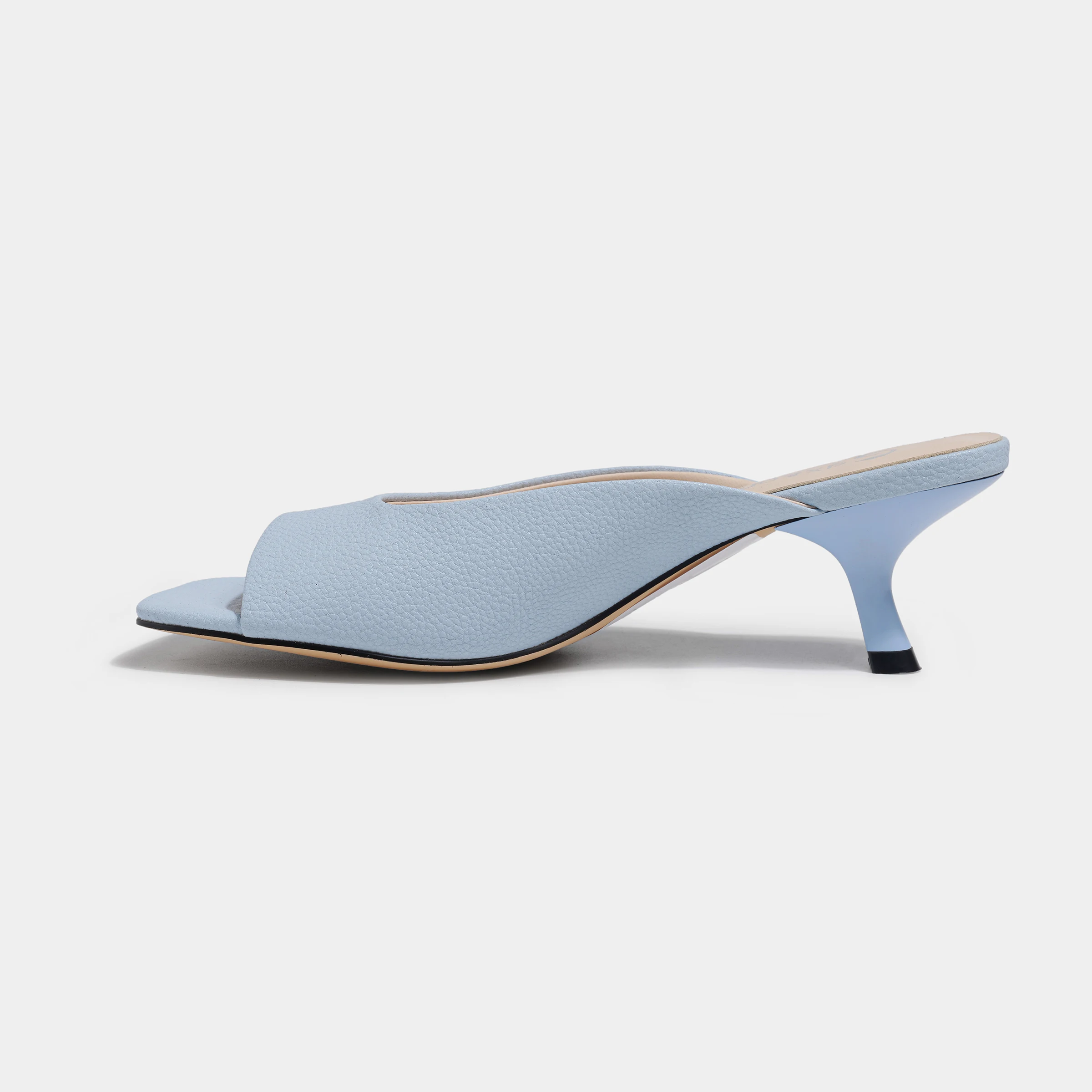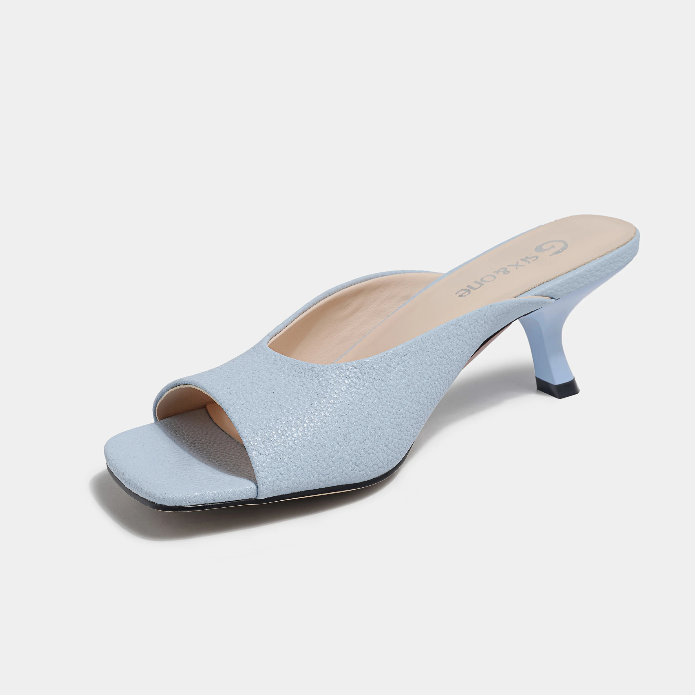 Best Selling Summer Style Square Toe Kitten Heel Mule Sandals Sky Blue Pebbled Heeled Sandals
