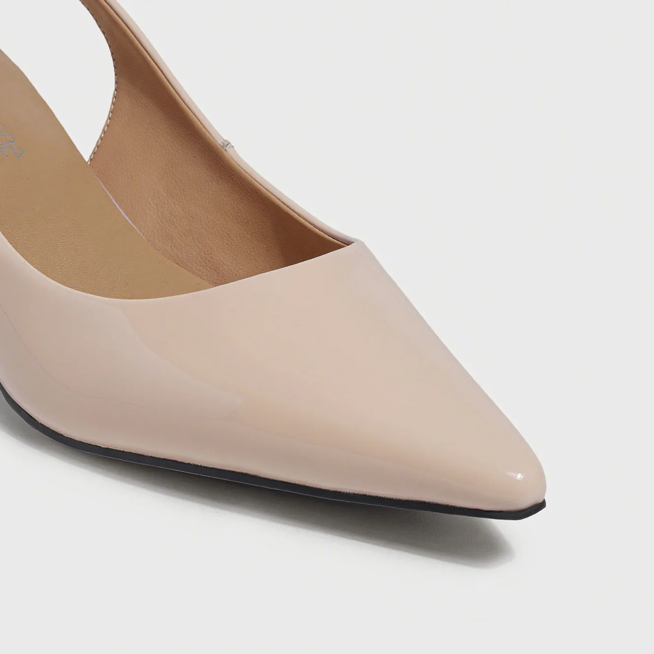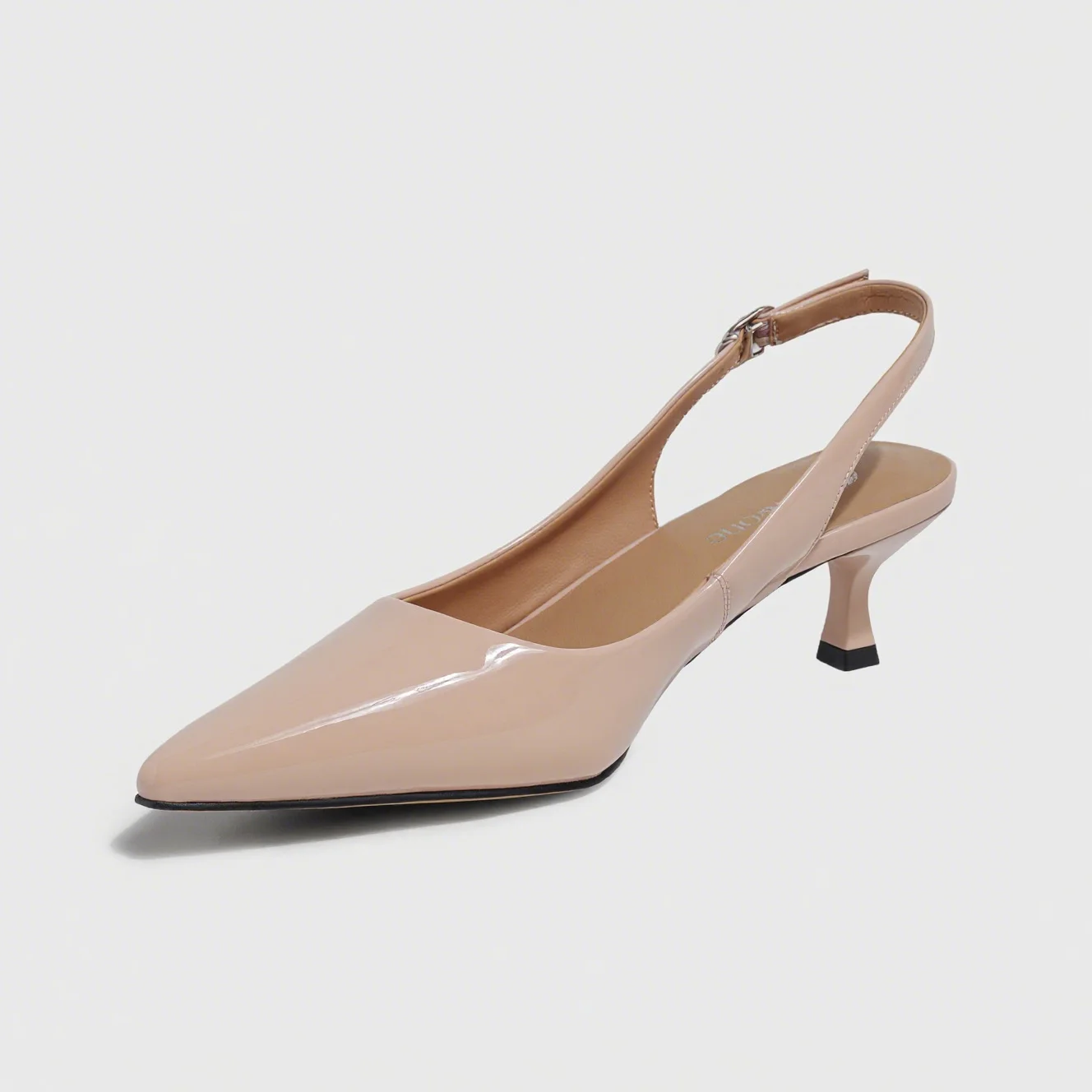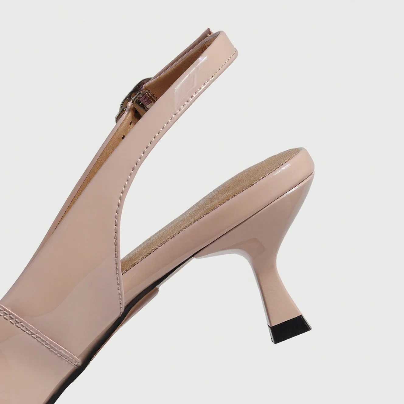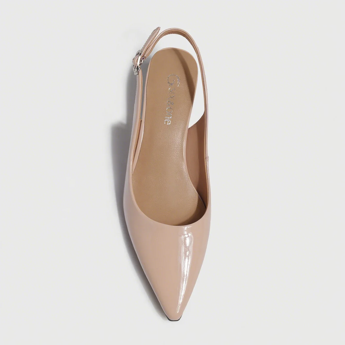 Women's Elegant Nude Patent Leather Kitten Heel Pumps Solid Pattern Pointed Toe Slingback Slip-On Closure Fashion Trend for