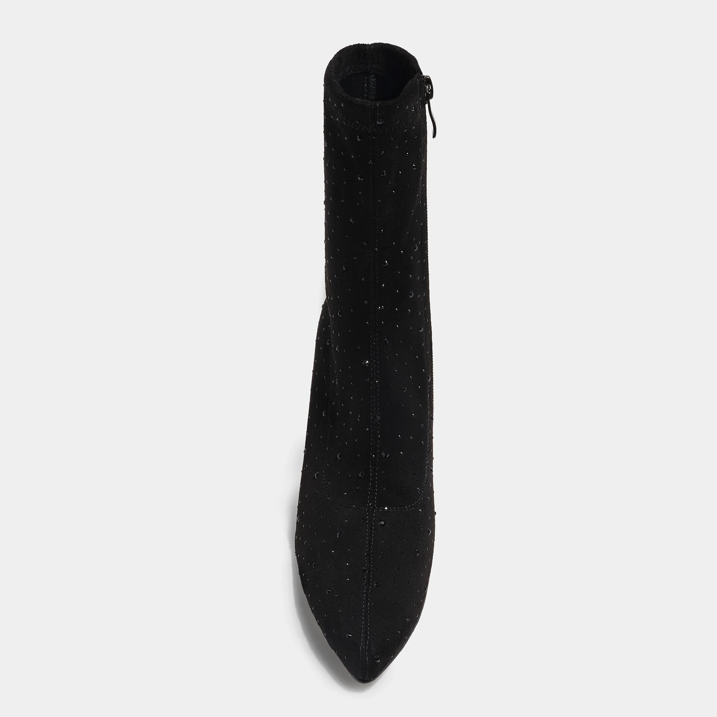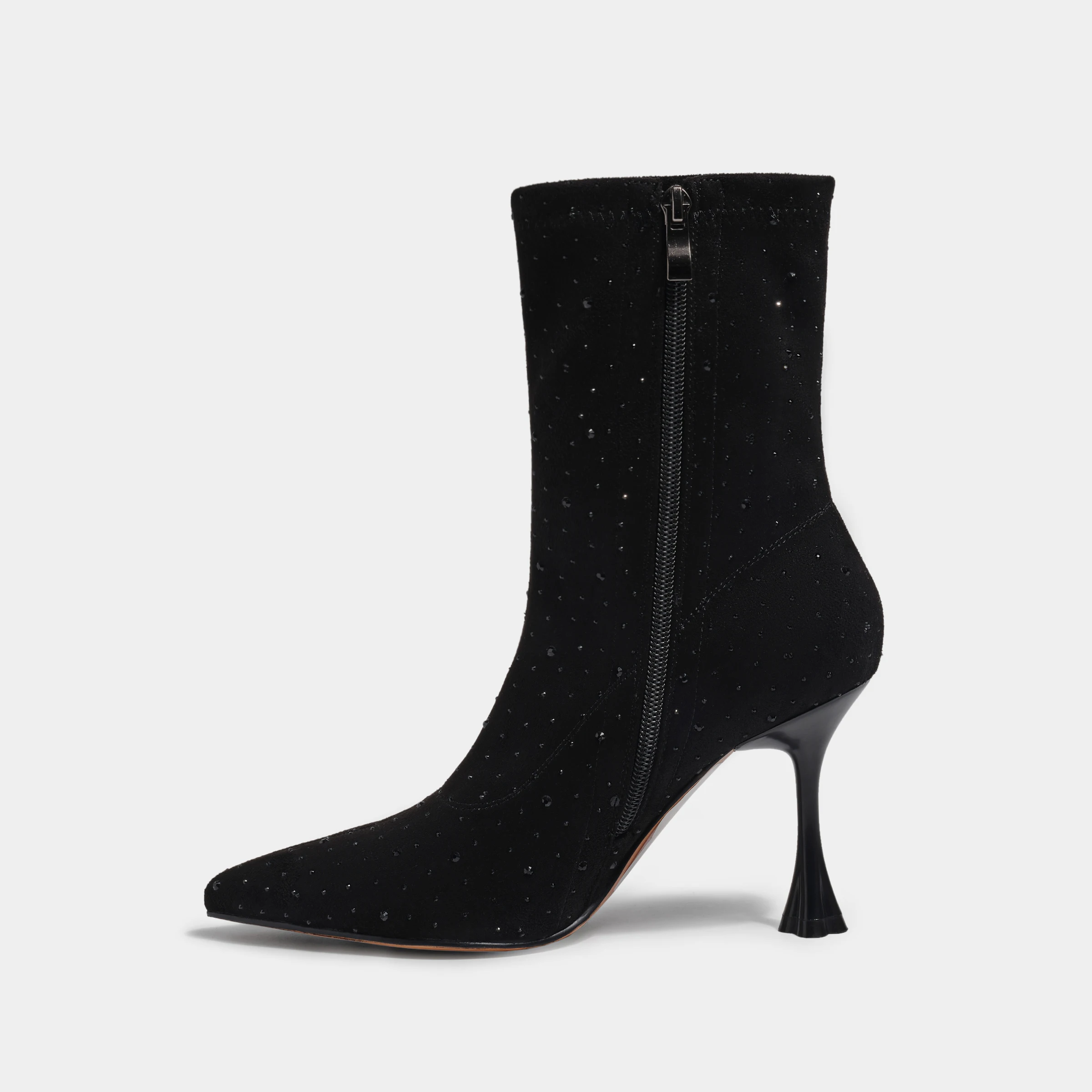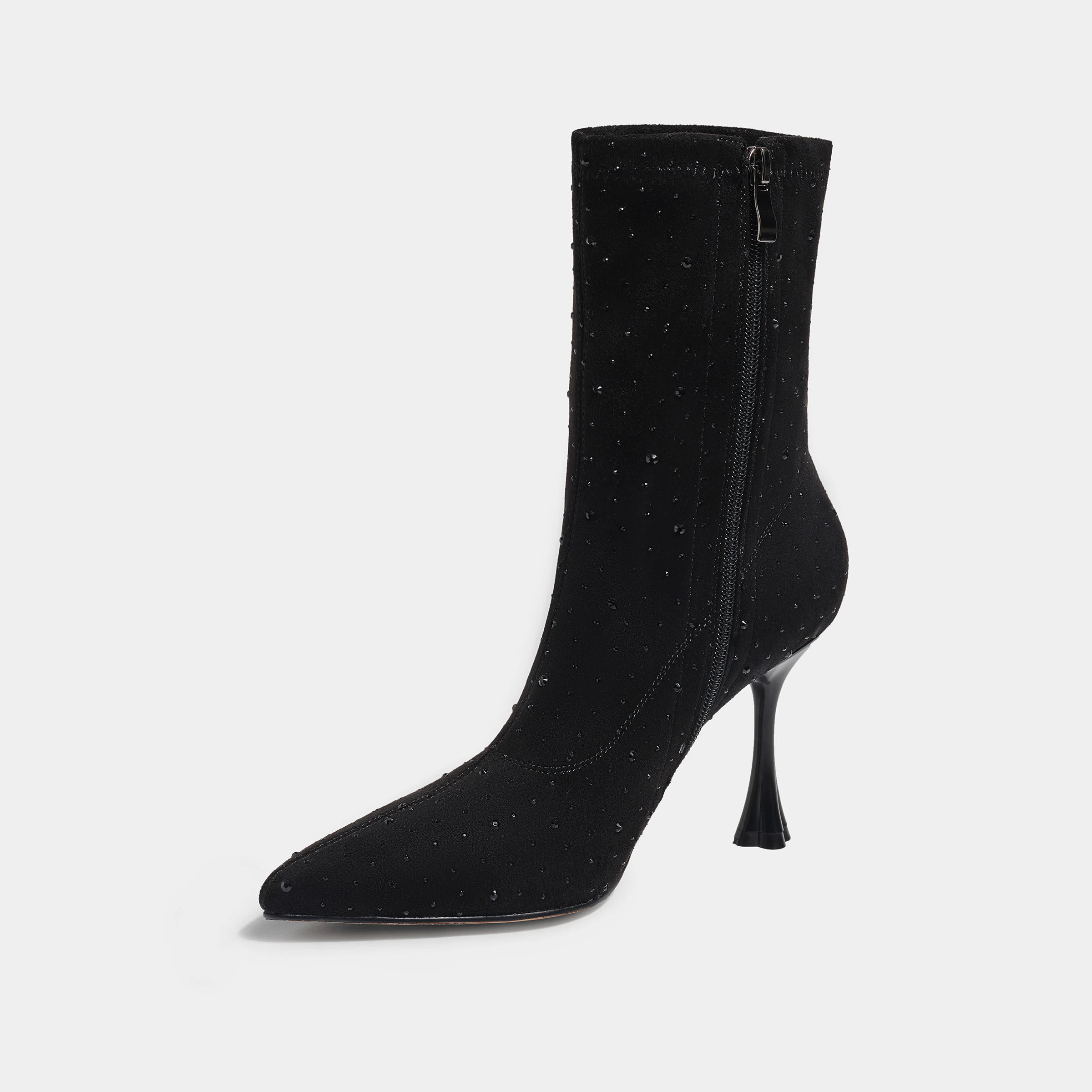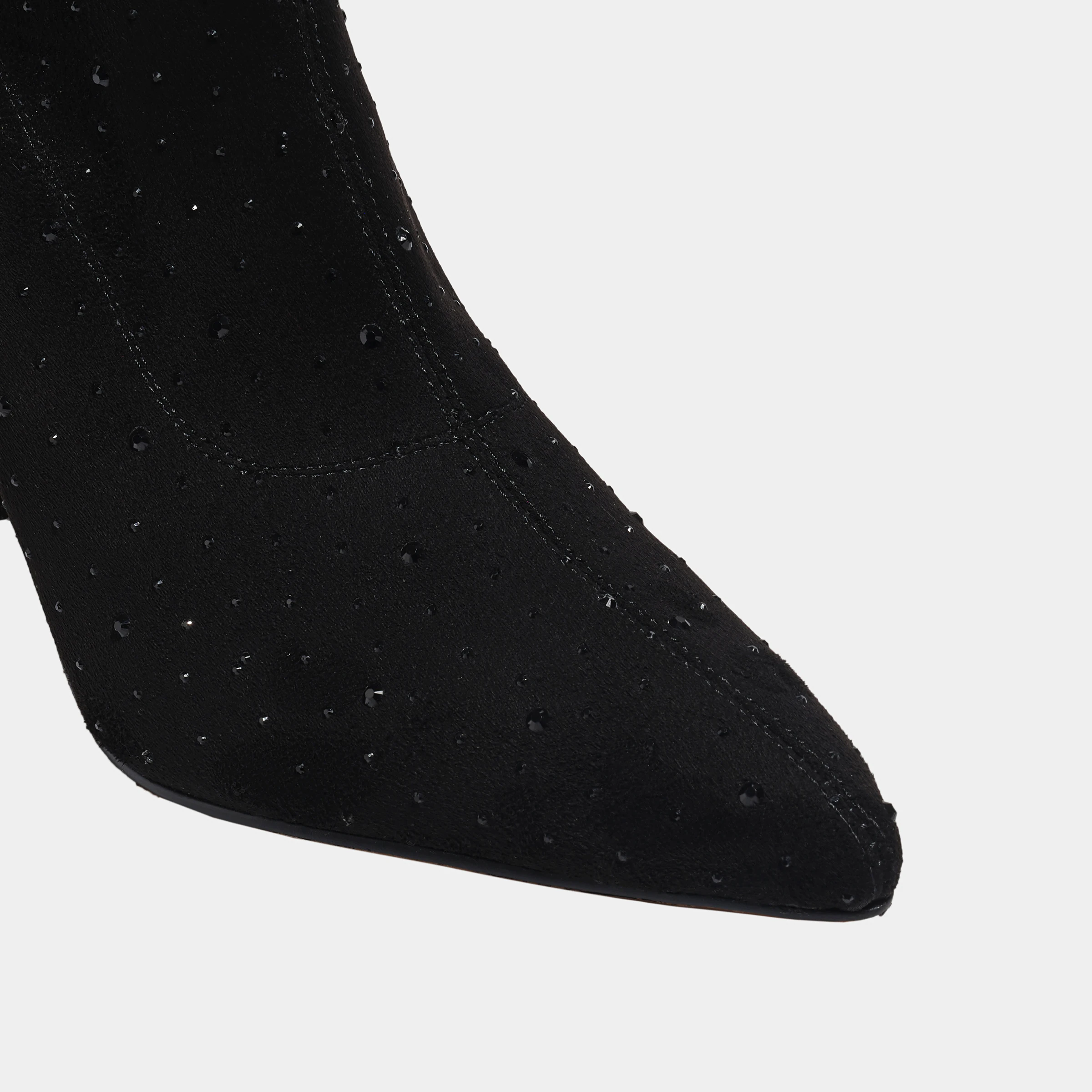 Black Stiletto Ankle Boots Rhinestone Embellishment Chic Stylish Zip Bootie Comfortable Pointed Design Classic Fashionable Work