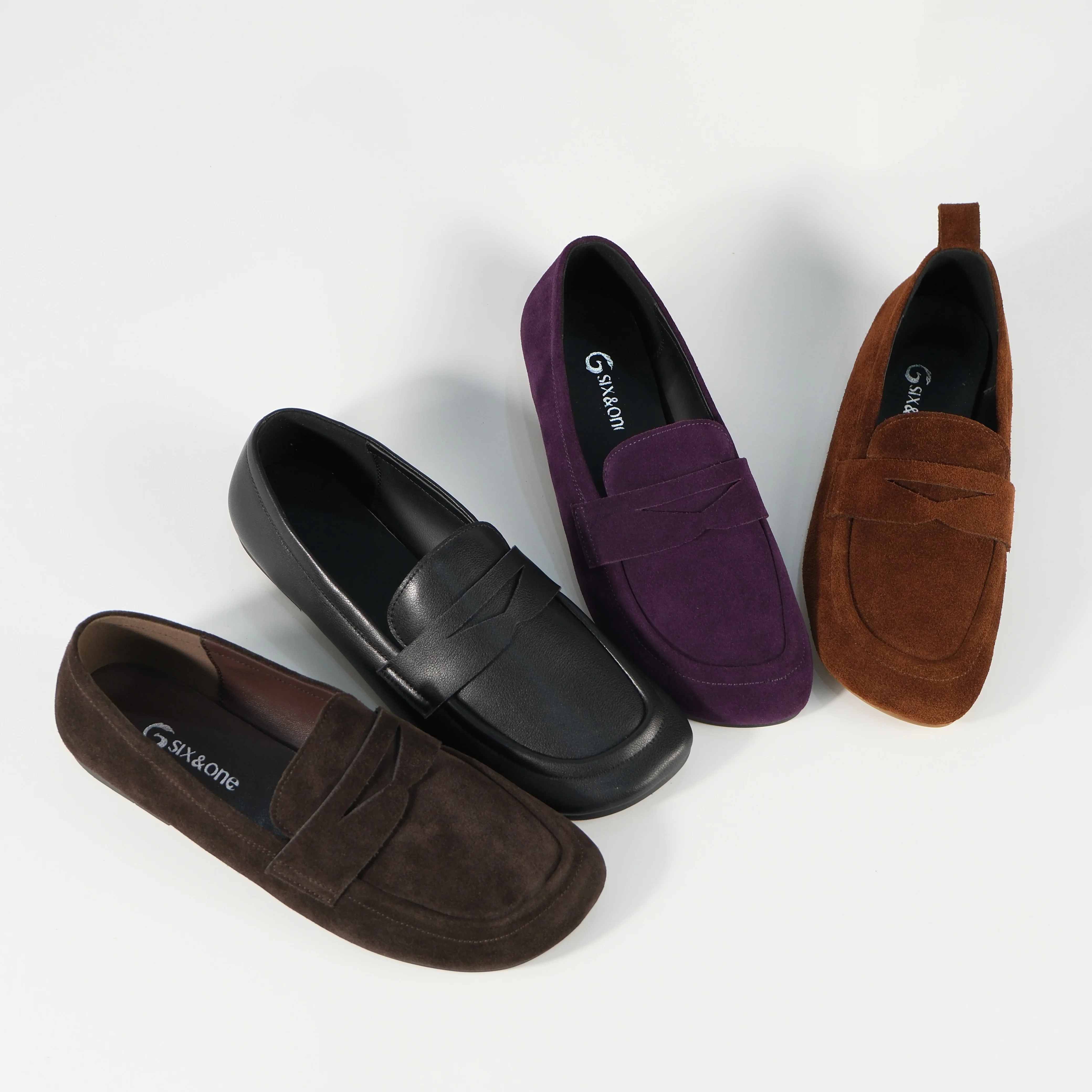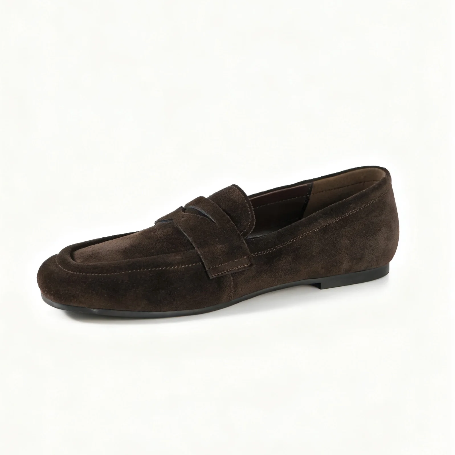 Women's Classic Brown Cow Suede Loafers Comfortable Stylish Slip-On Flats for Formal & Casual Occasions