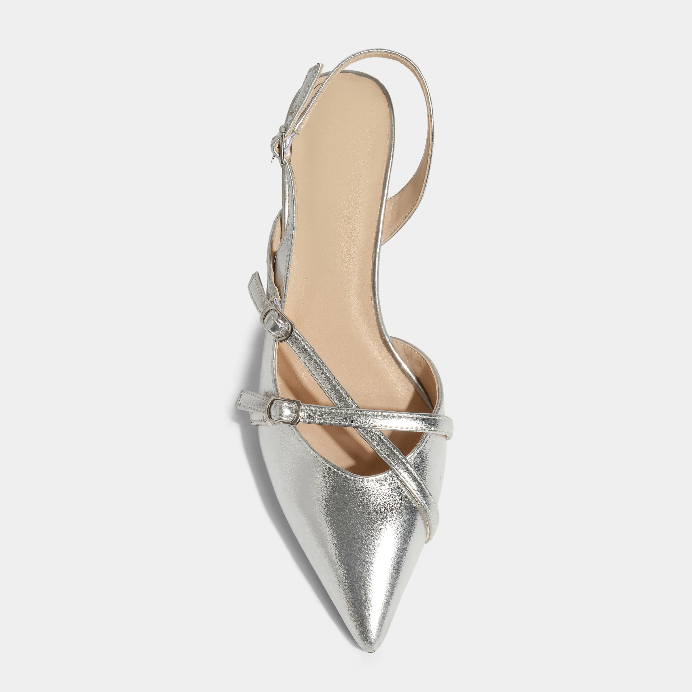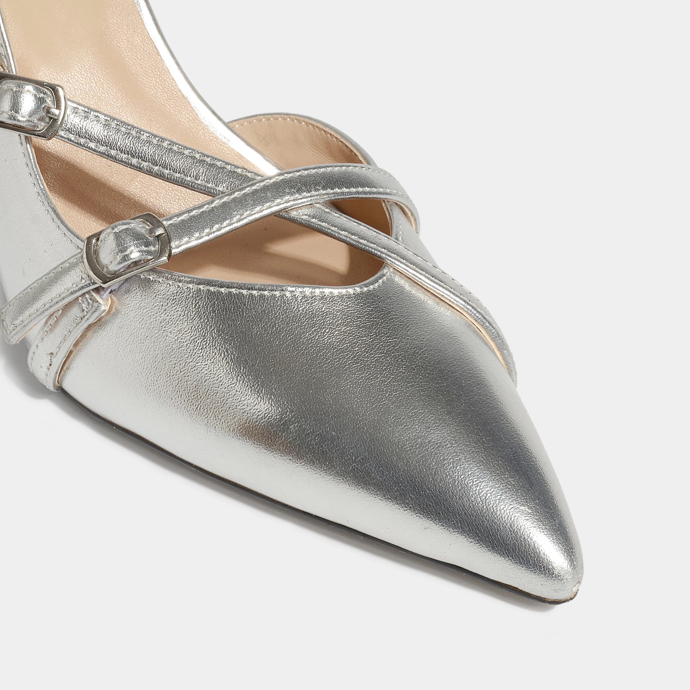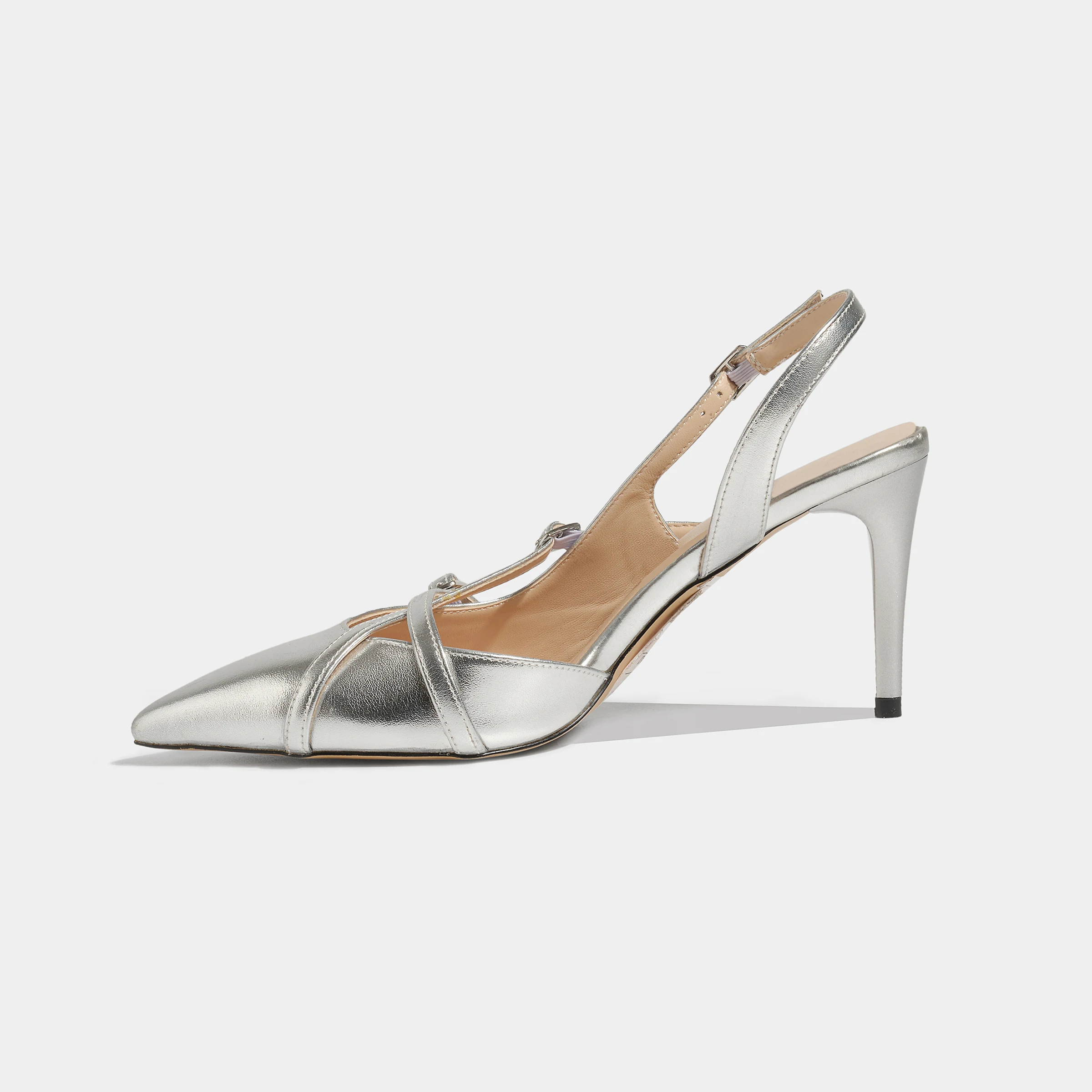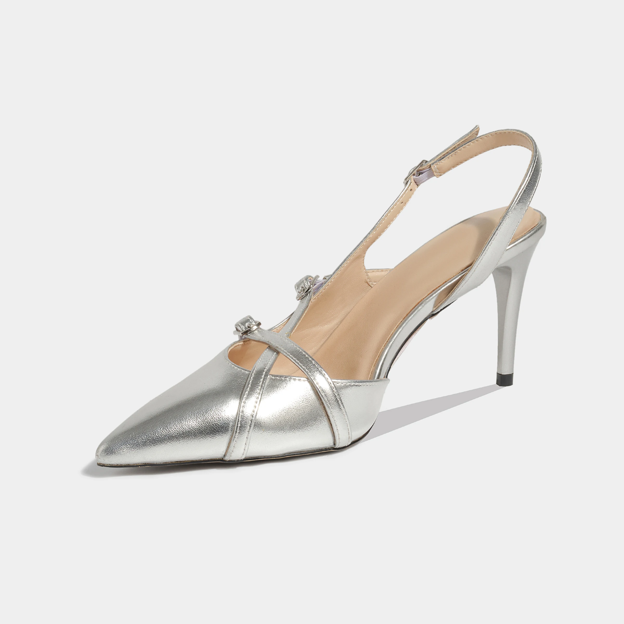 Hot Selling Metallic Silver Stiletto Slingback Pumps Comfortable Barefoot Soft Pointed-Toe Crisscross Buckle Summer Autumn