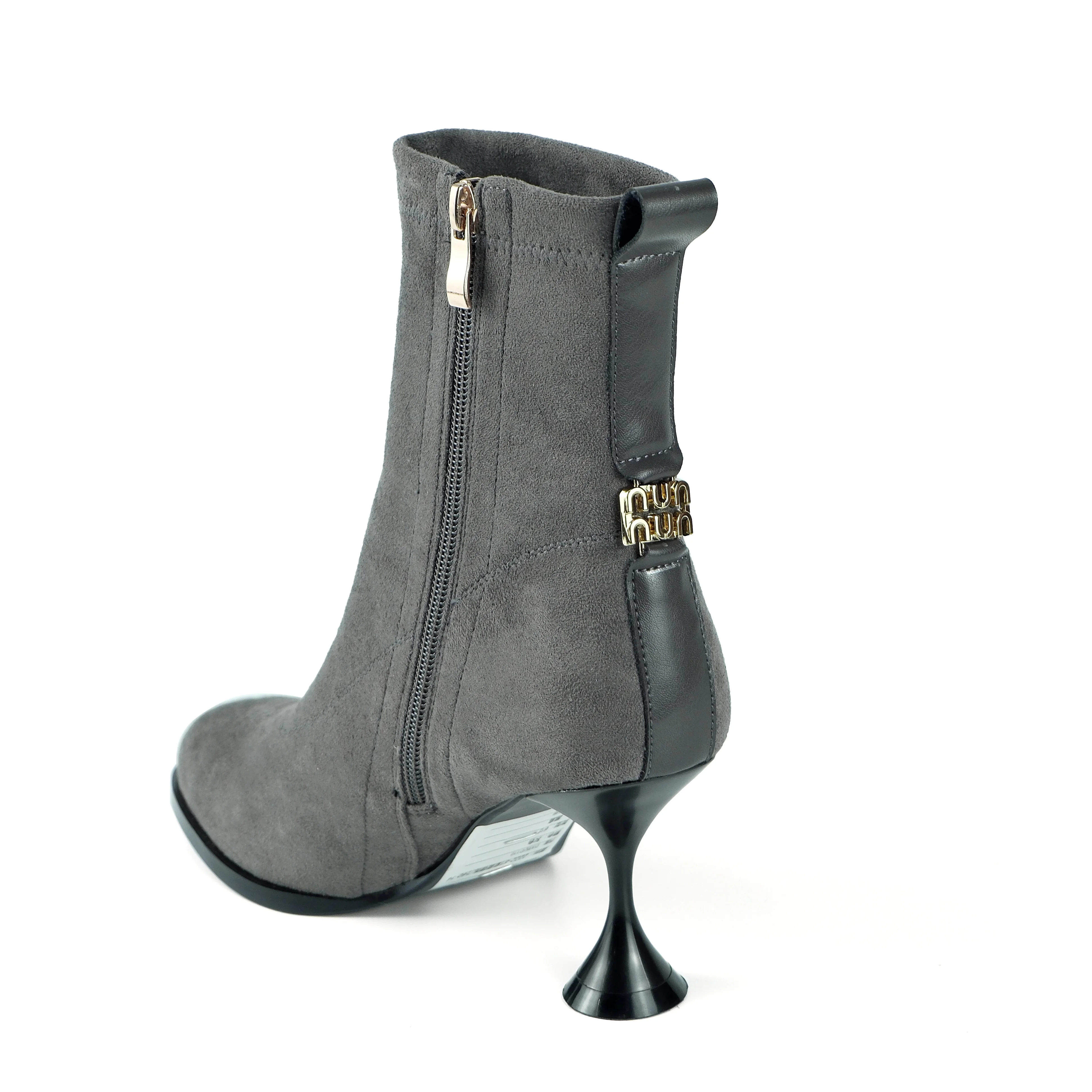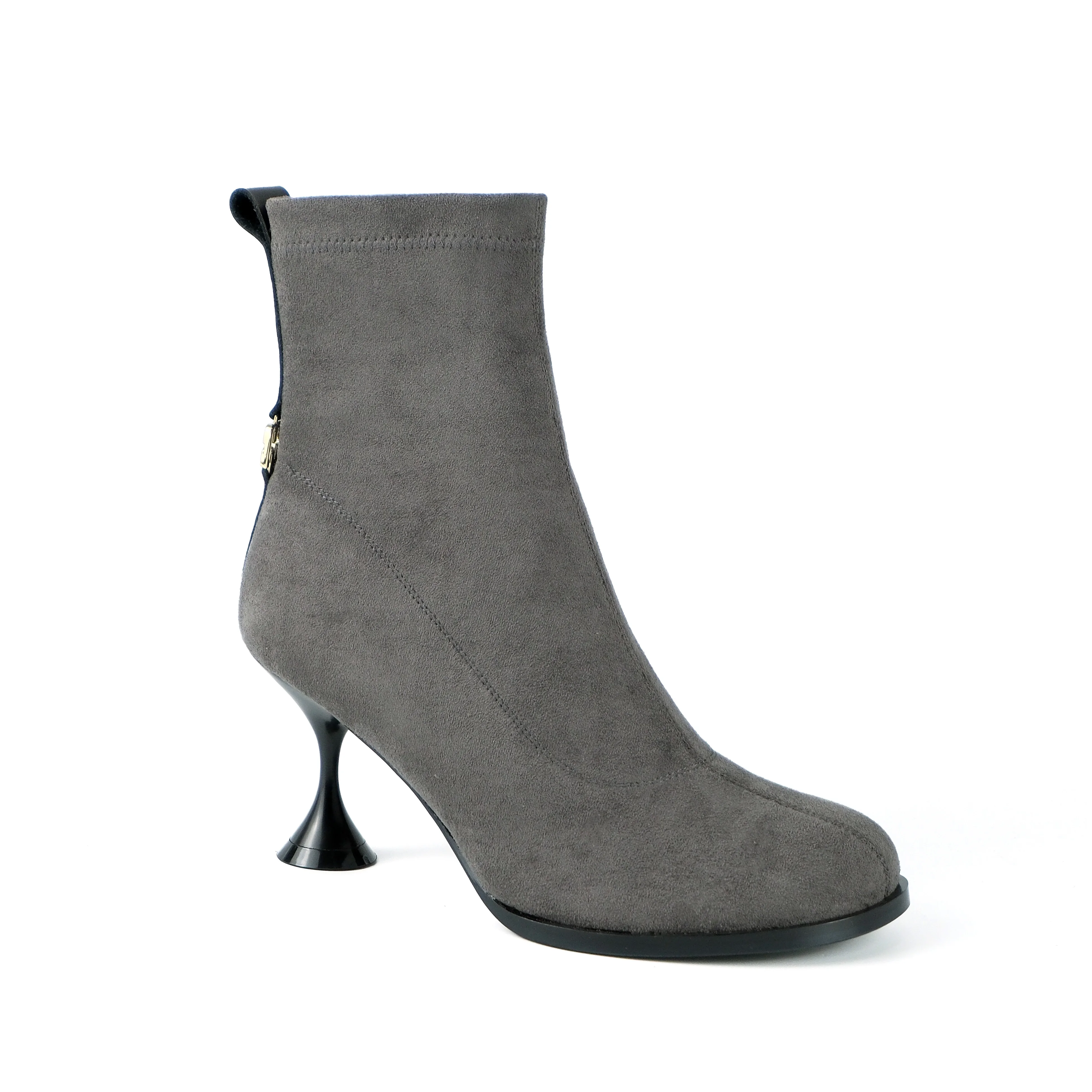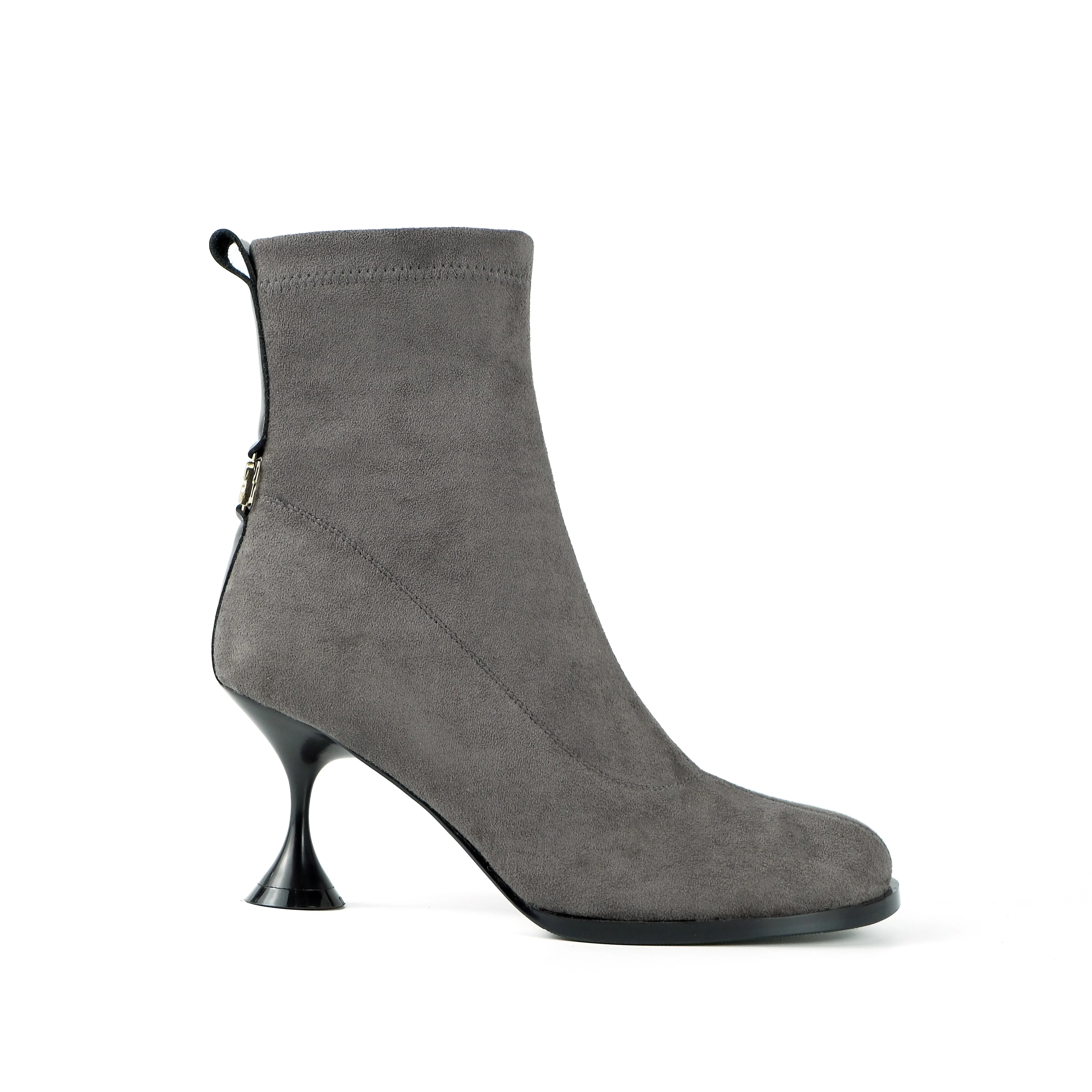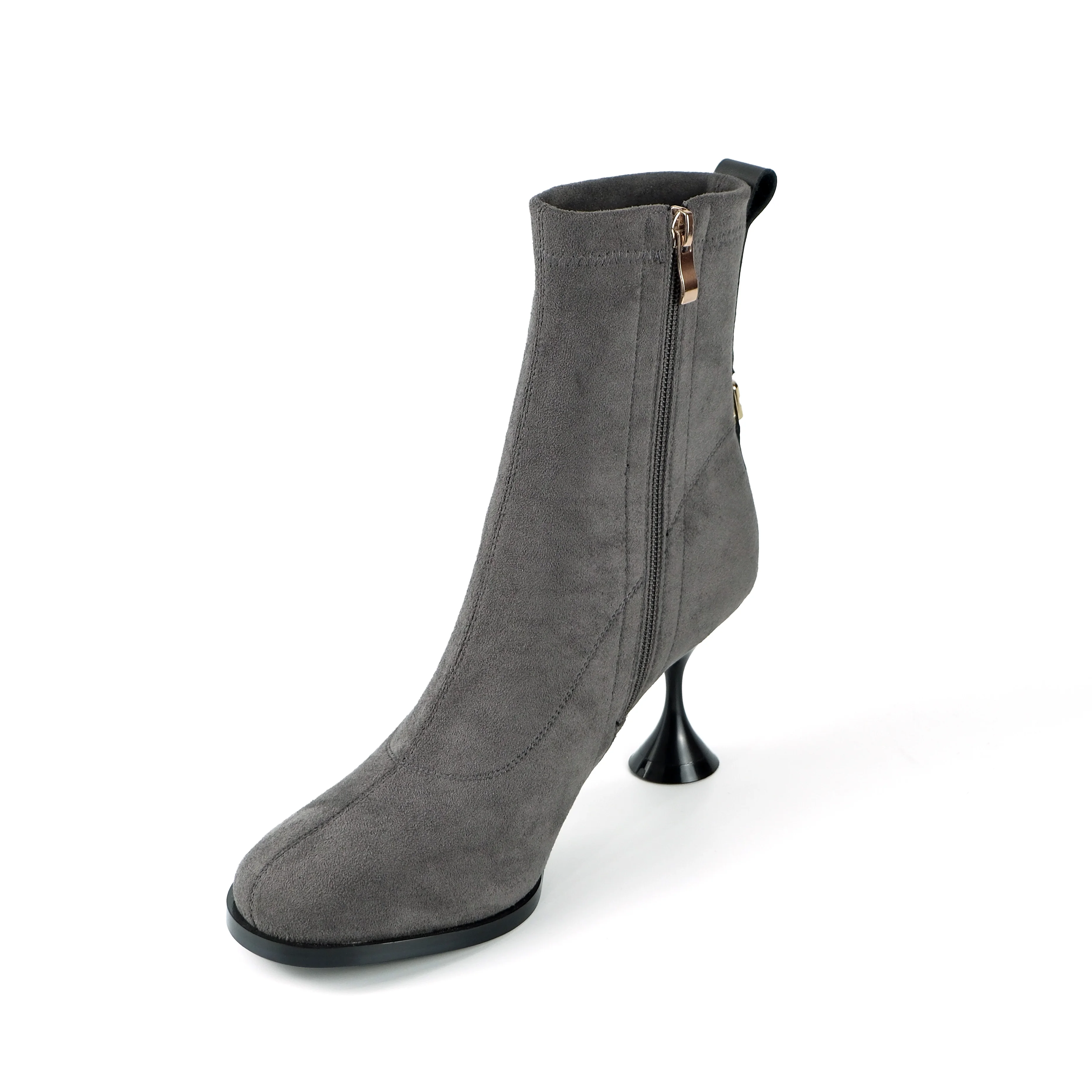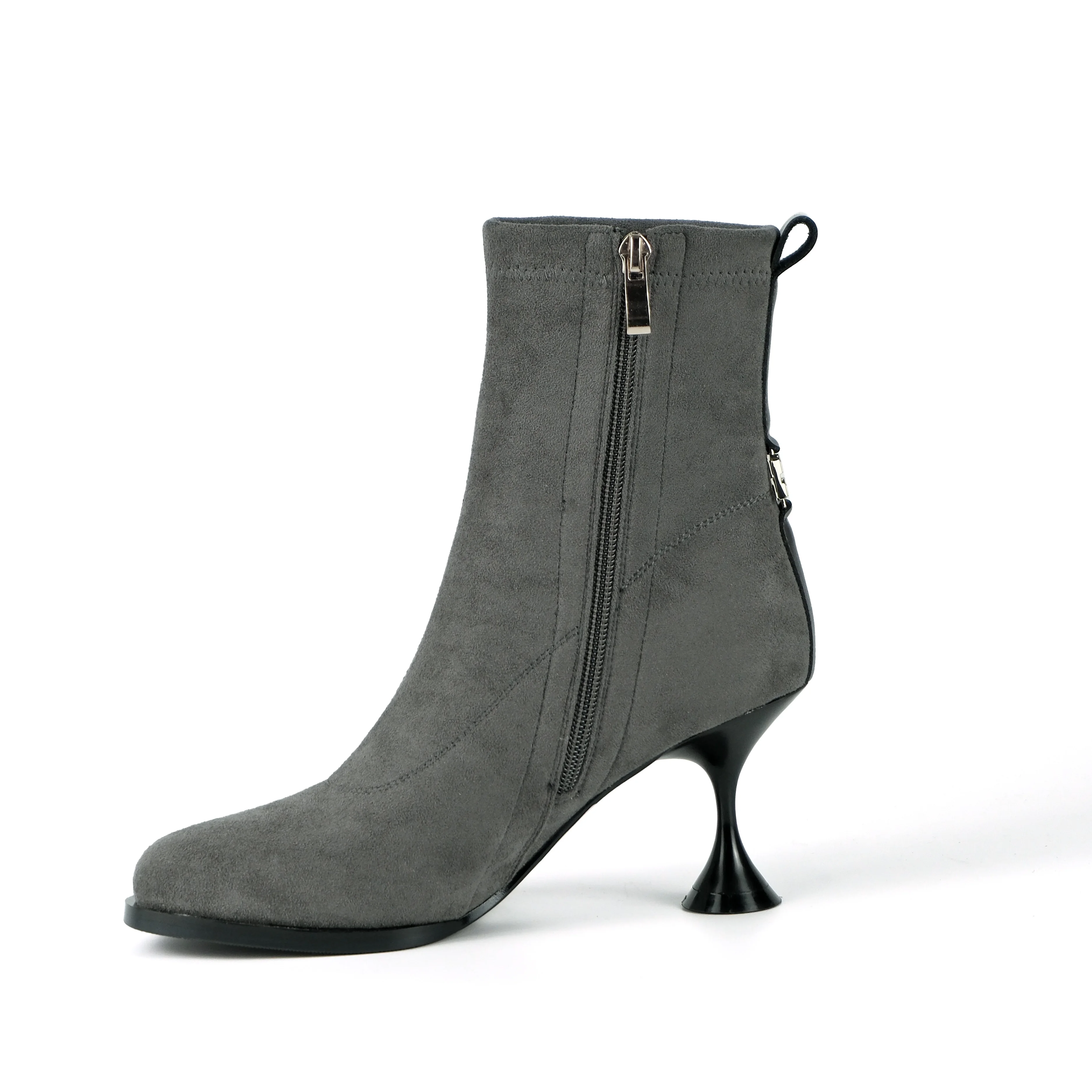 Women's Gray Suede Ankle Boots - Zipper Detail Stiletto Heel Slim-Fit Casual Dress Footwear 2026 Autumn