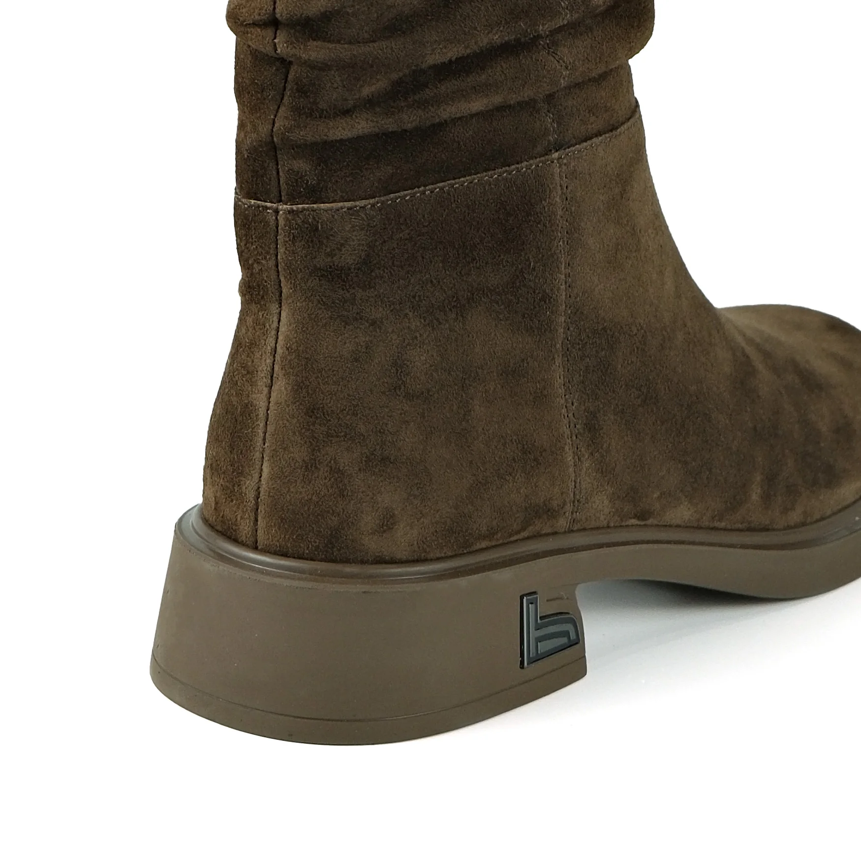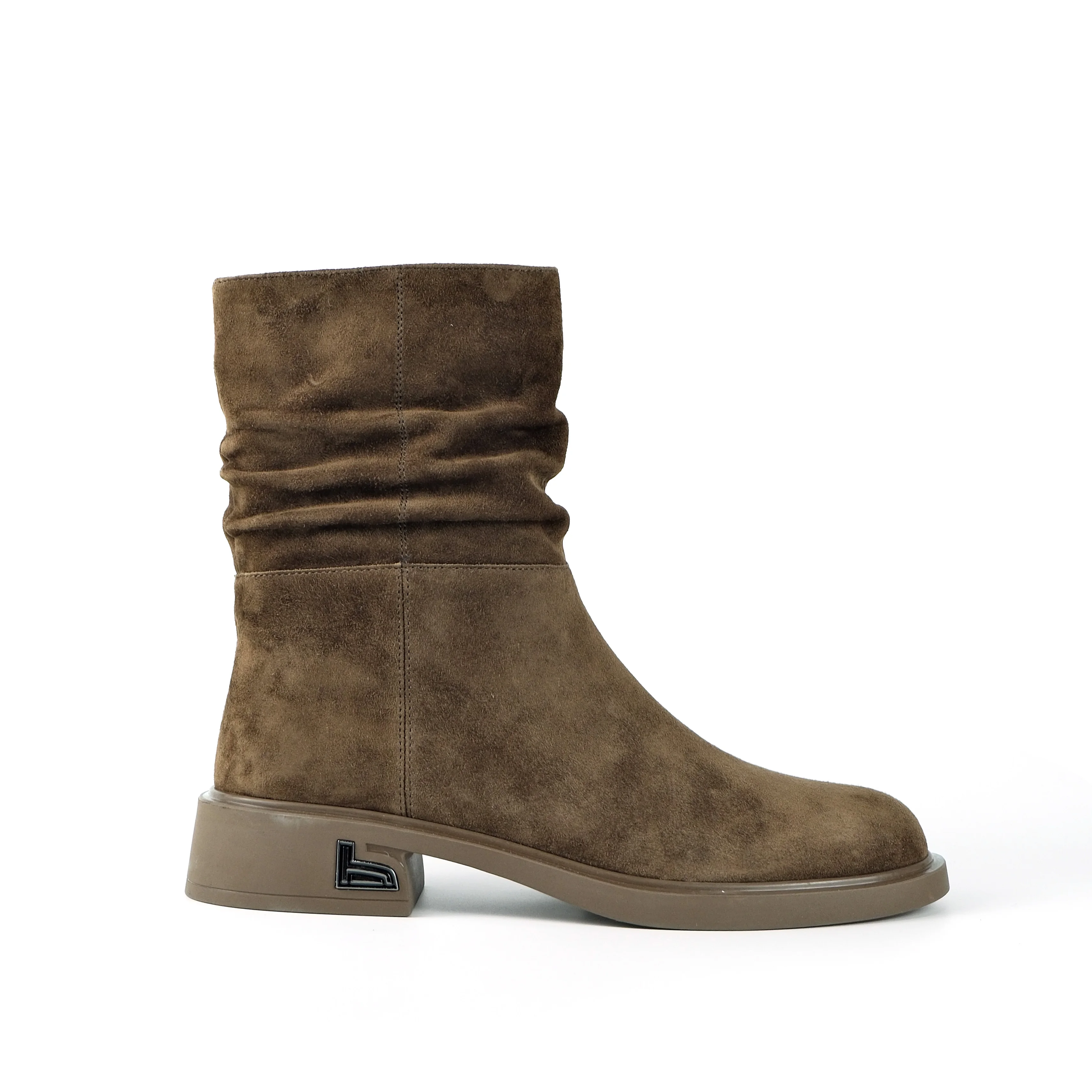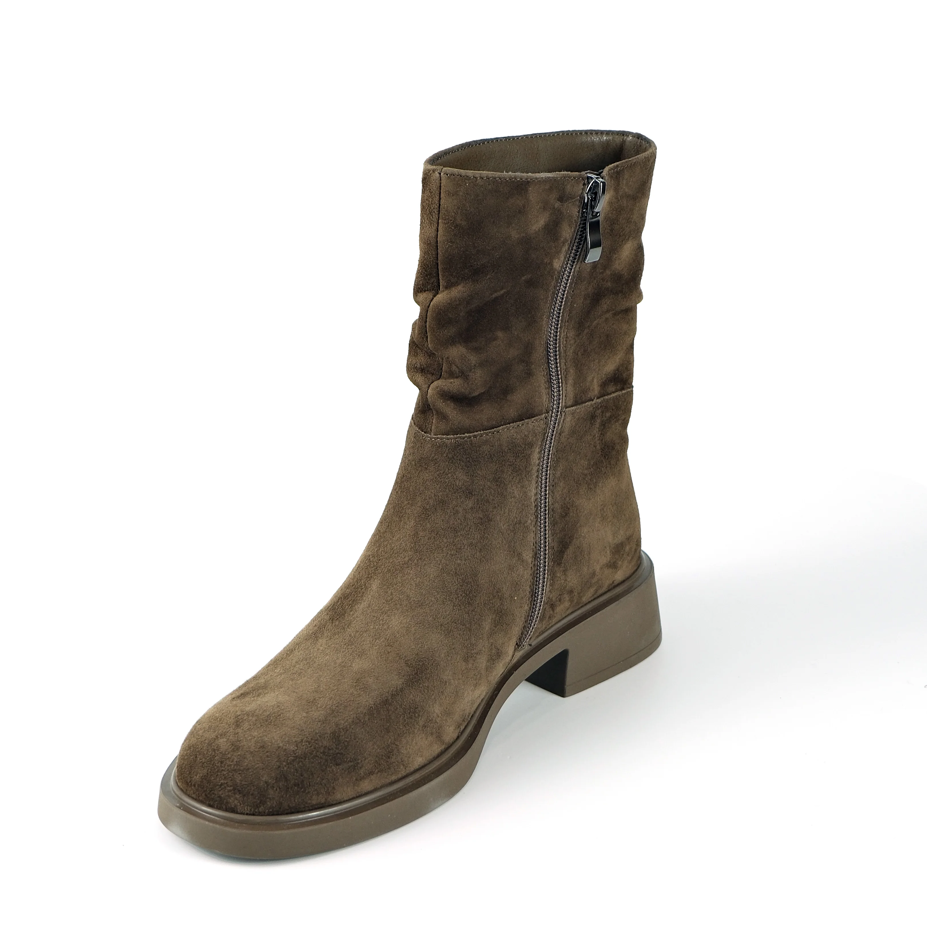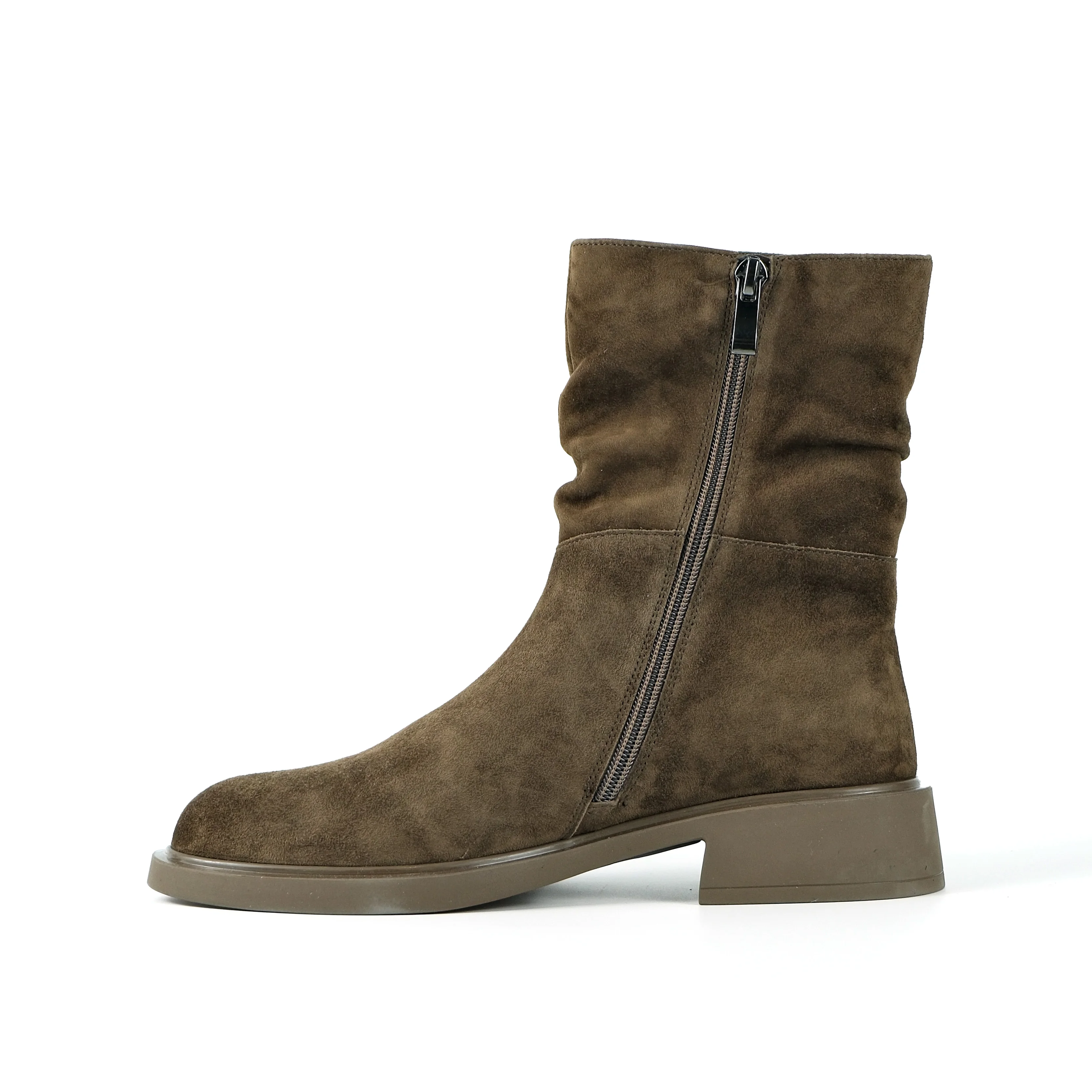 Women's Cow Suede Slouchy Ankle Boots-Zip Closure Fashion Low Block Heel Elastic Ruched Design Comfortable Daily Casual Footwear