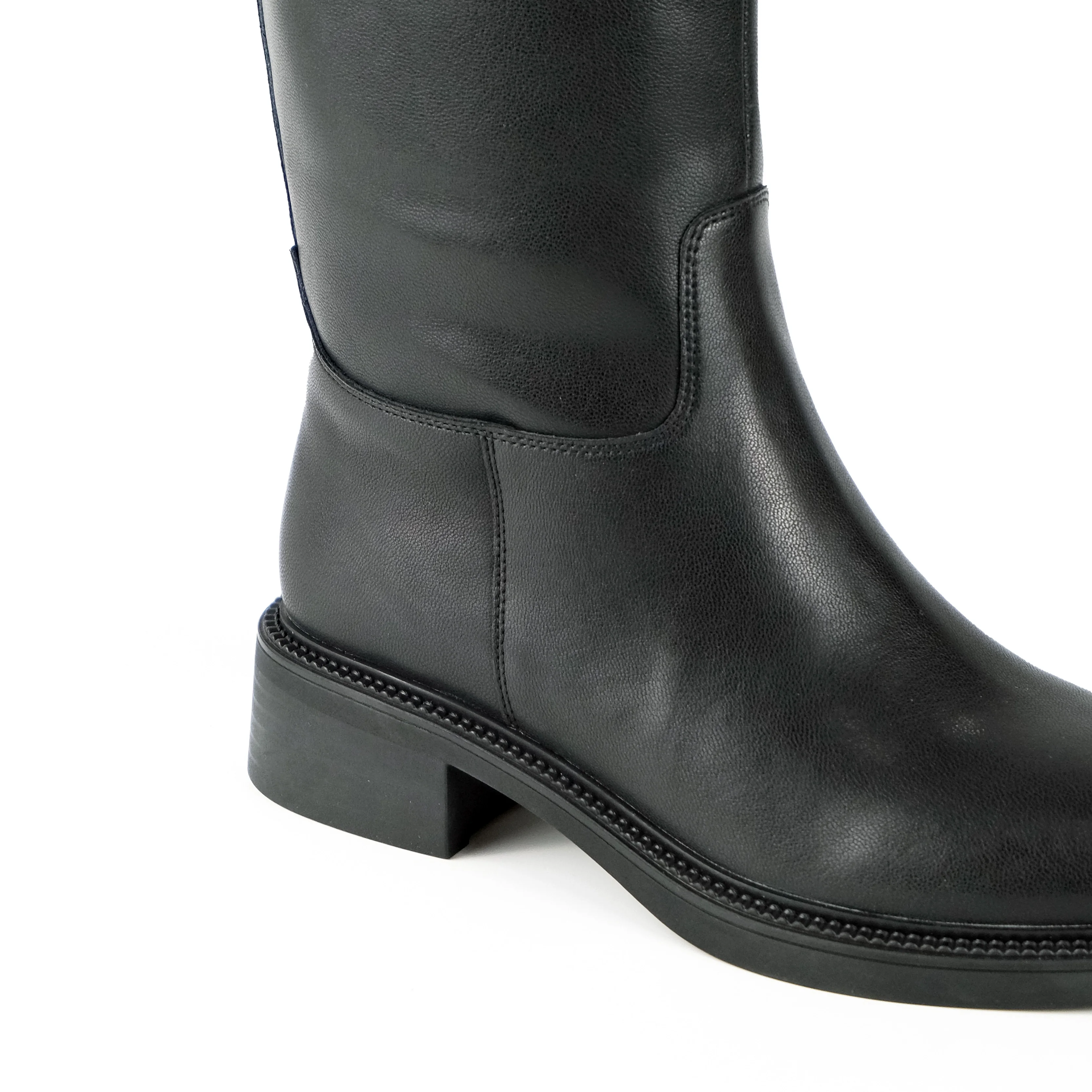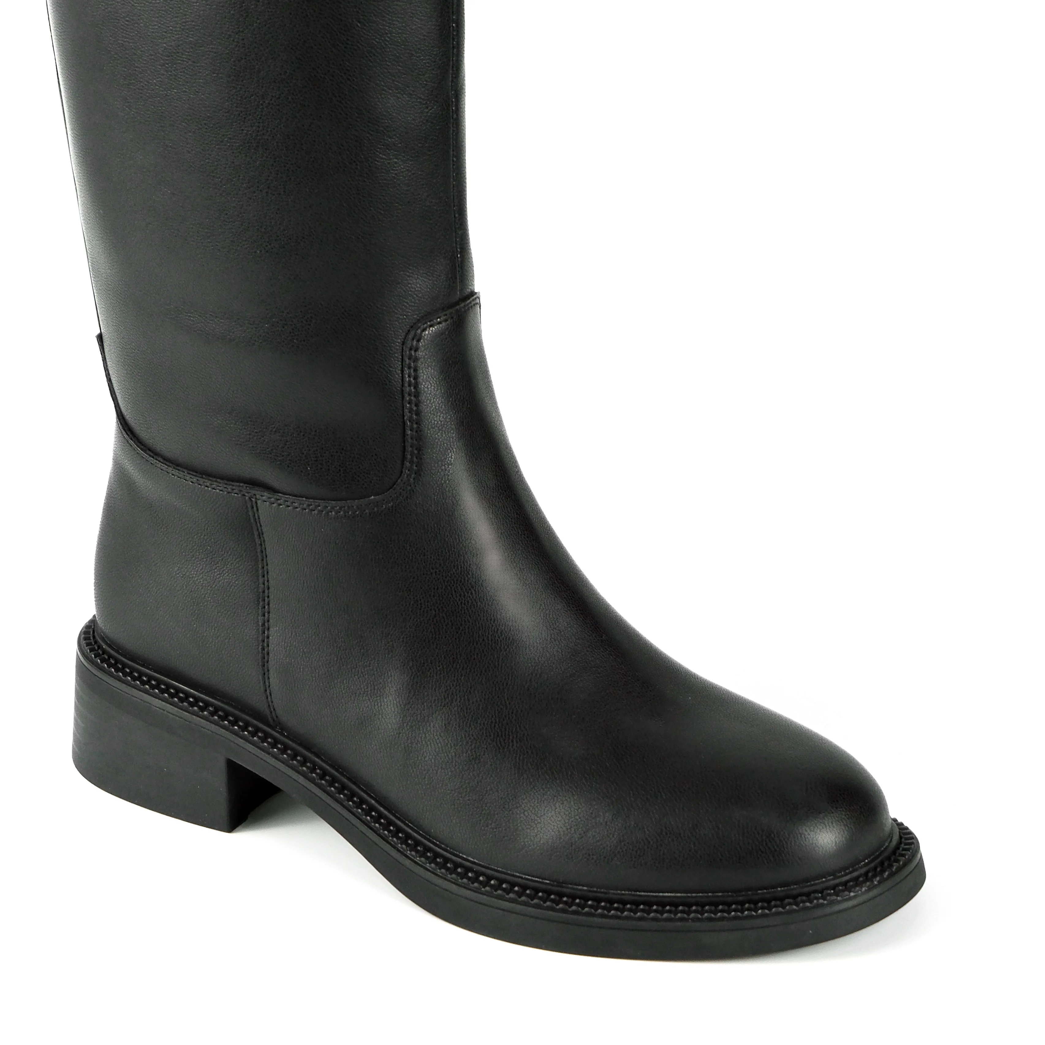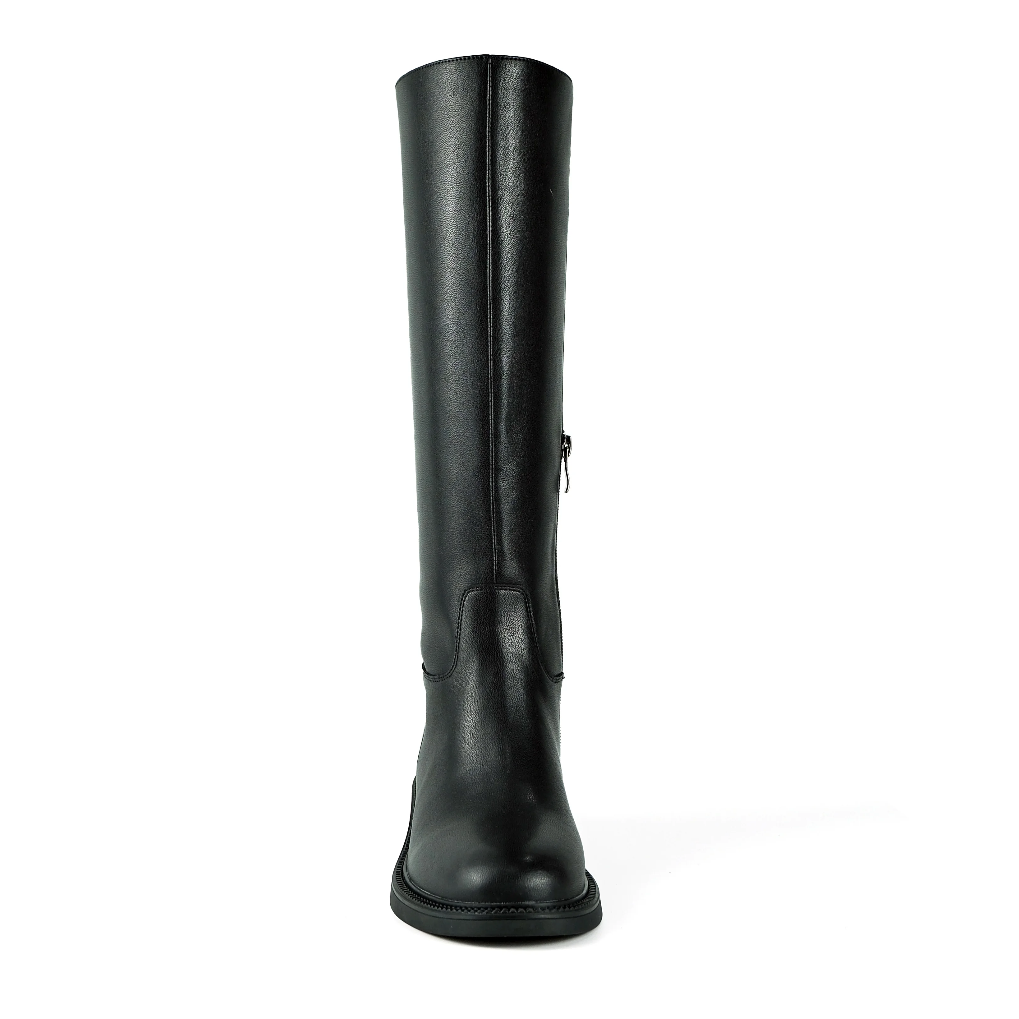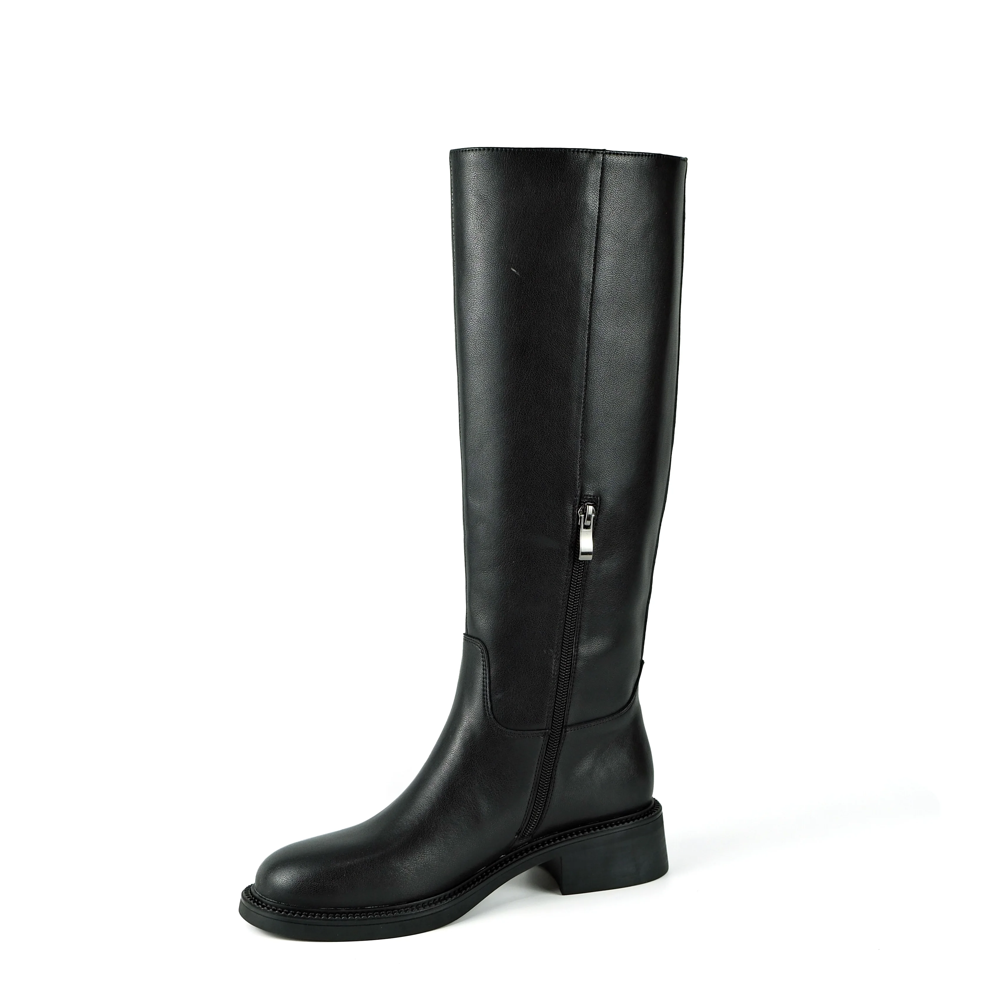 Hot Sale Black Action Leather Knee-High Riding Boots - Round Toe Block Heel Classic Boots for Winter