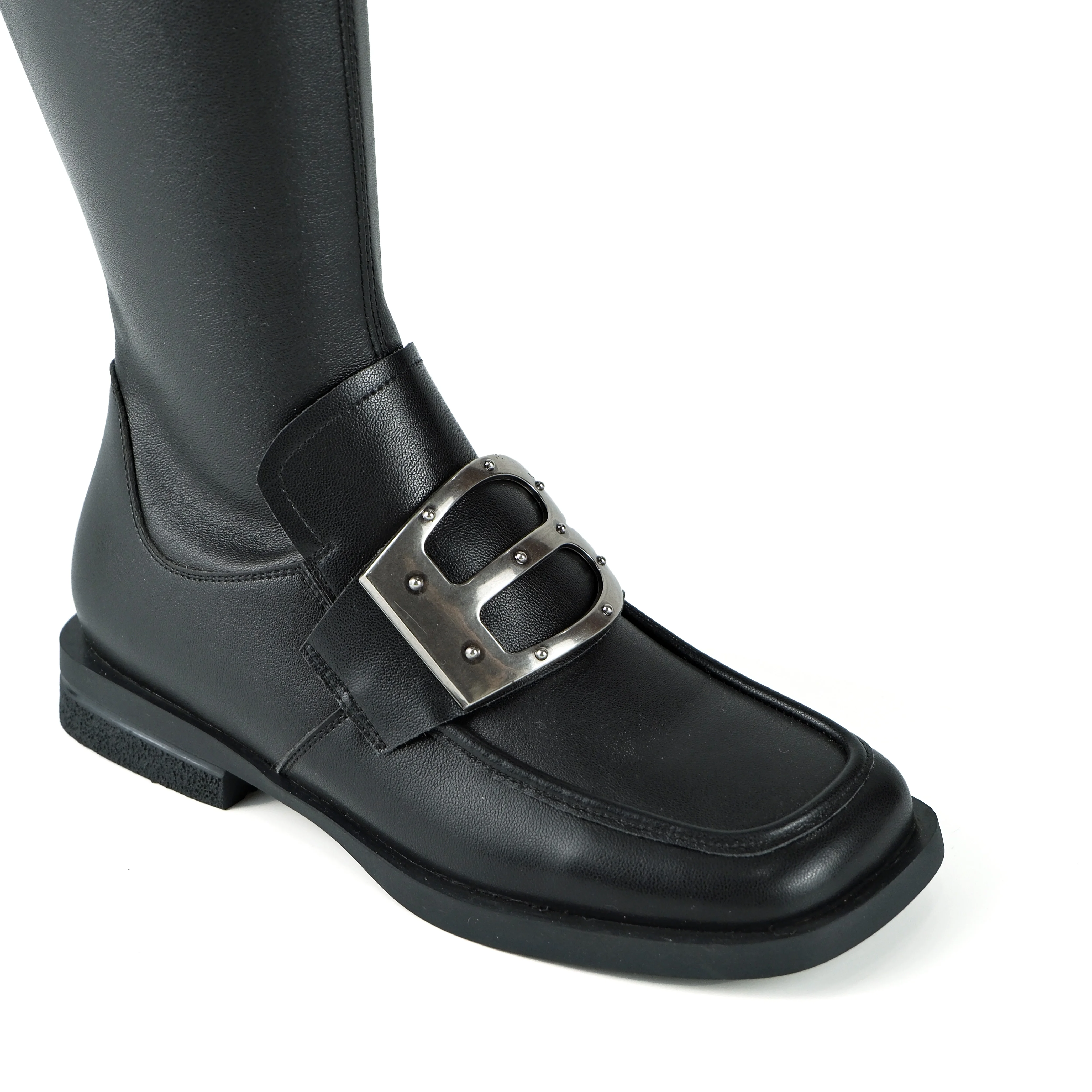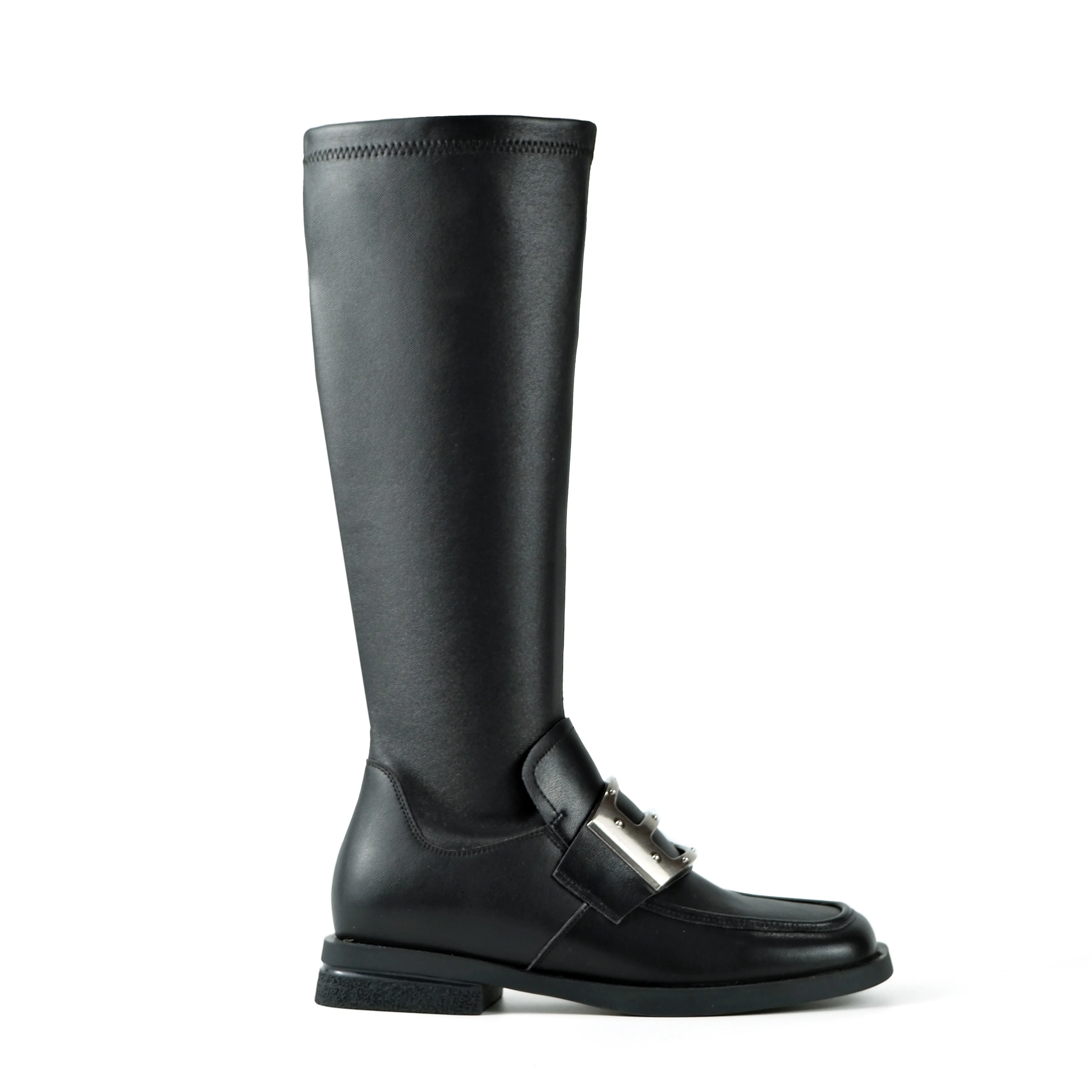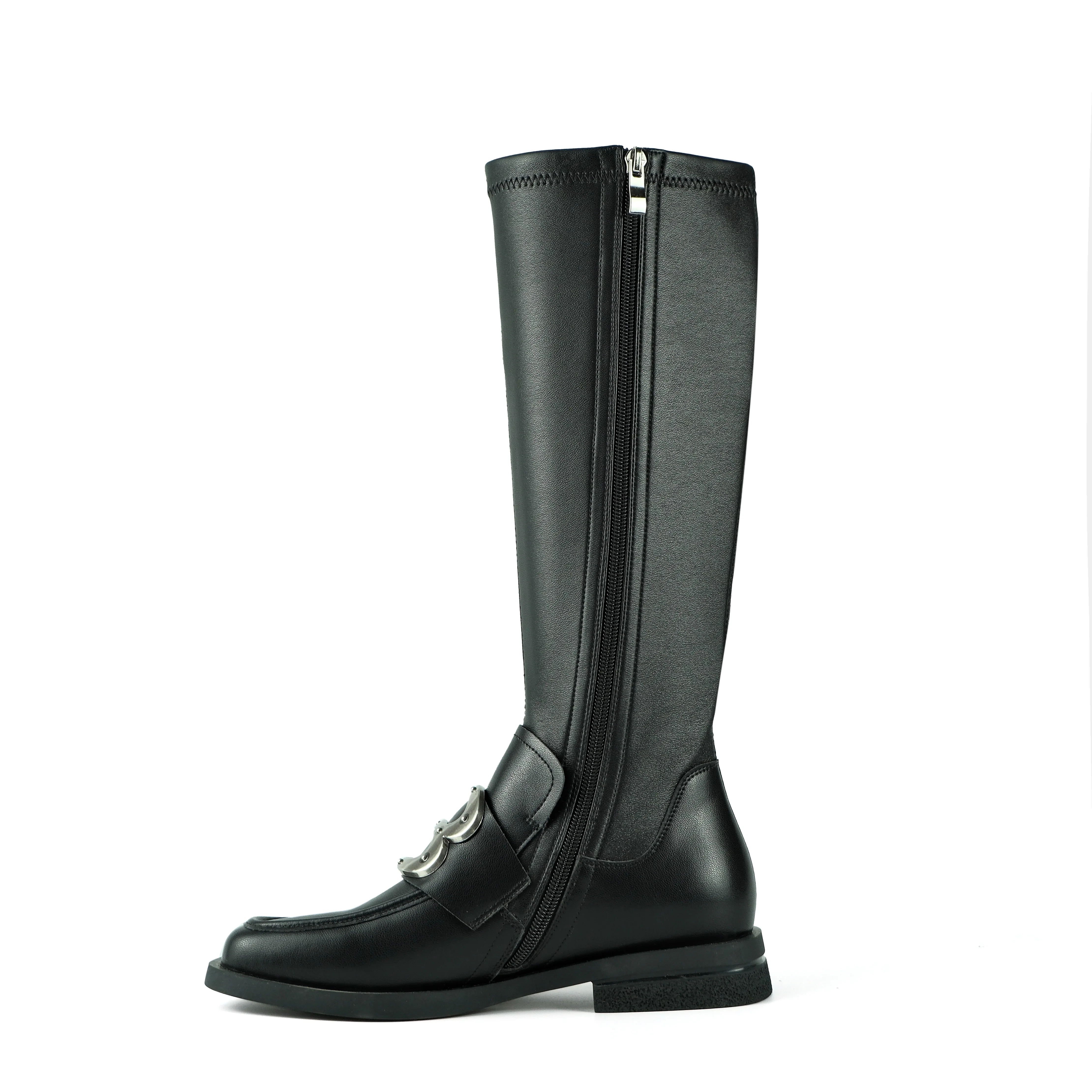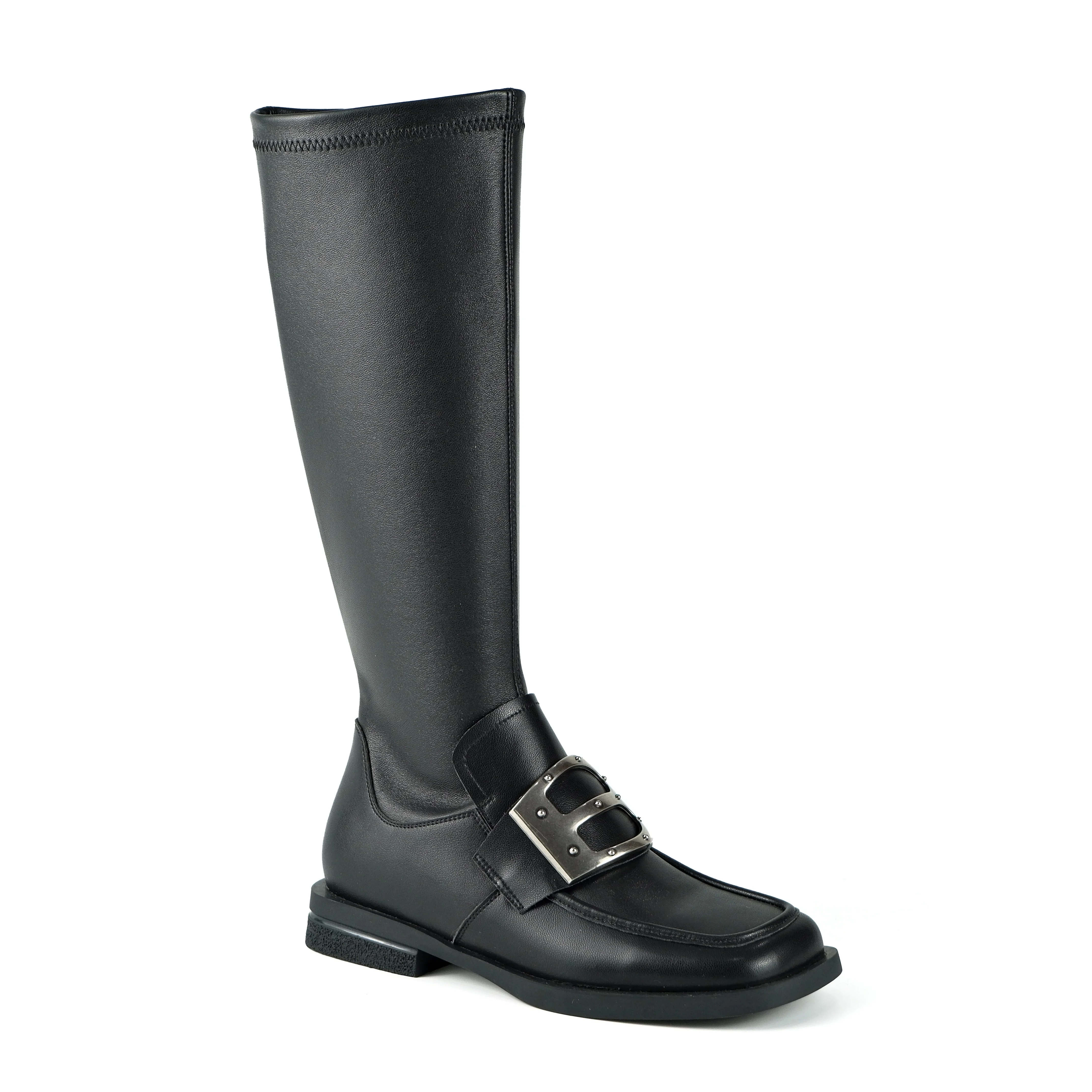 Women's Black Action Leather Western Knee-High Boots-Buckle Detail Flat Sole Comfort Casual Daily Footwear Winter Autumn