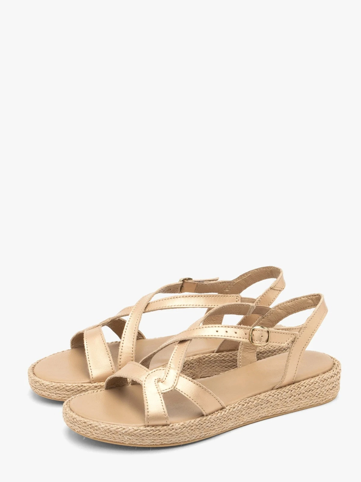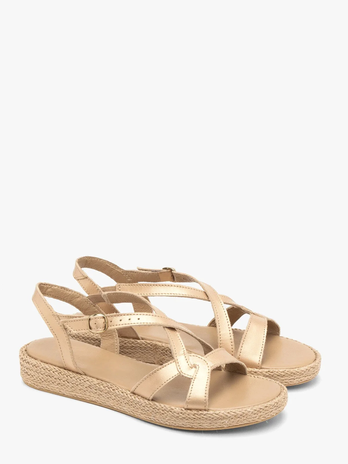 Factory Direct Women Gold Comfortable Sandals Strappy Flat Custom Logo Summer Beach Wholesale