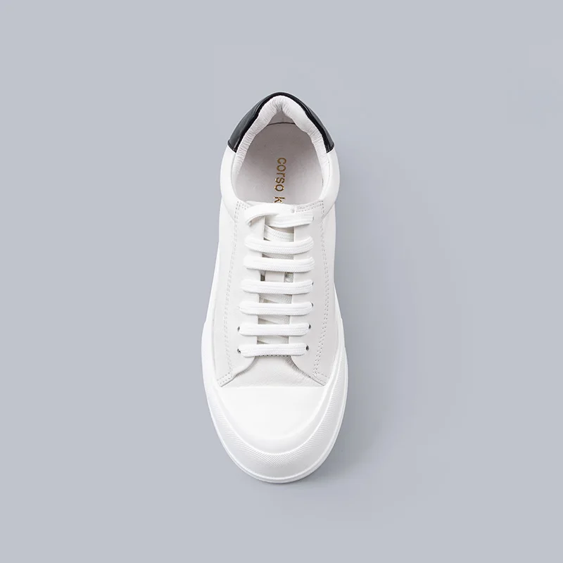 Men White Leather Platform Sneakers Black Heel Accent Fashion Casual Shoes Comfort Walking Sport Lifestyle Wholesale