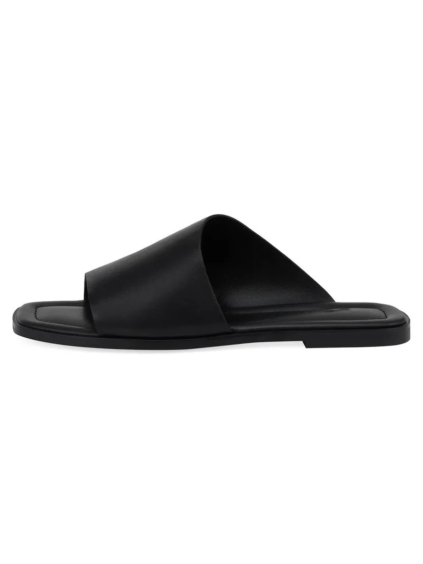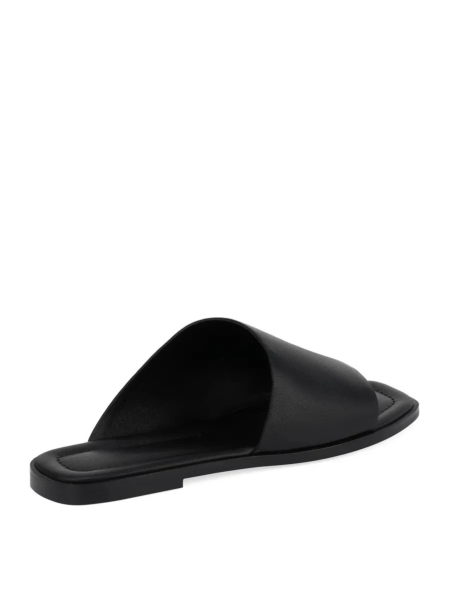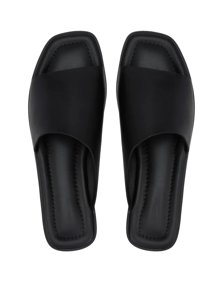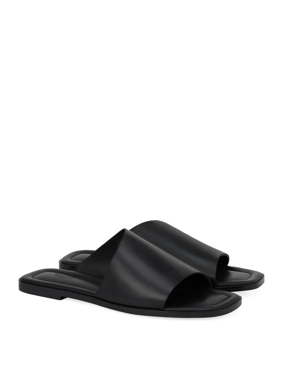 Women Black Leather Square Toe Slide Sandals Luxury Summer Beach Resort Casual Comfort Walking Shoes Wholesale