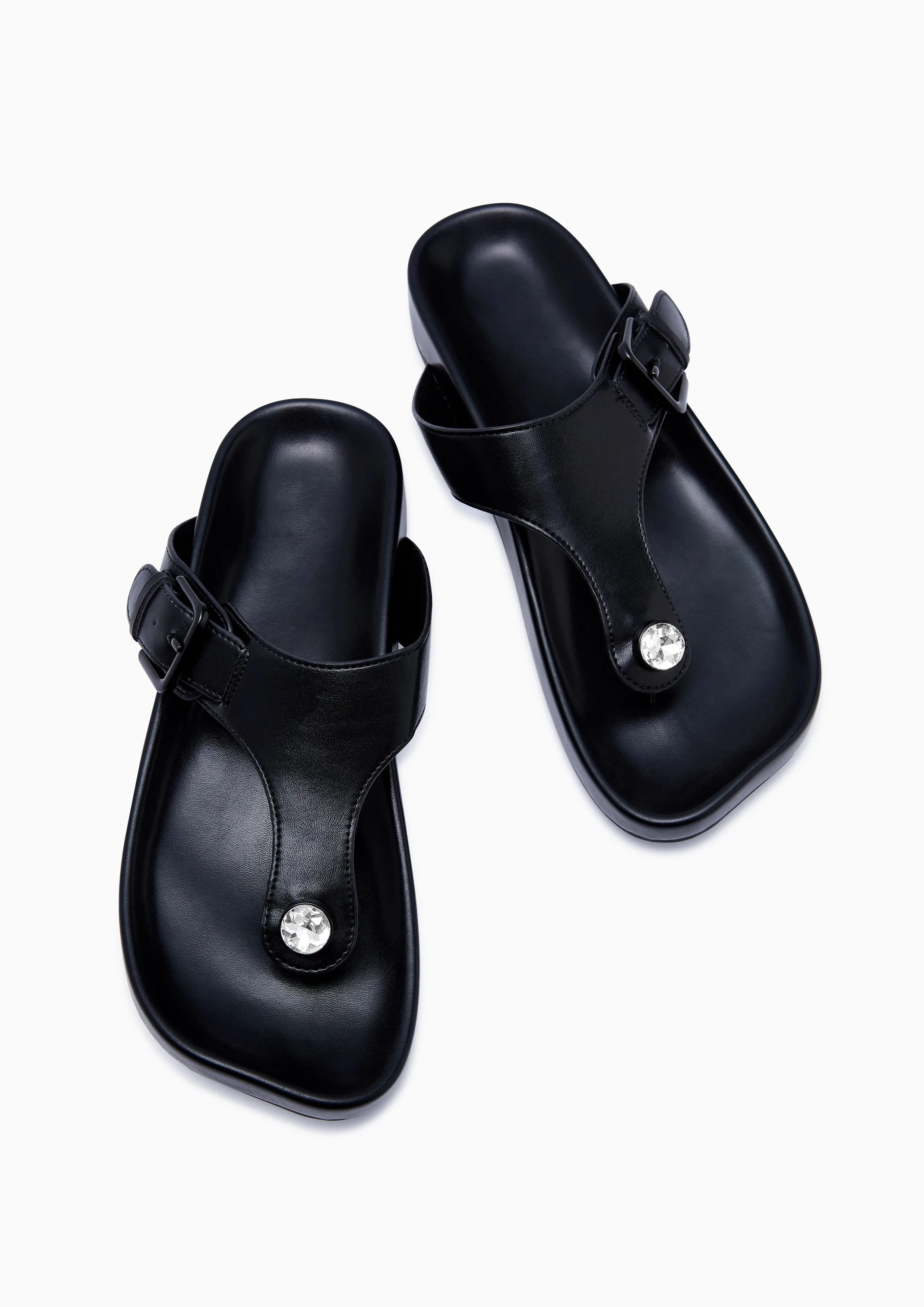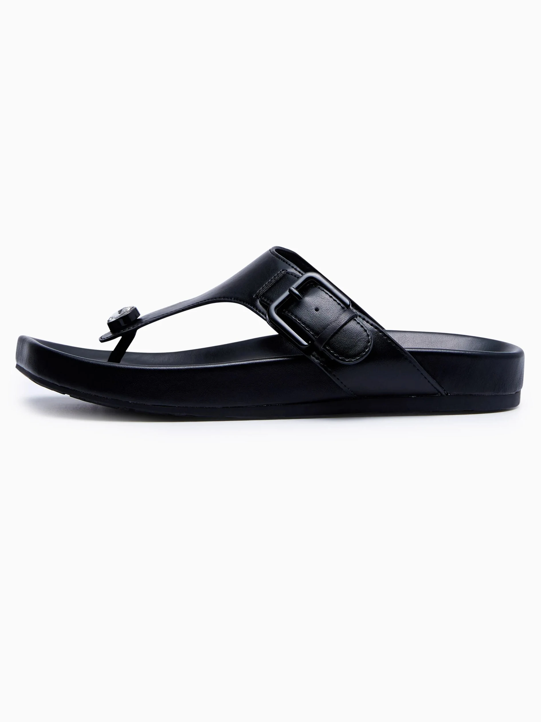 Men Black Leather Thong Sandals Buckle Accent Platform Sole Summer Beach Casual Comfort Walking Outdoor Shoes Wholesale