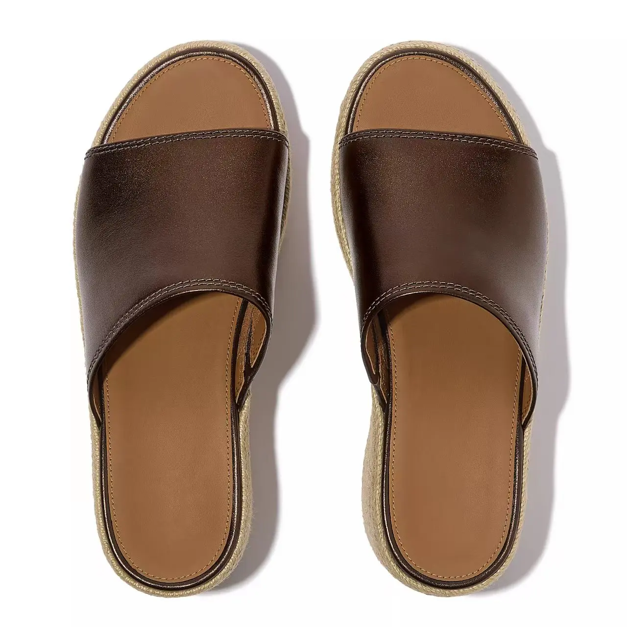 Women Brown Metallic Leather Wedge Mules Espadrille Platform Luxury Summer Resort Comfort Casual Walking Shoes Wholesale