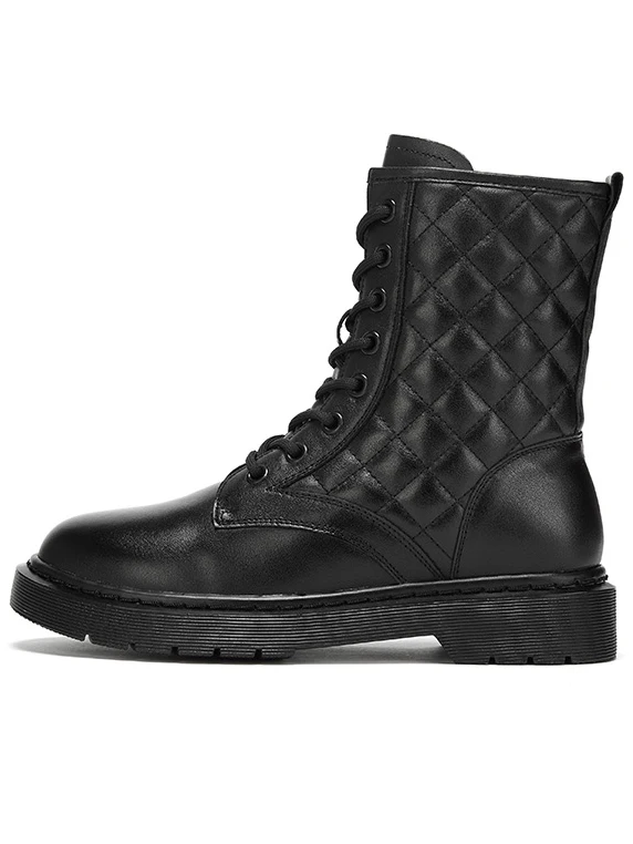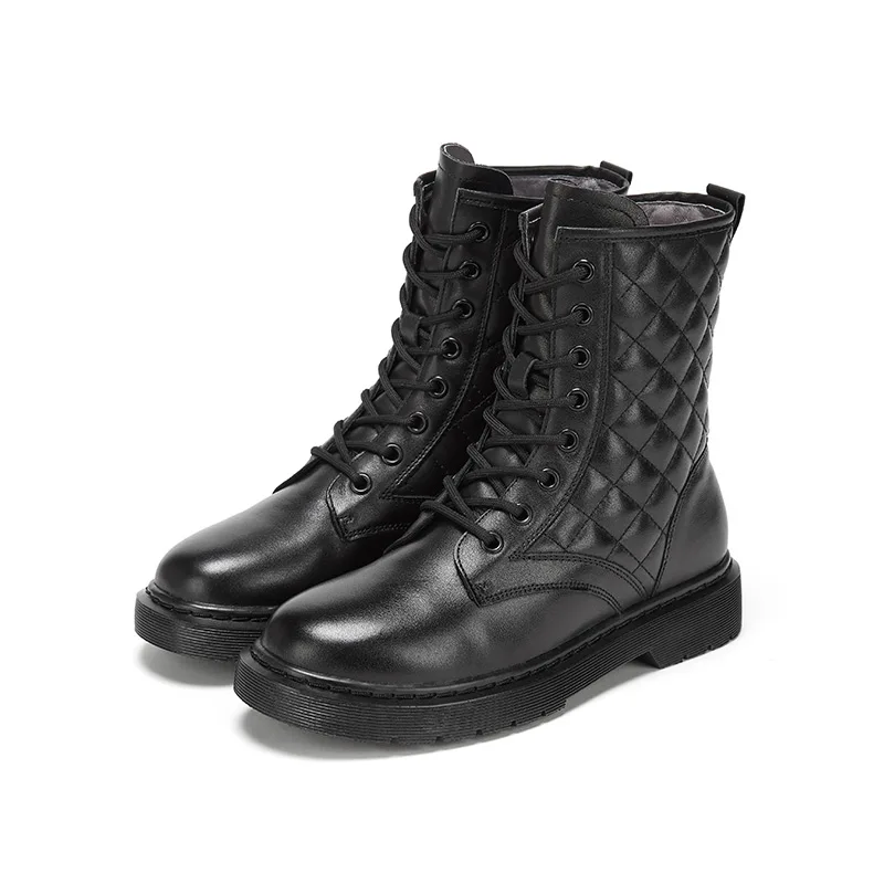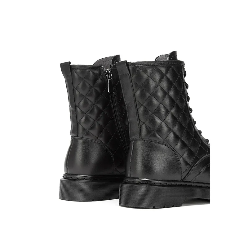 New Arrival Women Black Quilted Leather Lug Sole Luxury Autumn Winter Fashion Comfort Outdoor Walking Shoes Wholesale