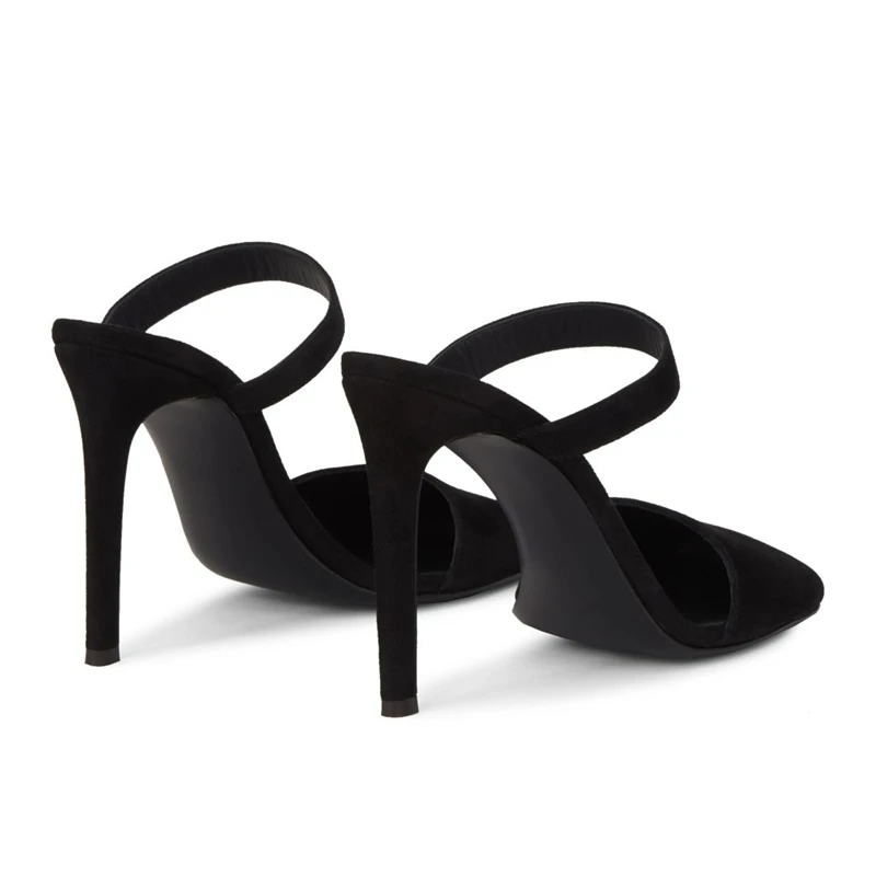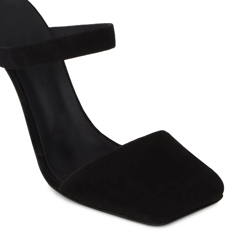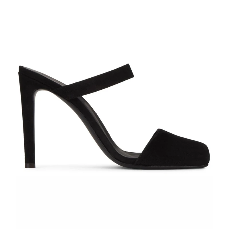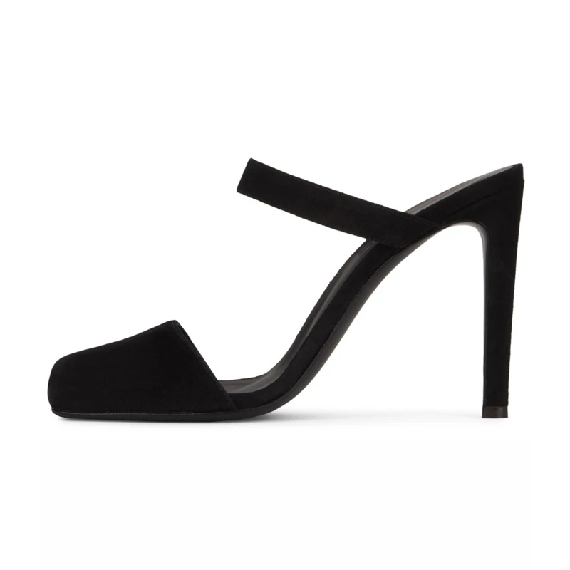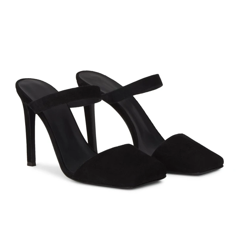 Women Black Suede Square Toe Mule Sandals Stiletto Heel Luxury Evening Party Wedding Dress Shoes Comfort Wholesale
