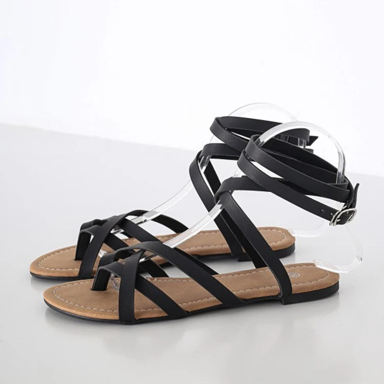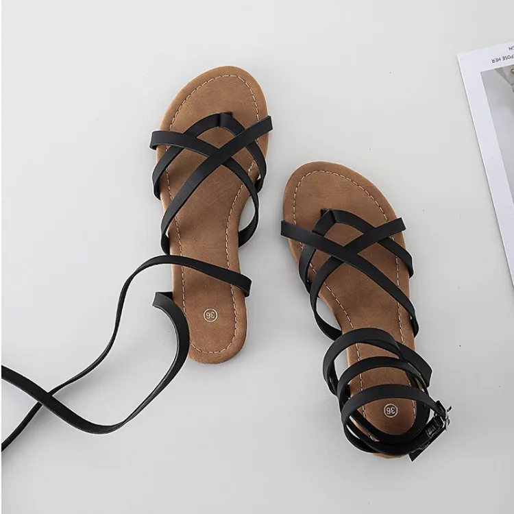 Women Tan Leather Gladiator Style Ankle Wrap Flat Sandals Luxury Summer Beach Resort Casual Comfort Walking Shoes Wholesale