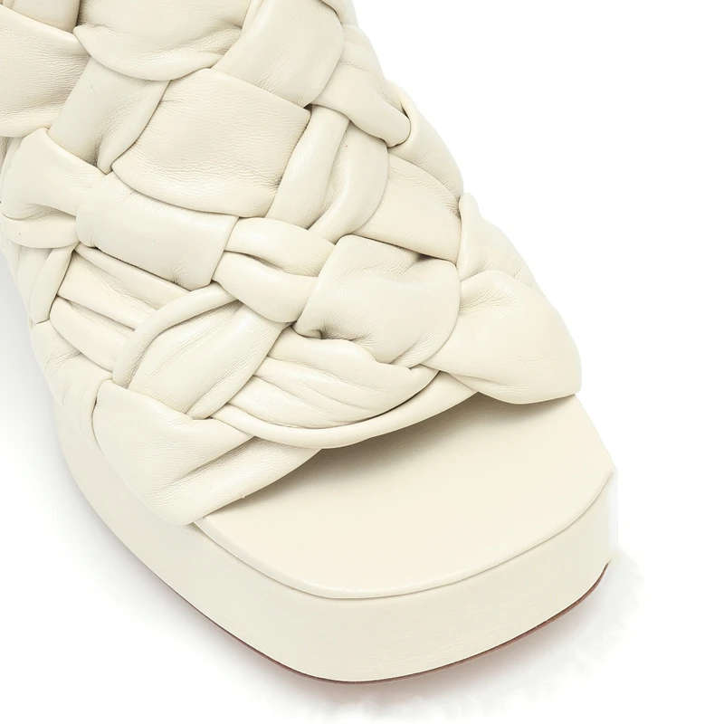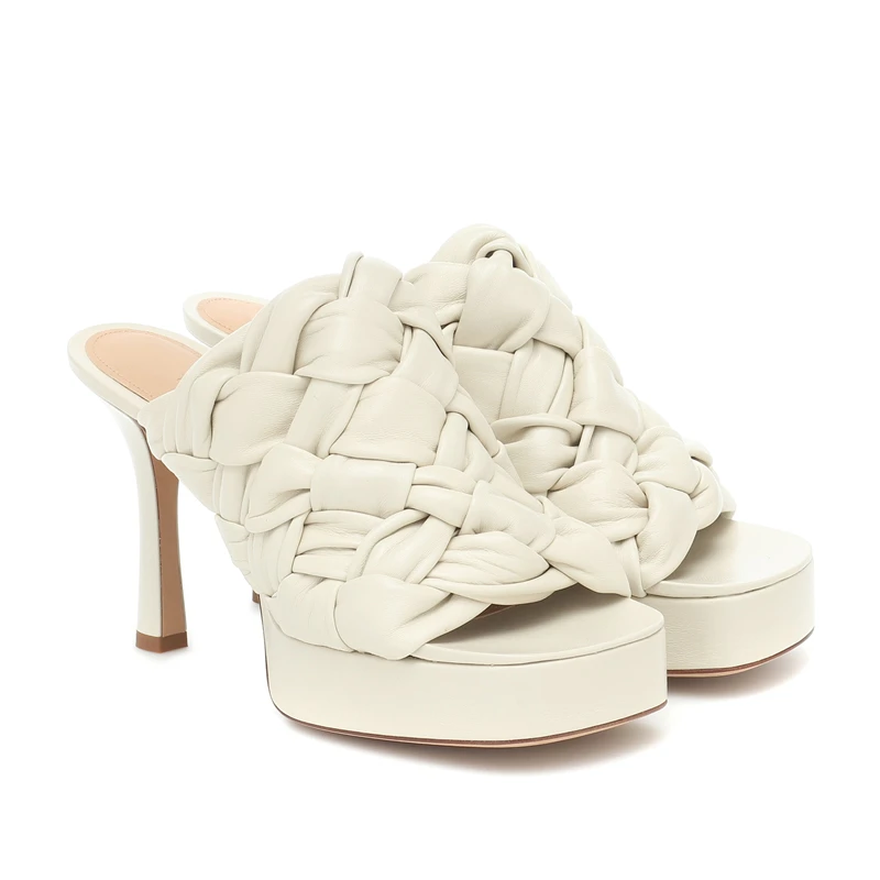 Women Cream Braided Leather Platform Mule Sandals Stiletto Heel Open Toe Luxury Summer Beach Resort Daily Date Comfort Wholesale