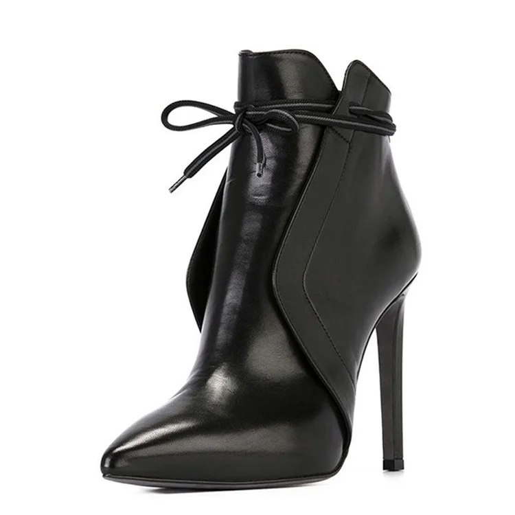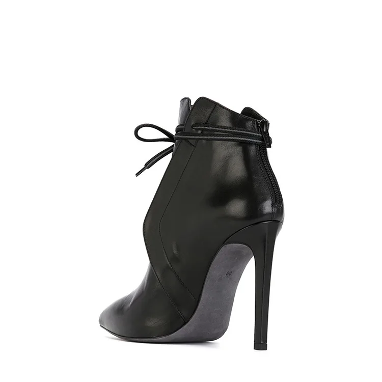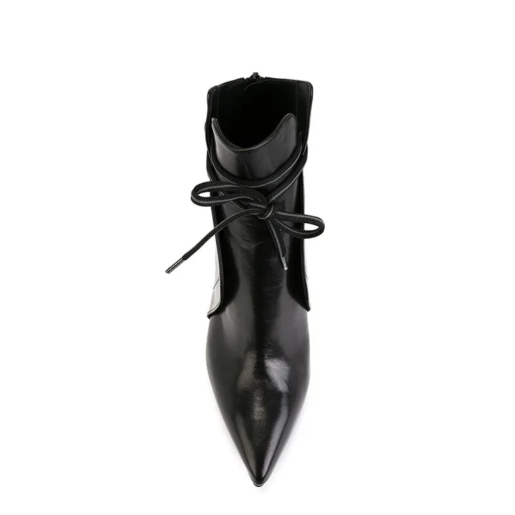Women's Boots Autumn and Winter Fashion Pointed Toe Bandage Lace up Leather Lady High Heel Ankle Boot Shoes