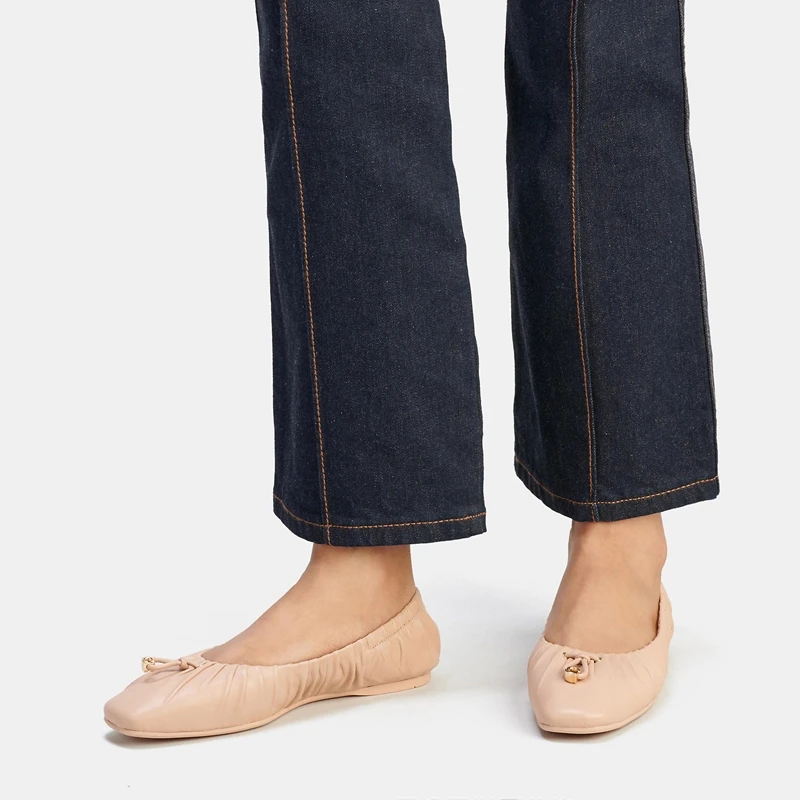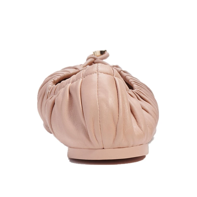 Women Nude Leather Ruched Ballet Flats Office Business Casual Daily Comfort Walking Essential Basic Shoes Wholesale OEM ODM
