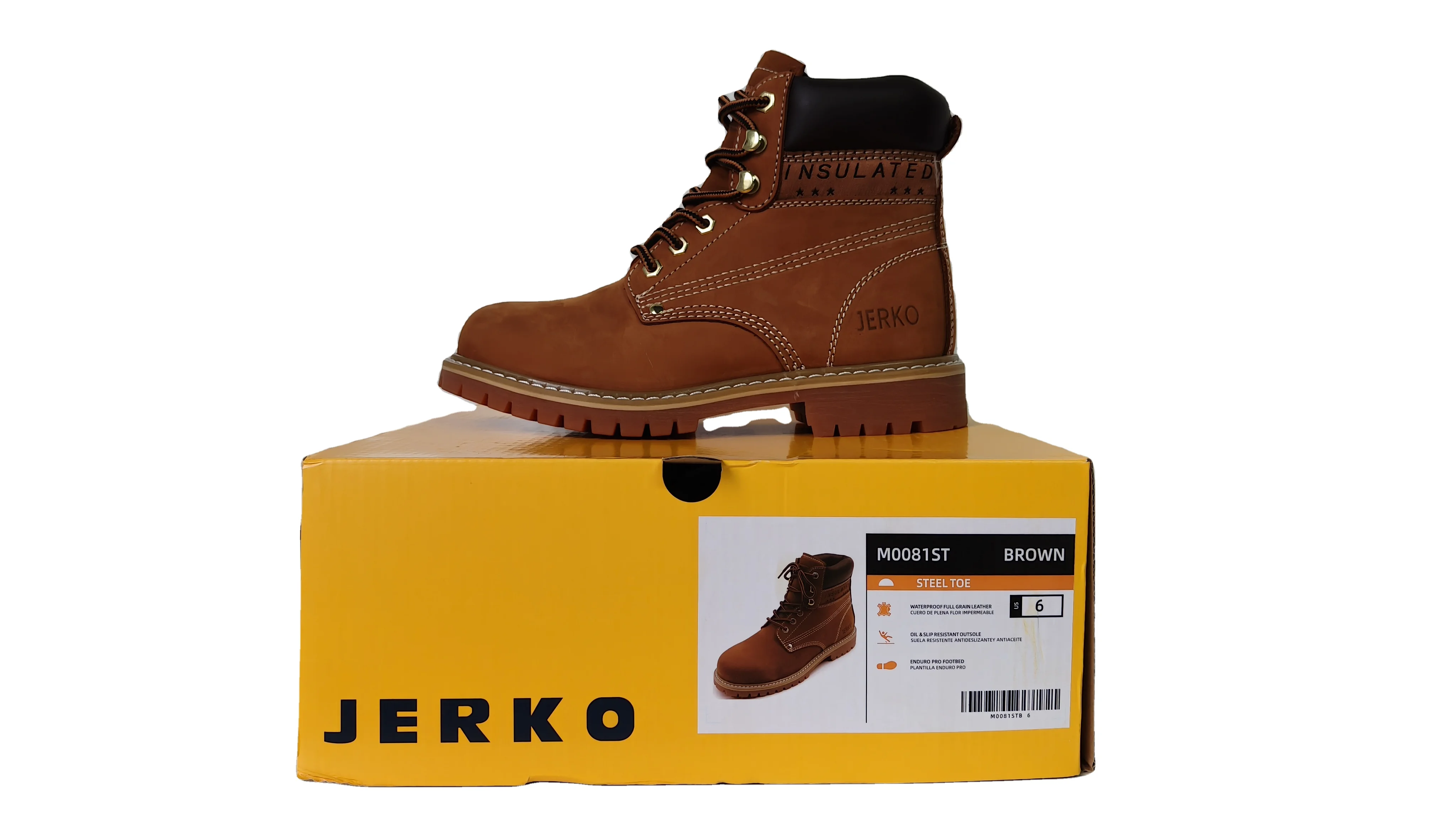 JEROKO Men Brown Nubuck Insulated Work Boots Lug Sole Lace up Design Winter Outdoor Safety Comfort Construction Shoes Wholesale