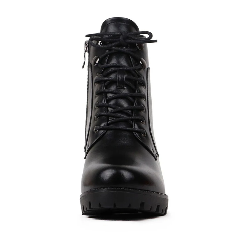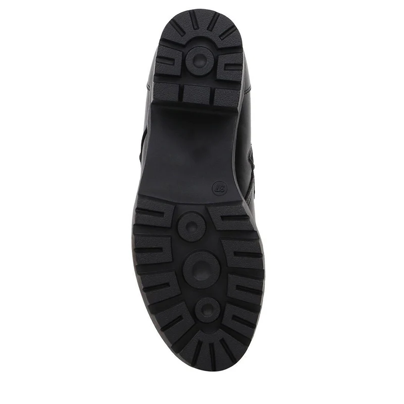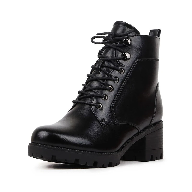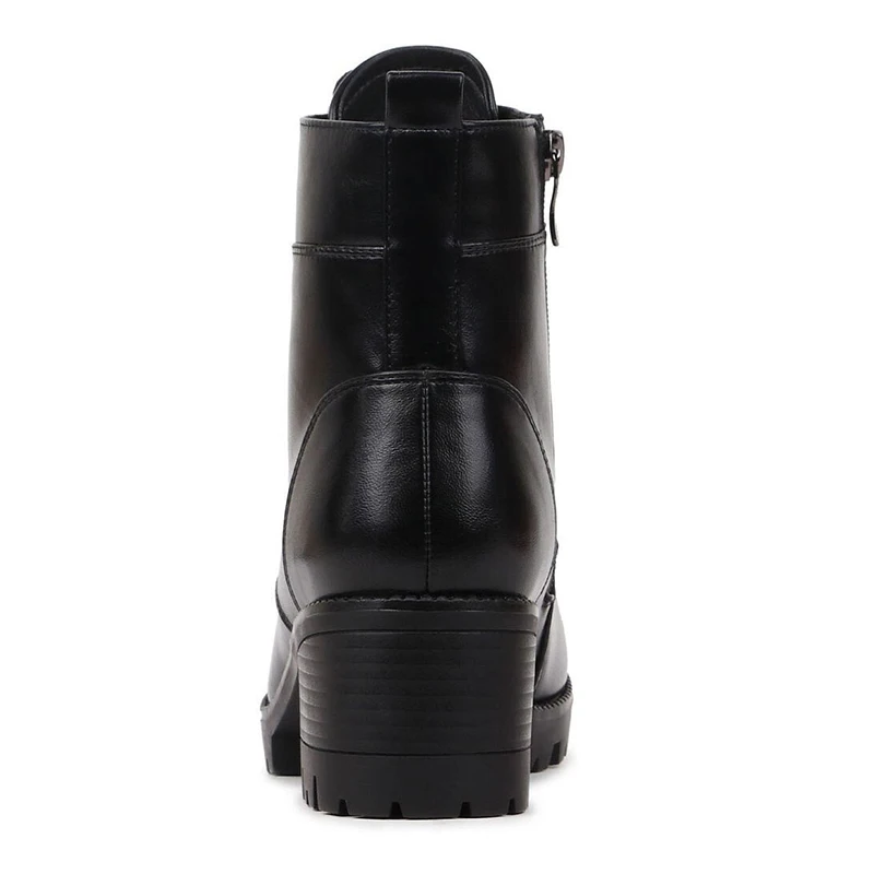 Women Black Leather Ankle Boots Block Heel Cool Edgy Street Style Autumn Winter Office Casual Trendy Shoes Wholesale OEM ODM