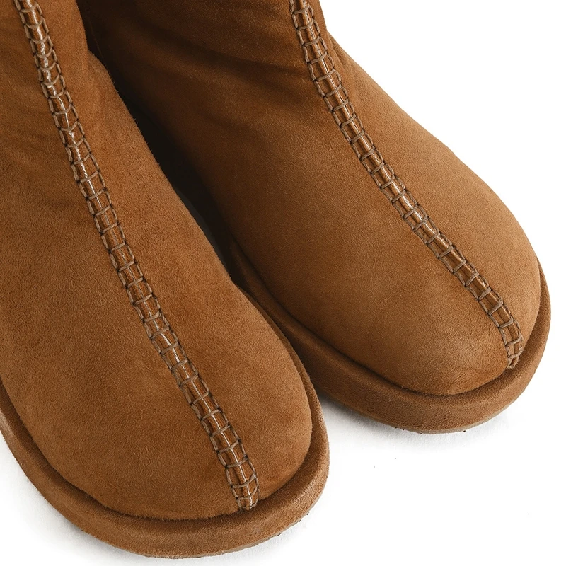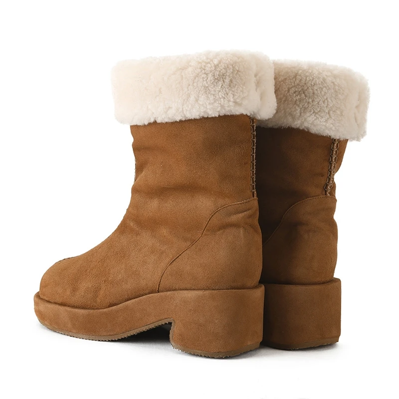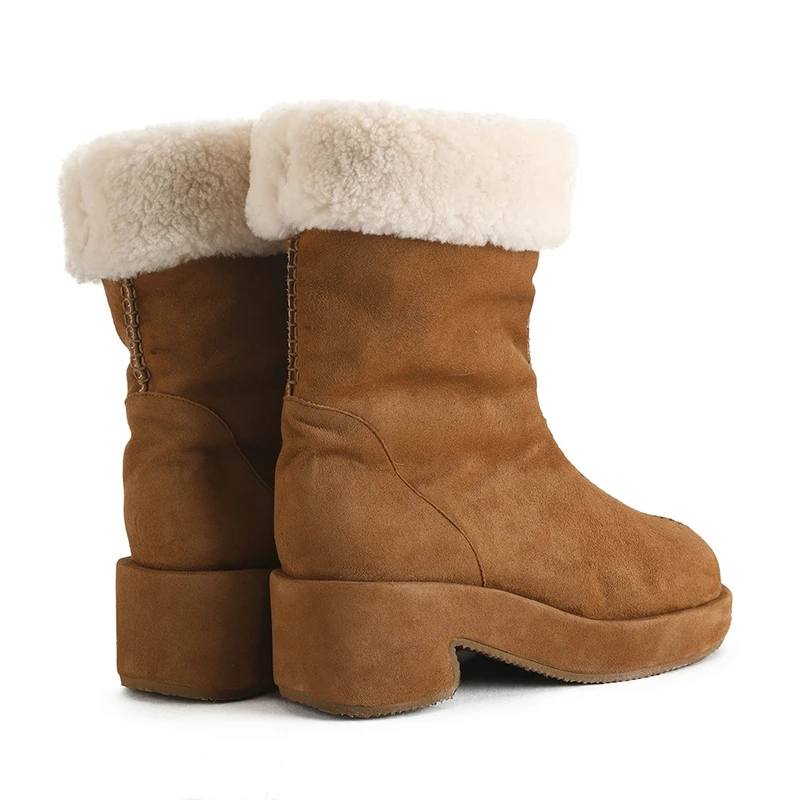 Women Tan Suede Shearling Lined Platform Ankle Boots Warm Cozy Autumn Winter Casual Outdoor Essential Shoes Wholesale OEM ODM