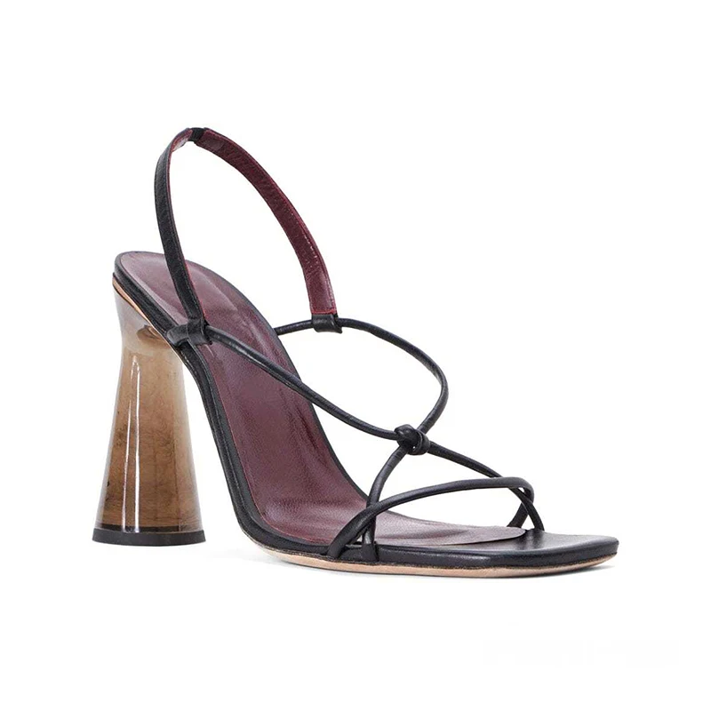 Women Black Leather Strappy Sandals Sculpted Acrylic Heel Avant Garde Fashion Event Luxury Party Artistic Trendy Shoes Wholesale